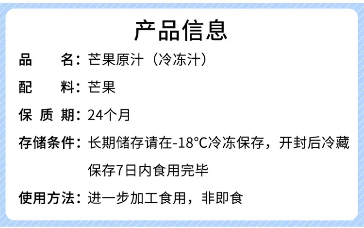 Frozen mango puree (1000g), Frozen passion fruit puree 950g [upgraded version], Frozen lemon juice (980g), Fro...