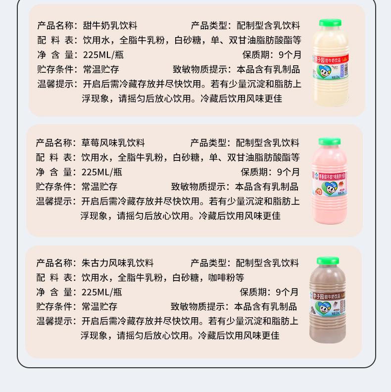 Mixed flavors 225ml*5 bottles, Chocolate flavor 225ml*5 bottles, Strawberry flavor 225ml*5 bottles, Sweet milk...