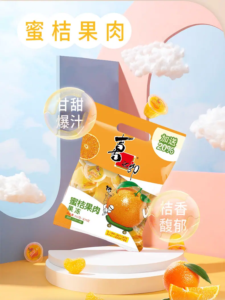 Bolsa de Gelatina de Pulpa de Fruta Xizhilang Naranja Mandarina Durazno Amarillo Piña 0% Grasa Snack Infantil Paquete de Regalo