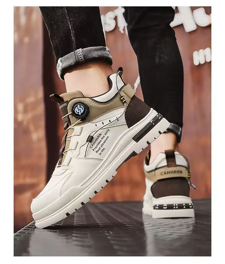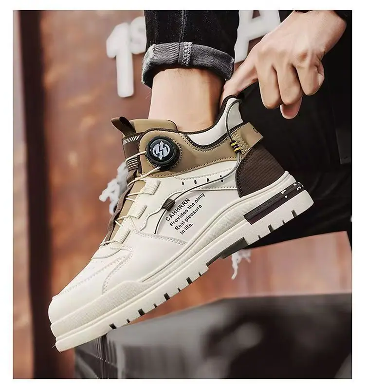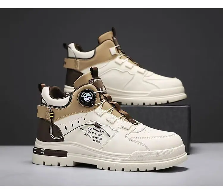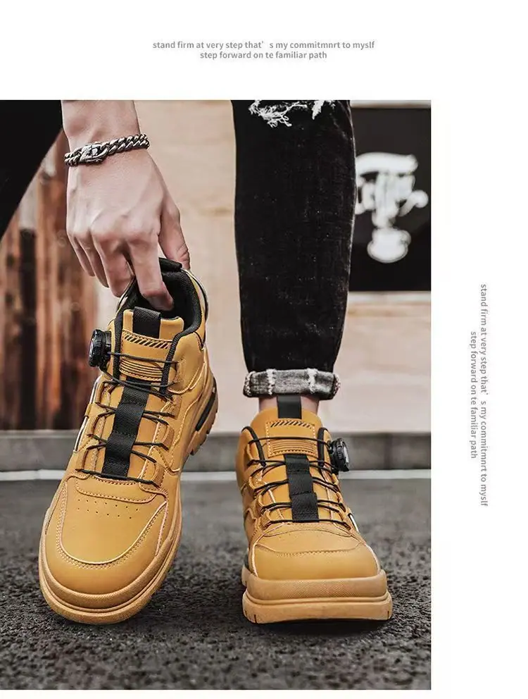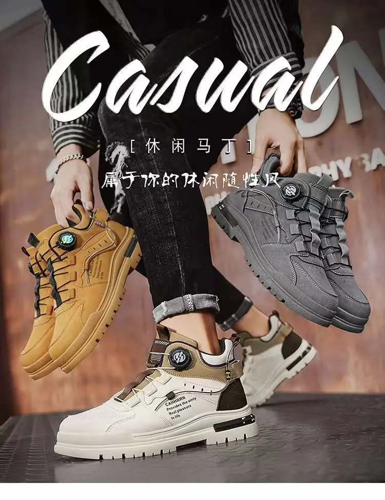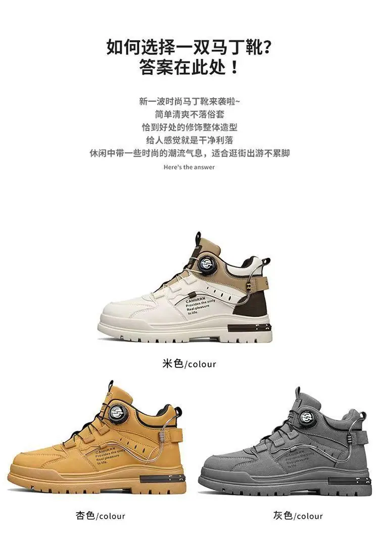 Botas Martin para hombre de caña alta otoño estilo británico retro zapatos casuales de cuero para hombre de caña media impermeables antideslizantes con aumento de altura botas de trabajo