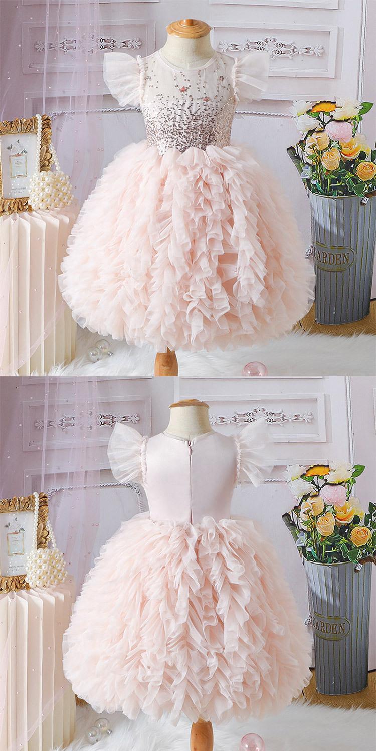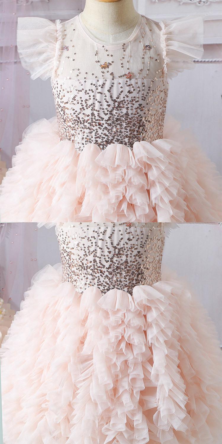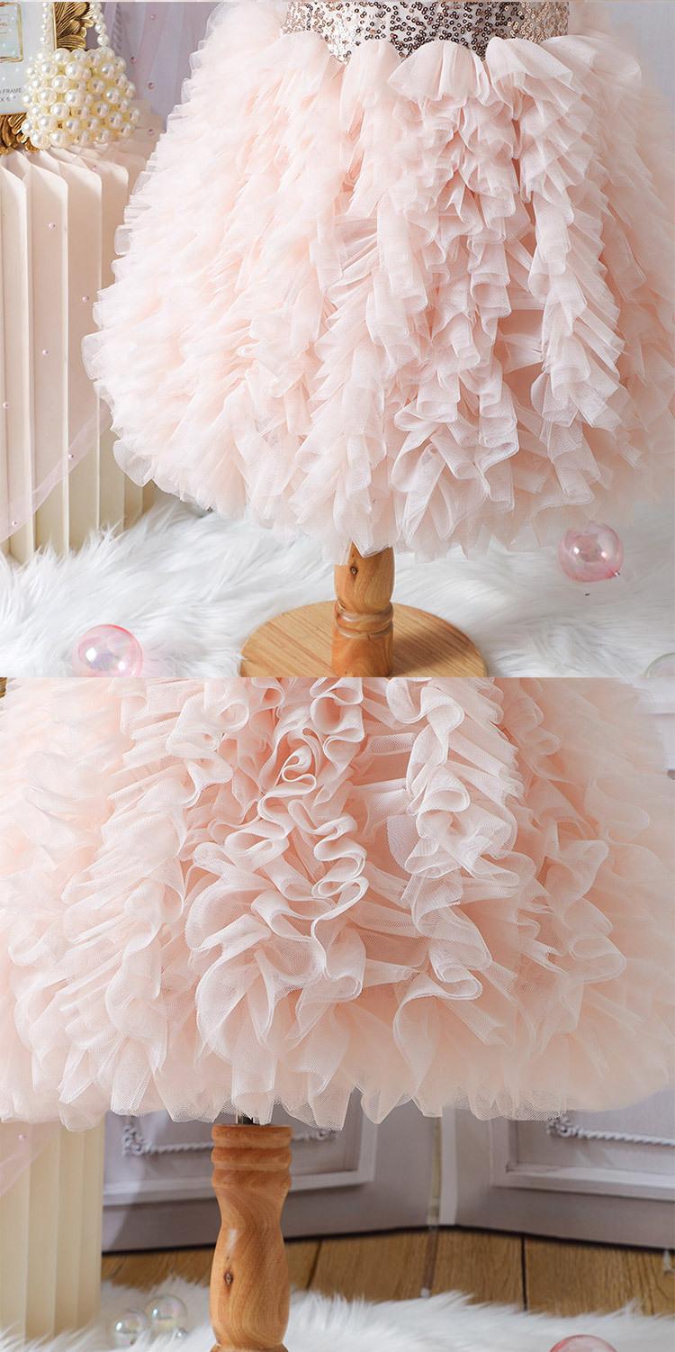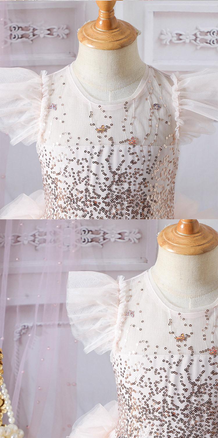 Nuevo Vestido de Fiesta para Niñas Pequeño y Mediano Vestido de Malla con Lentejuelas para Niños Vestido de Pastel de Tul para Niños Disfraz para Actuación de Piano 318g