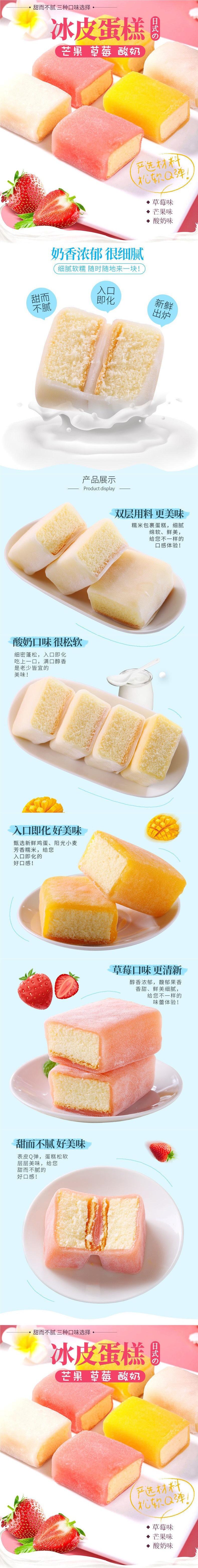 Pastel de nieve con varios sabores, pan suave para el desayuno, pastel casual, refrigerio de medianoche de celebridad de internet, caja entera de arroz glutinoso de fresa