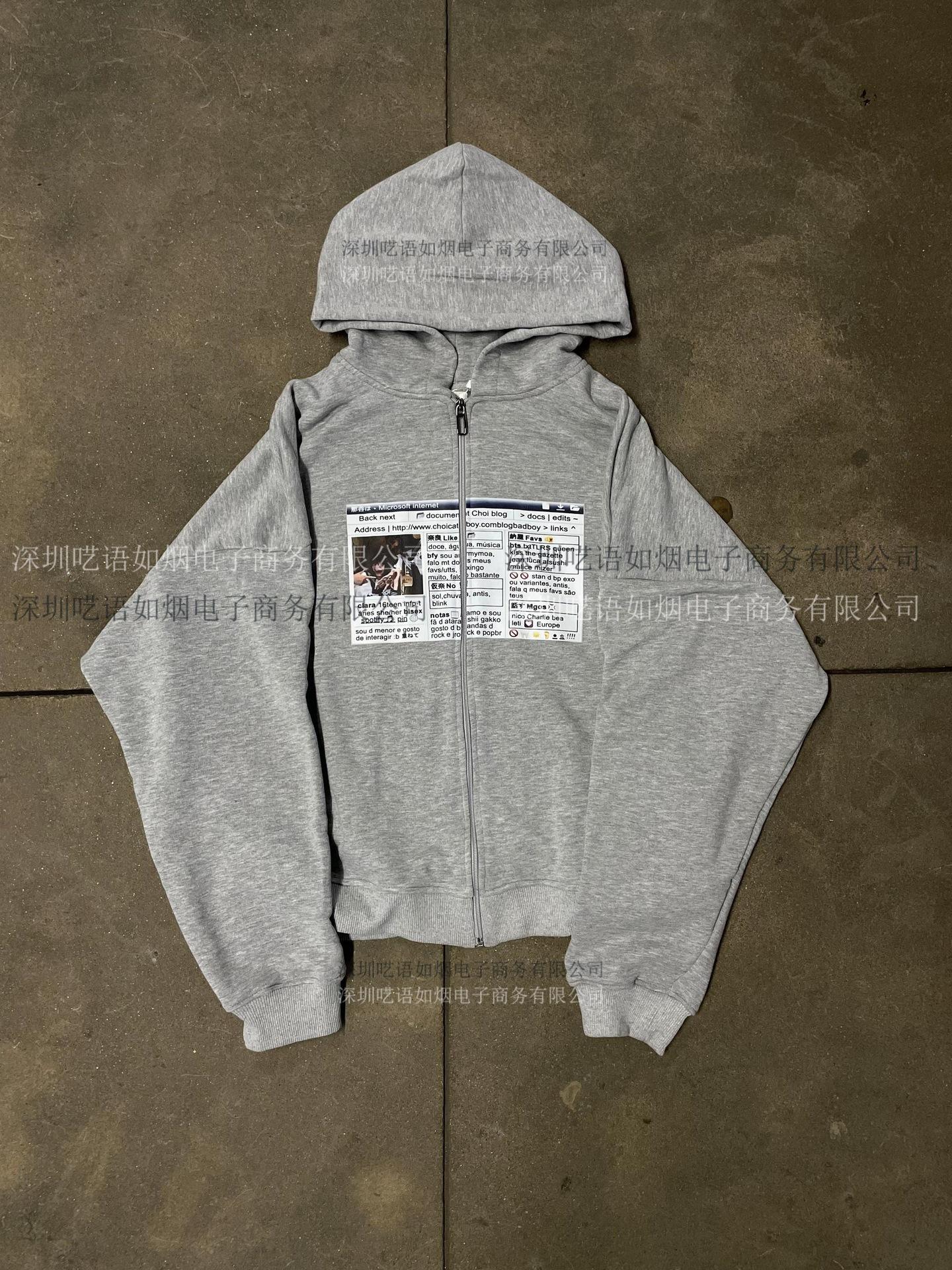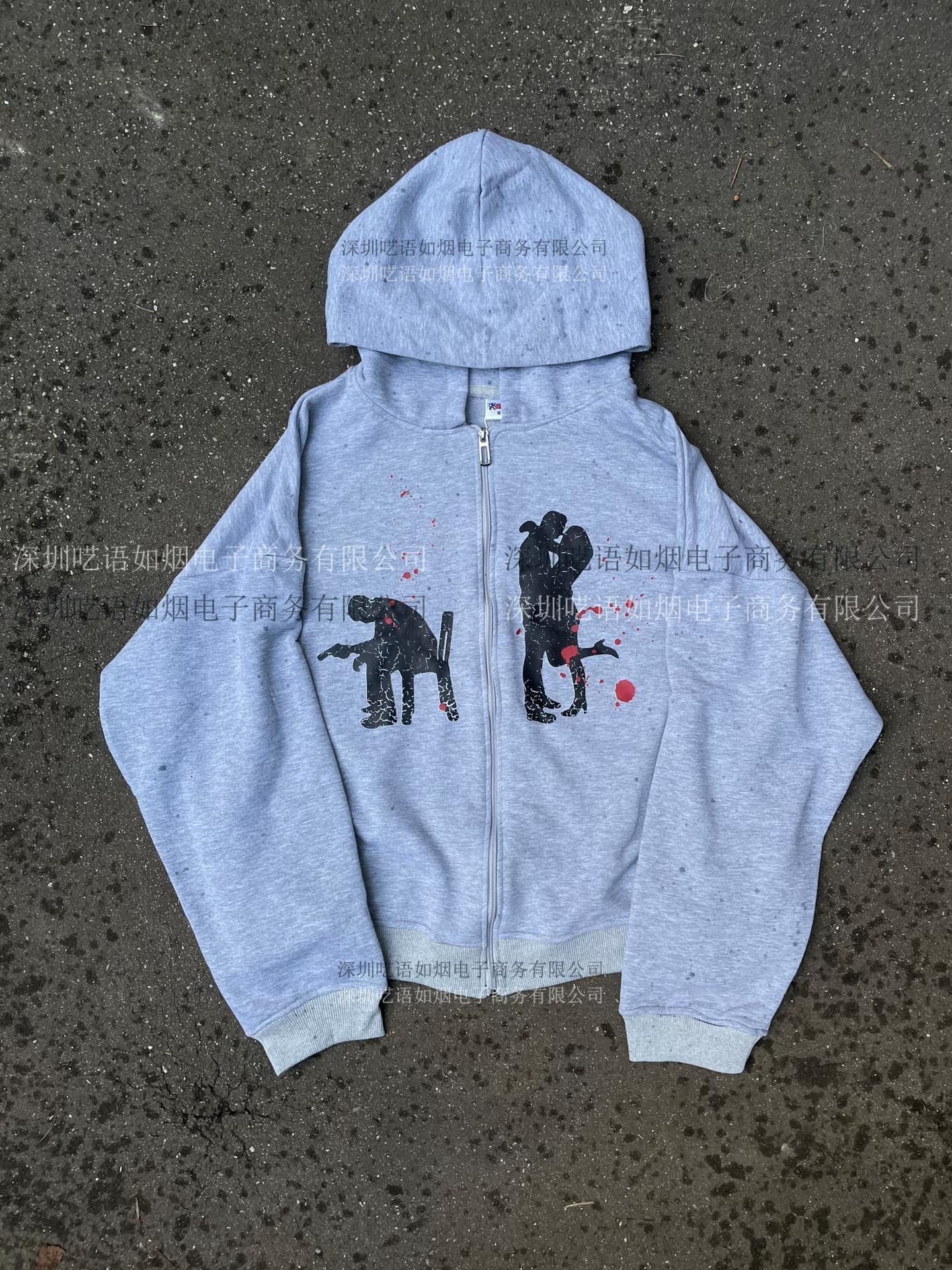 Sudadera con cremallera estampada personalizada para exportación transfronteriza europea y americana, jersey de manga larga con capucha, chaqueta retro, ropa de calle