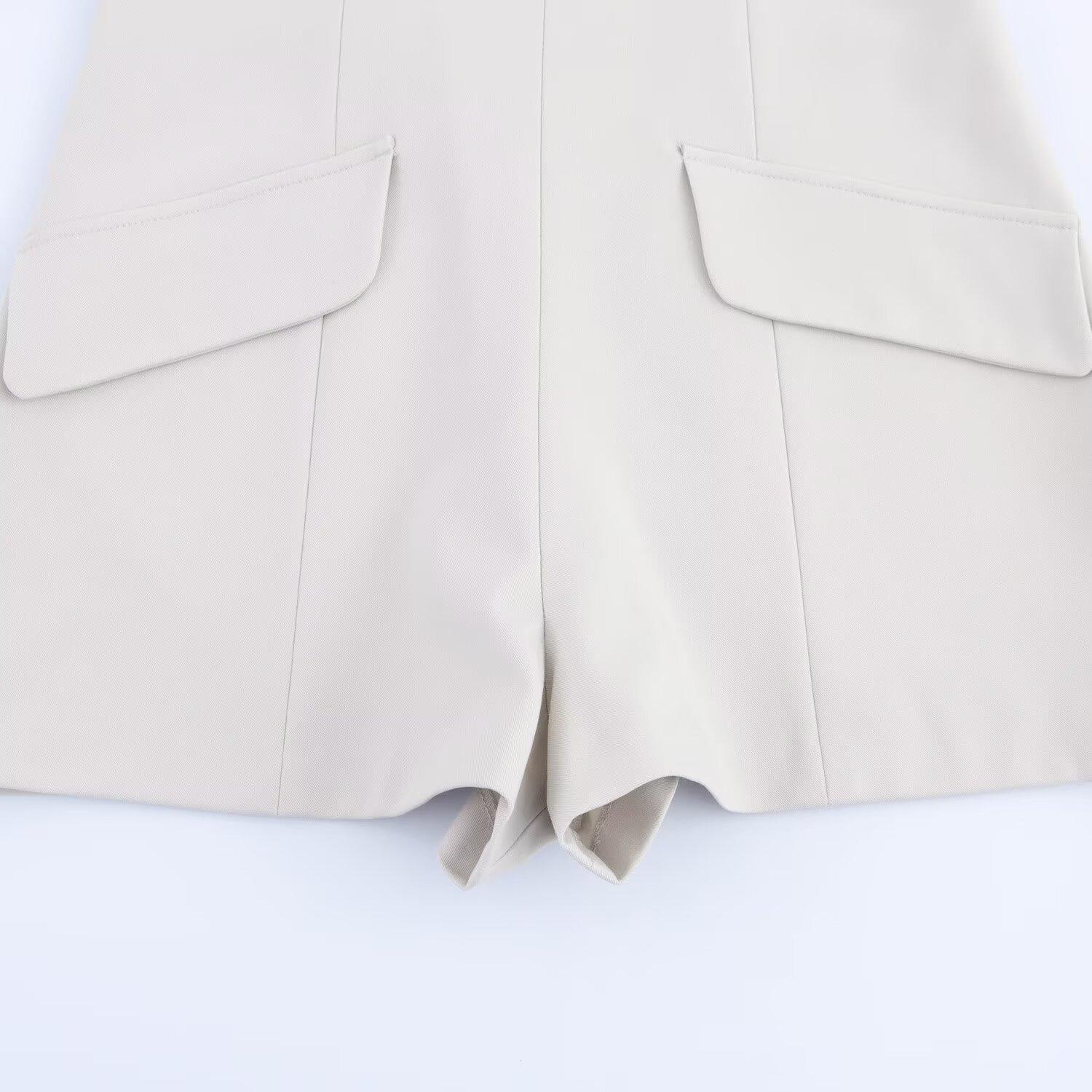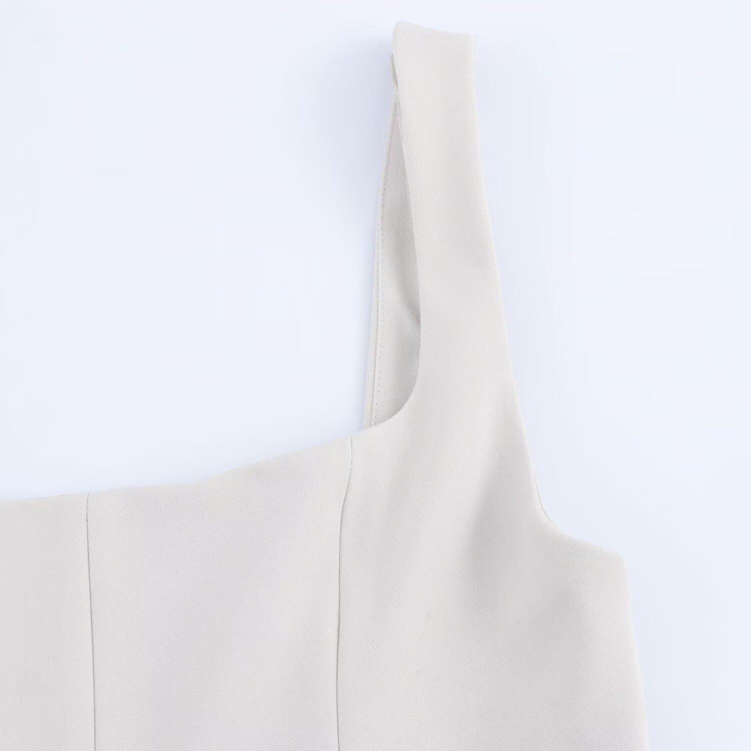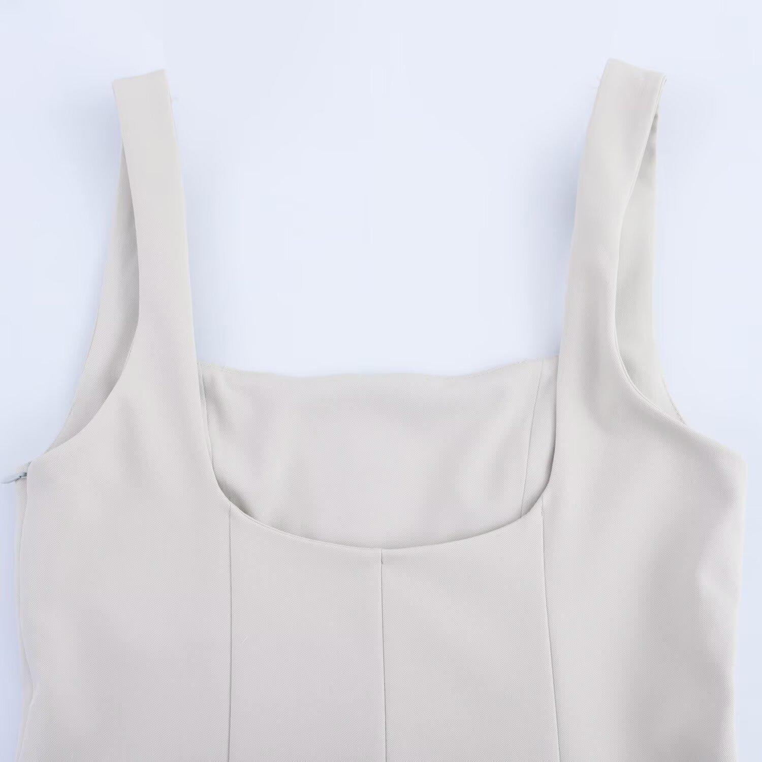 Mono Corto de Tirantes para Mujer Transfronterizo 2025 Nuevo Estilo Europeo y Americano Color Sólido Plisado Ajustado Espalda Descubierta Verano