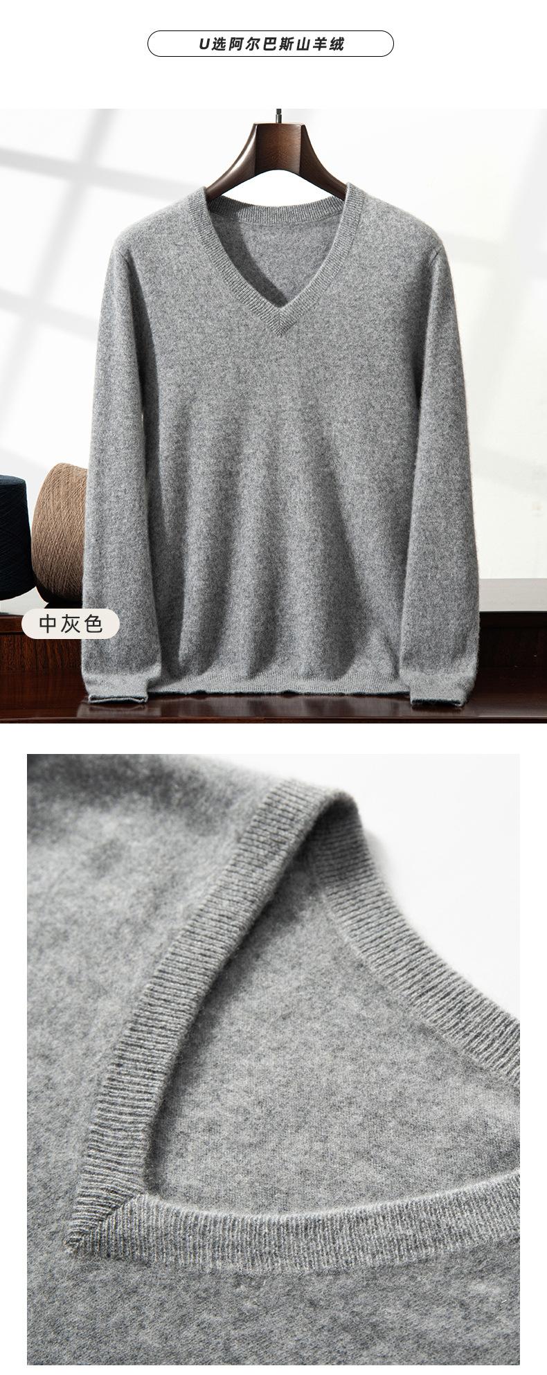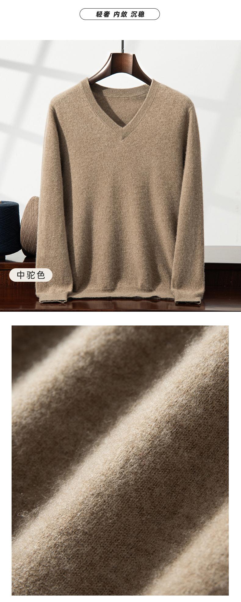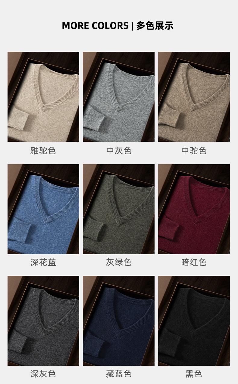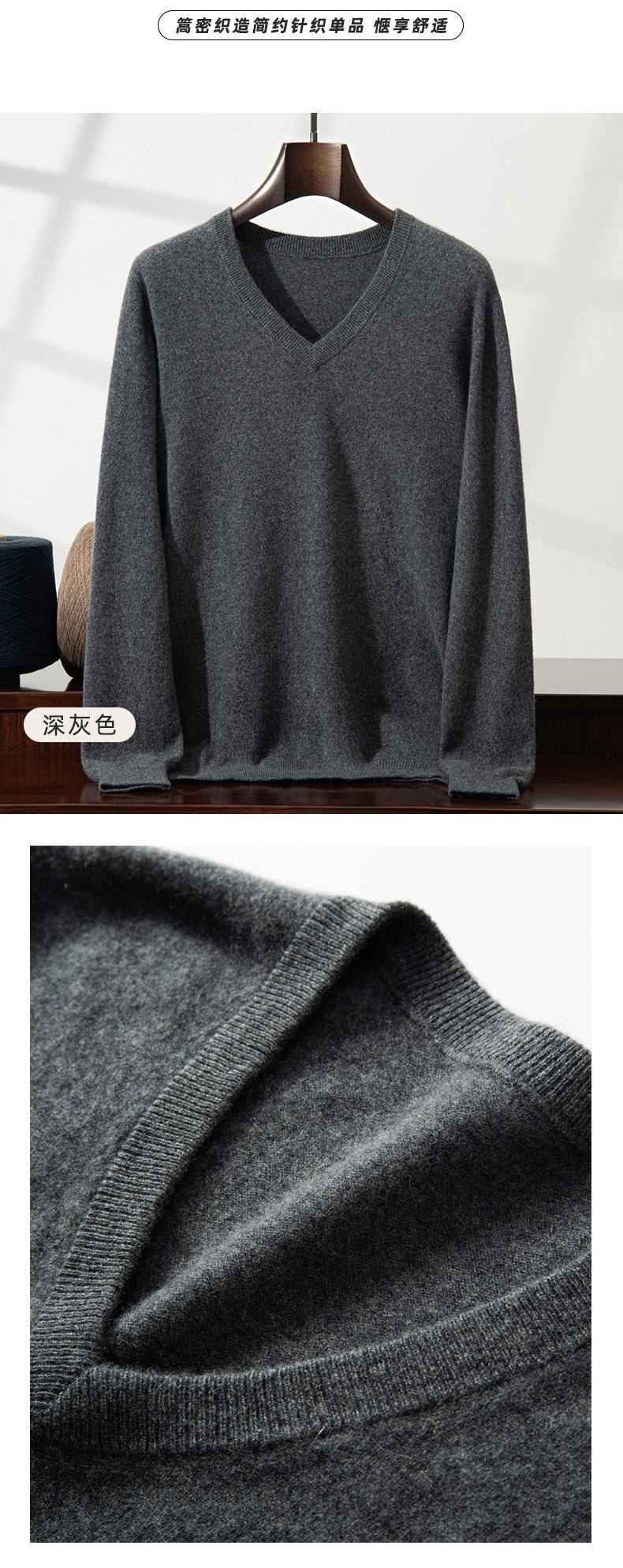 Suéter de Cachemira Nuevo de Primavera y Otoño para Hombre Casual Versátil Cuello en V Capa Base Holgado Adelgazante Top Jersey Cálido