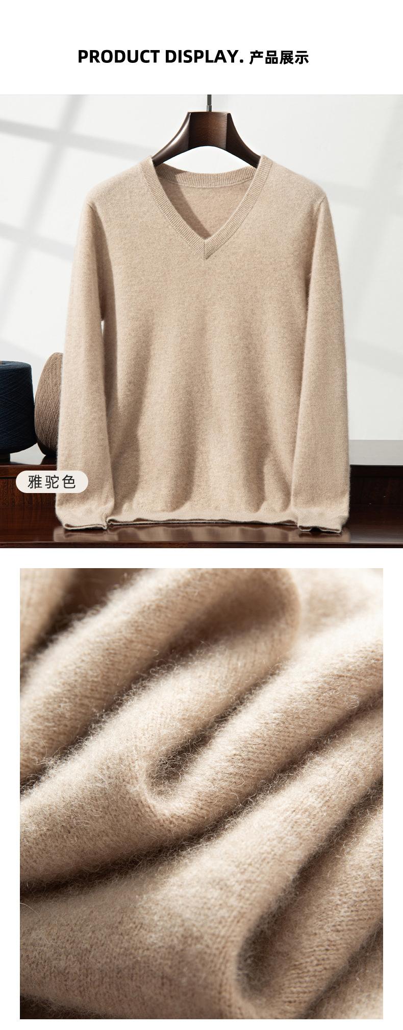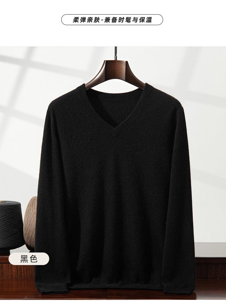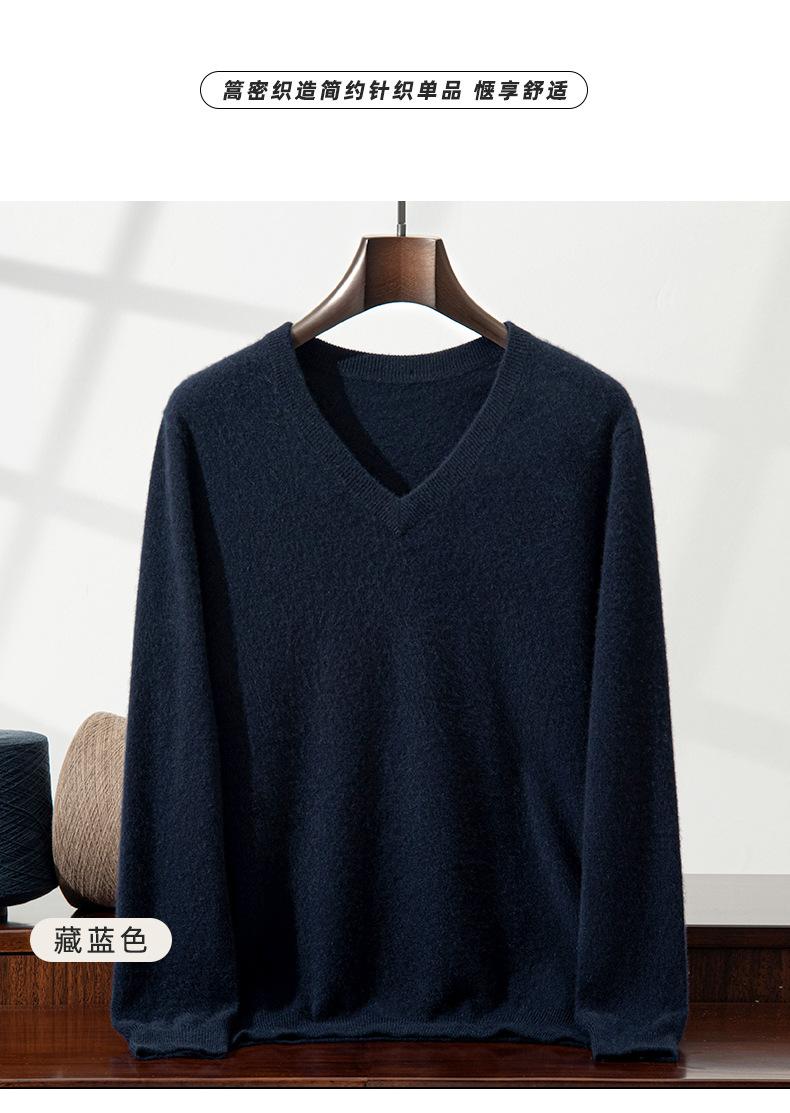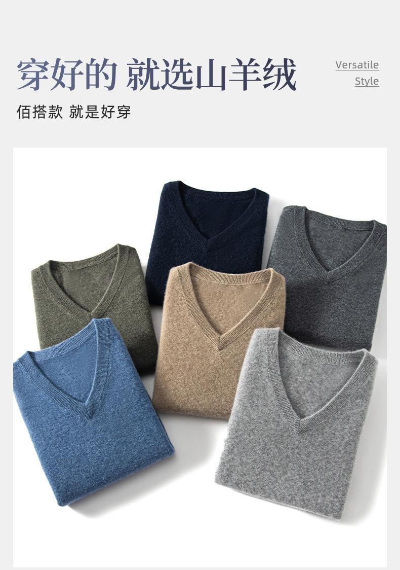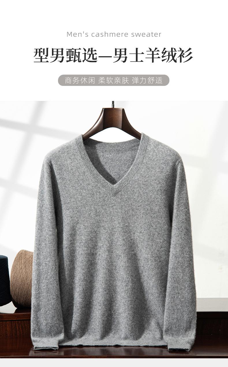 Suéter de Cachemira Nuevo de Primavera y Otoño para Hombre Casual Versátil Cuello en V Capa Base Holgado Adelgazante Top Jersey Cálido