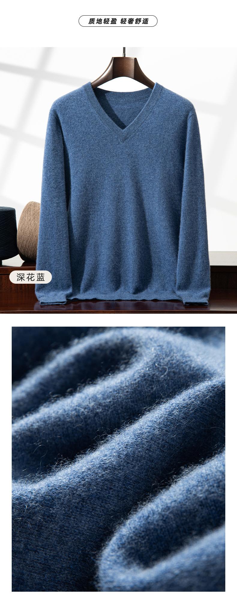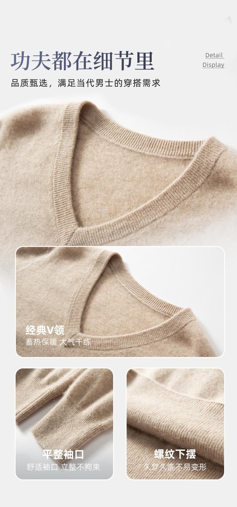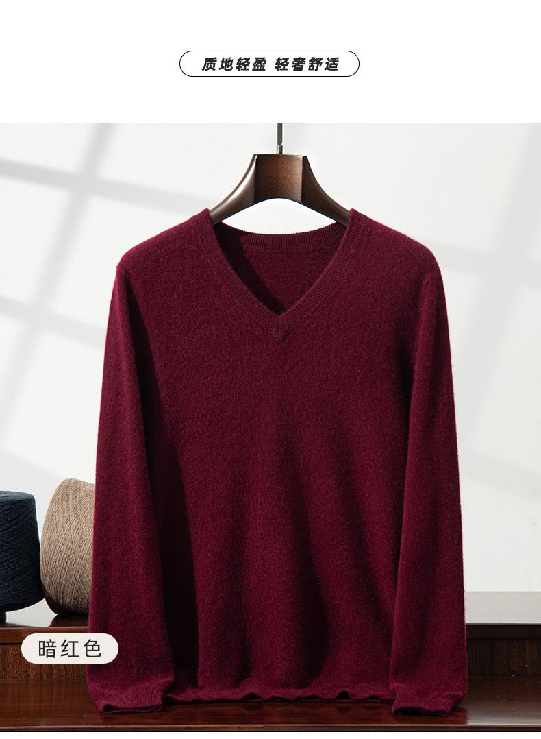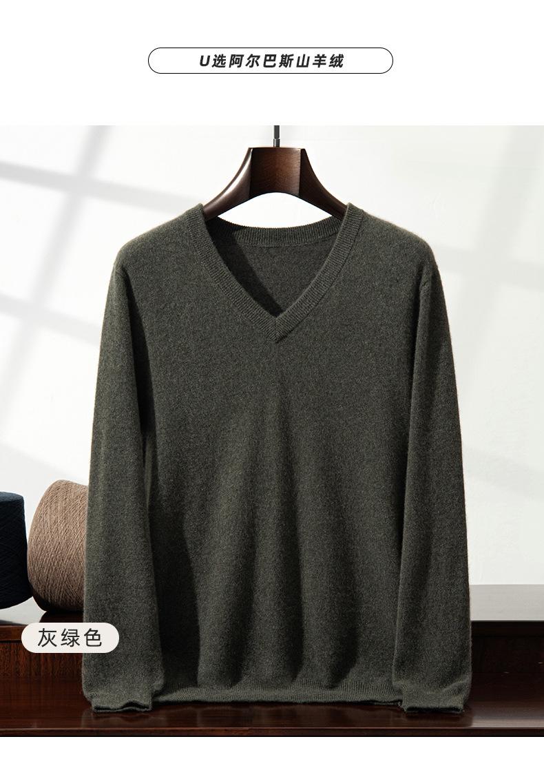 Suéter de Cachemira Nuevo de Primavera y Otoño para Hombre Casual Versátil Cuello en V Capa Base Holgado Adelgazante Top Jersey Cálido