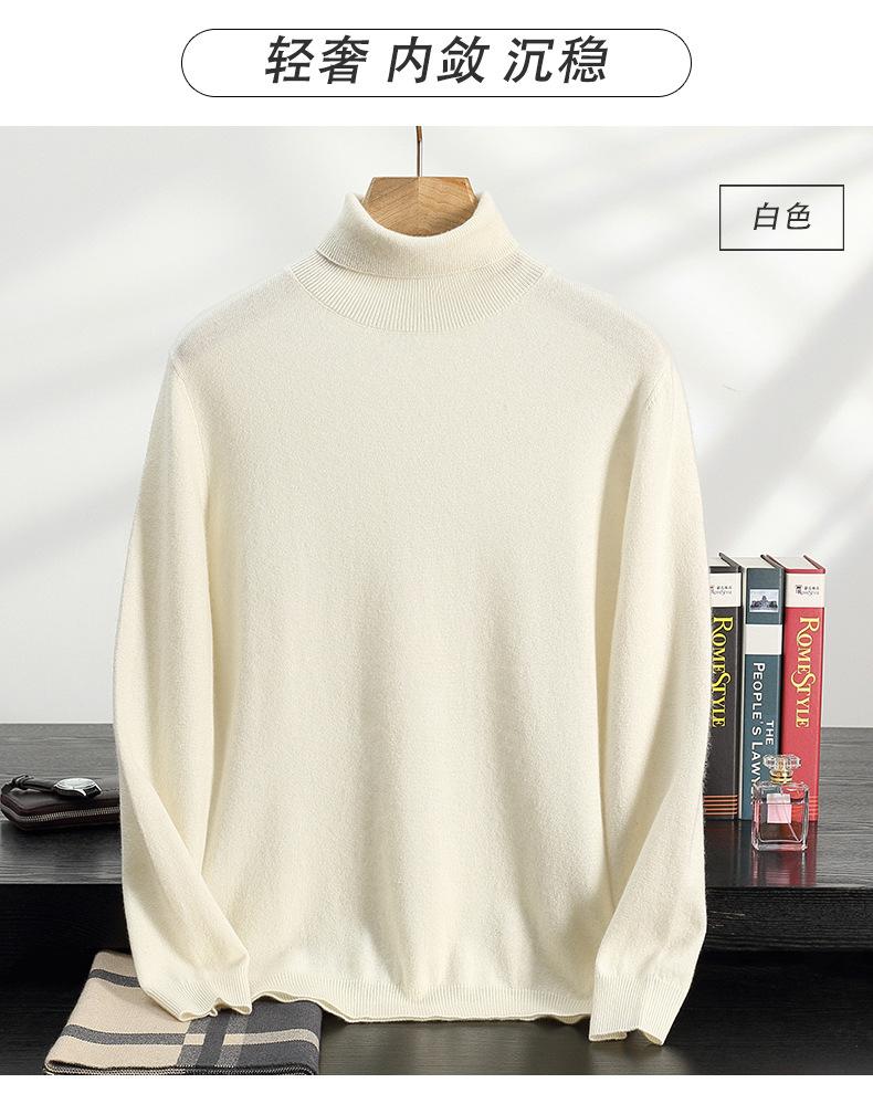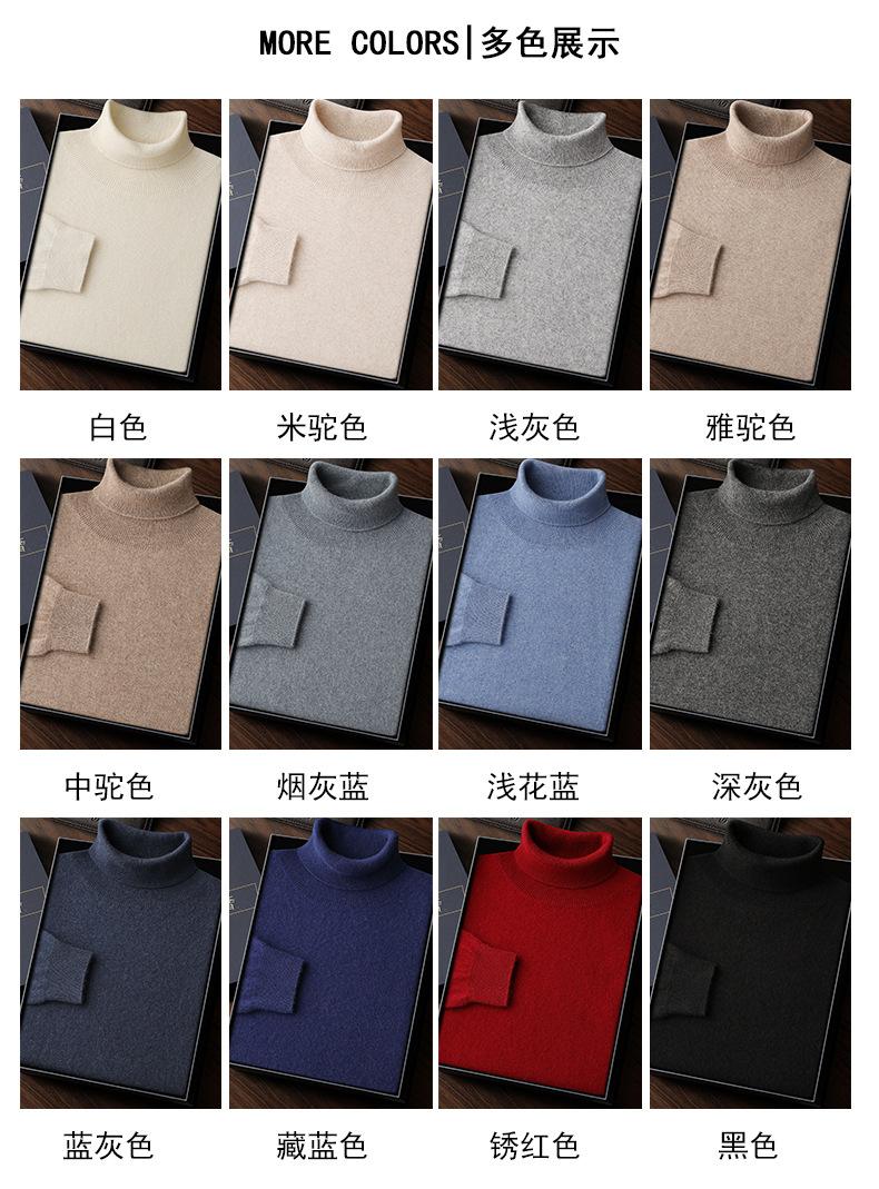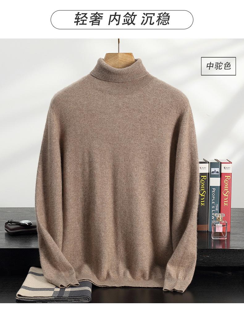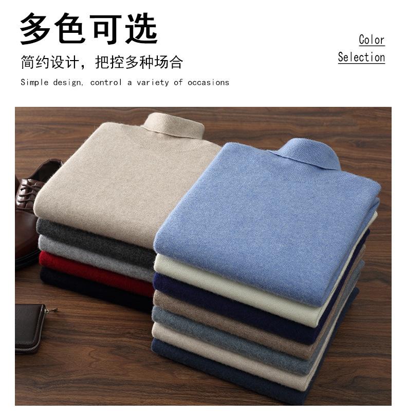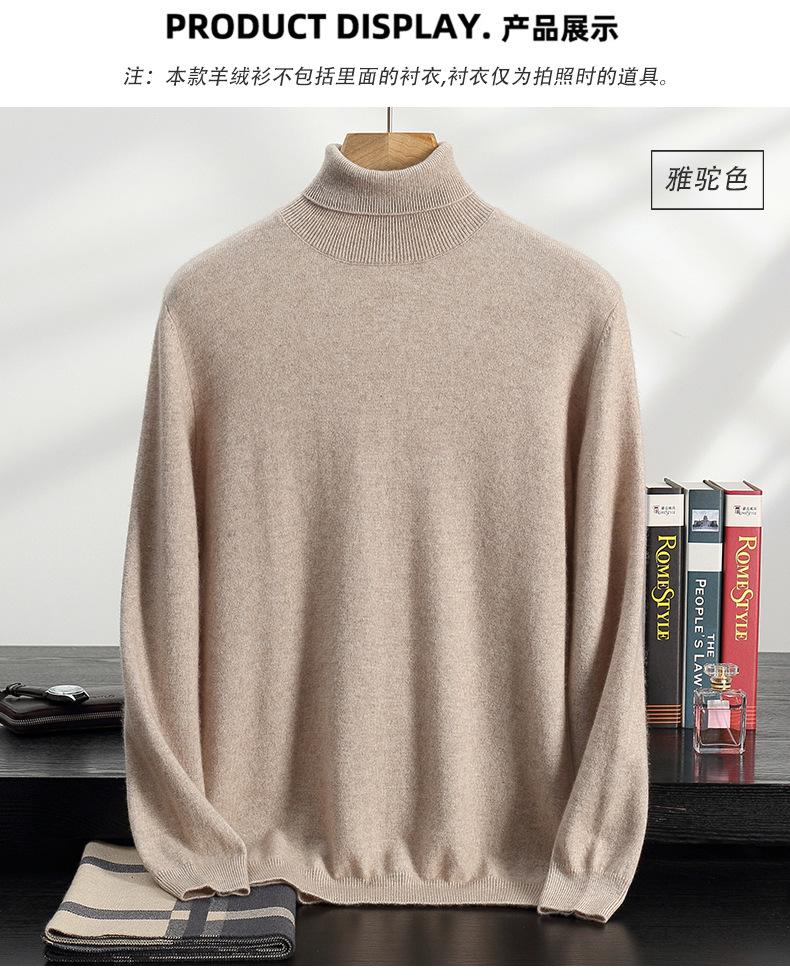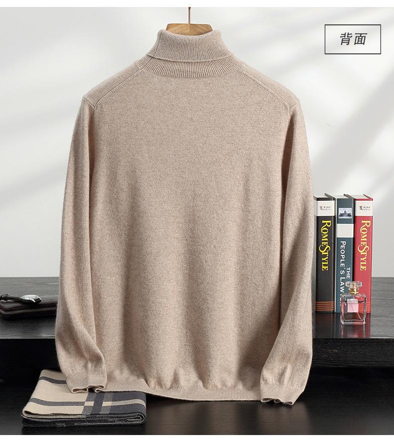 Nuevo suéter de punto de cachemira de color sólido para hombre, cuello alto holgado de talla grande, manga larga, suéter básico de otoño e invierno