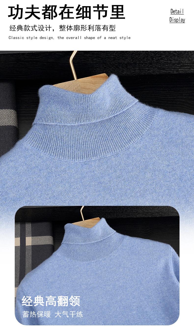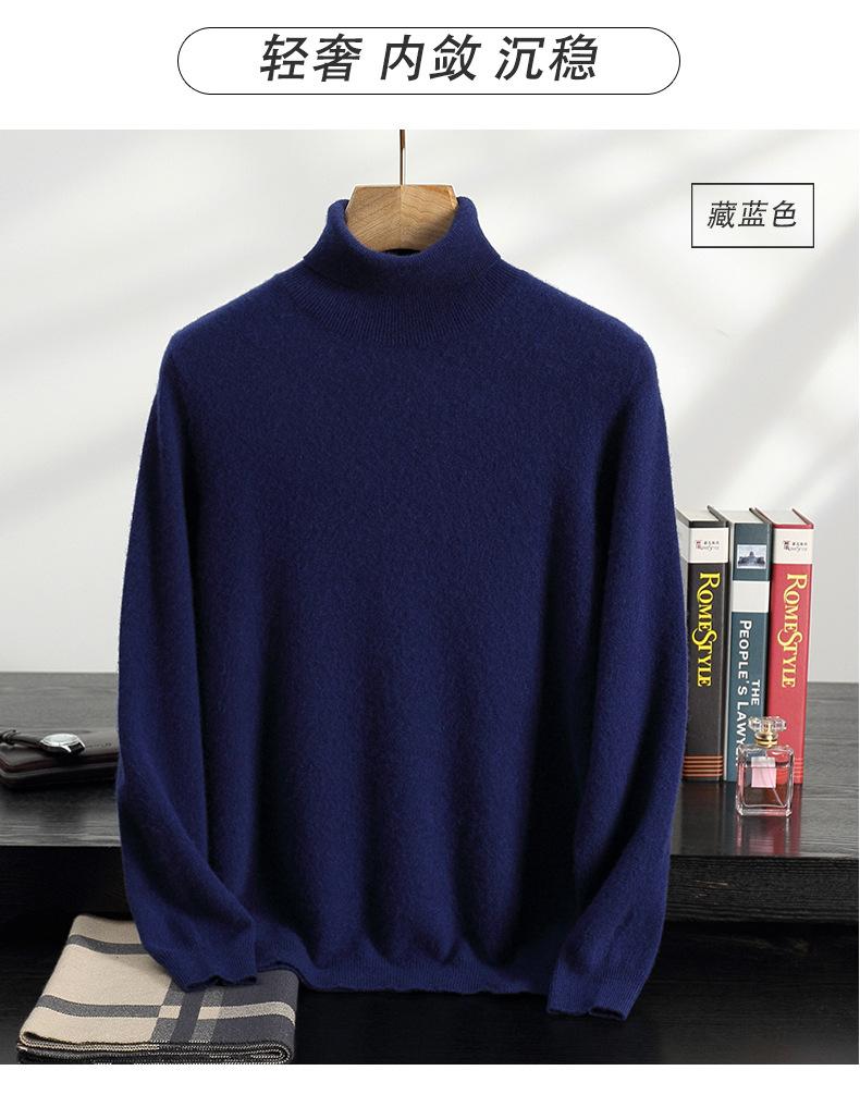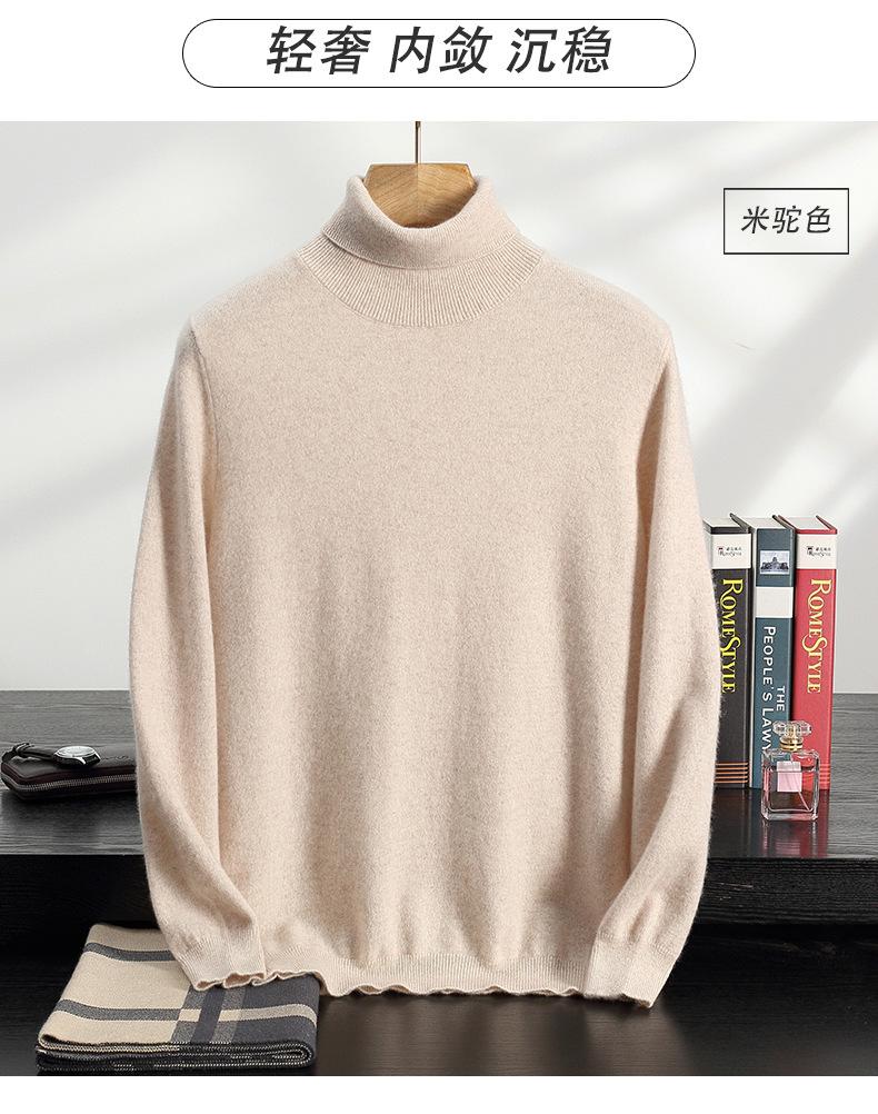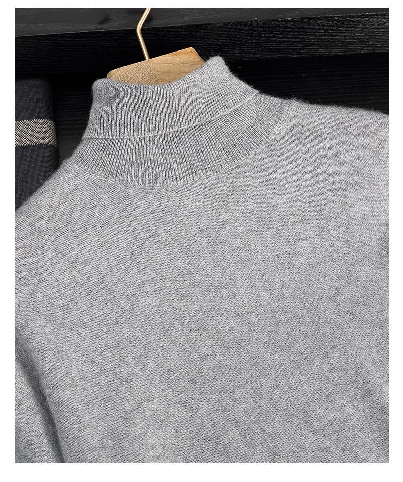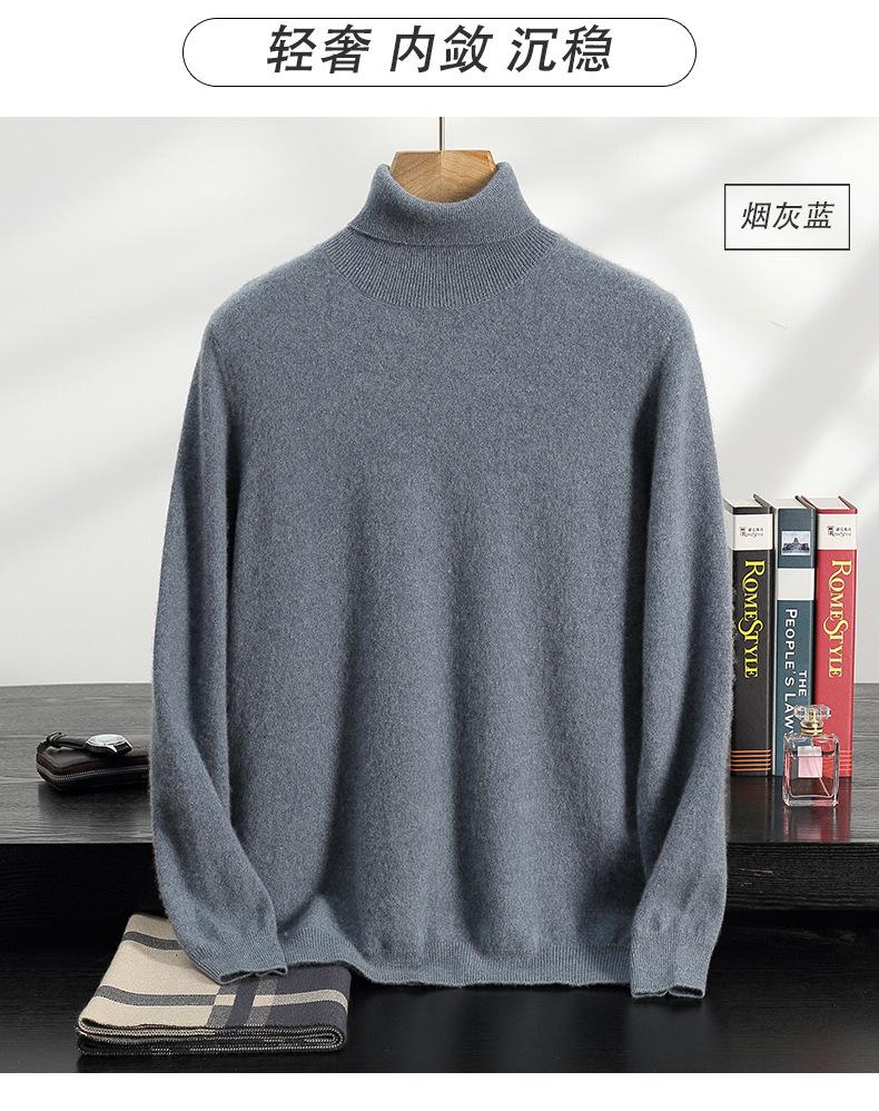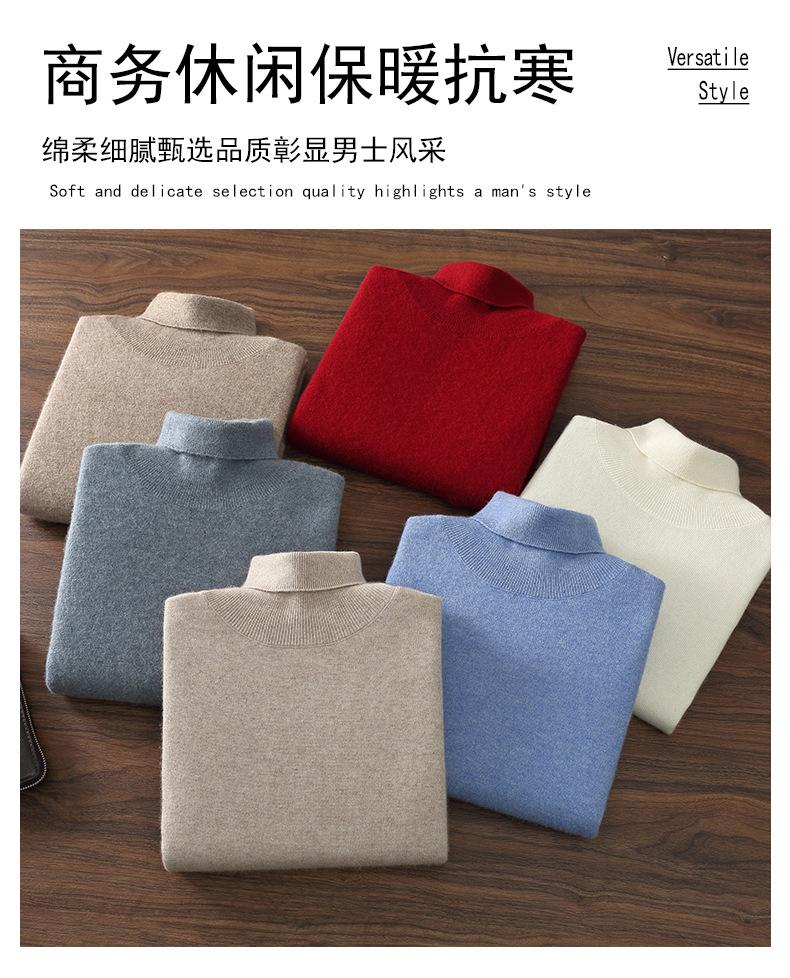 Nuevo suéter de punto de cachemira de color sólido para hombre, cuello alto holgado de talla grande, manga larga, suéter básico de otoño e invierno