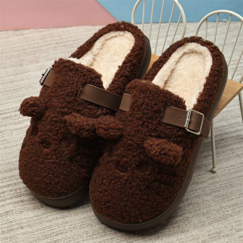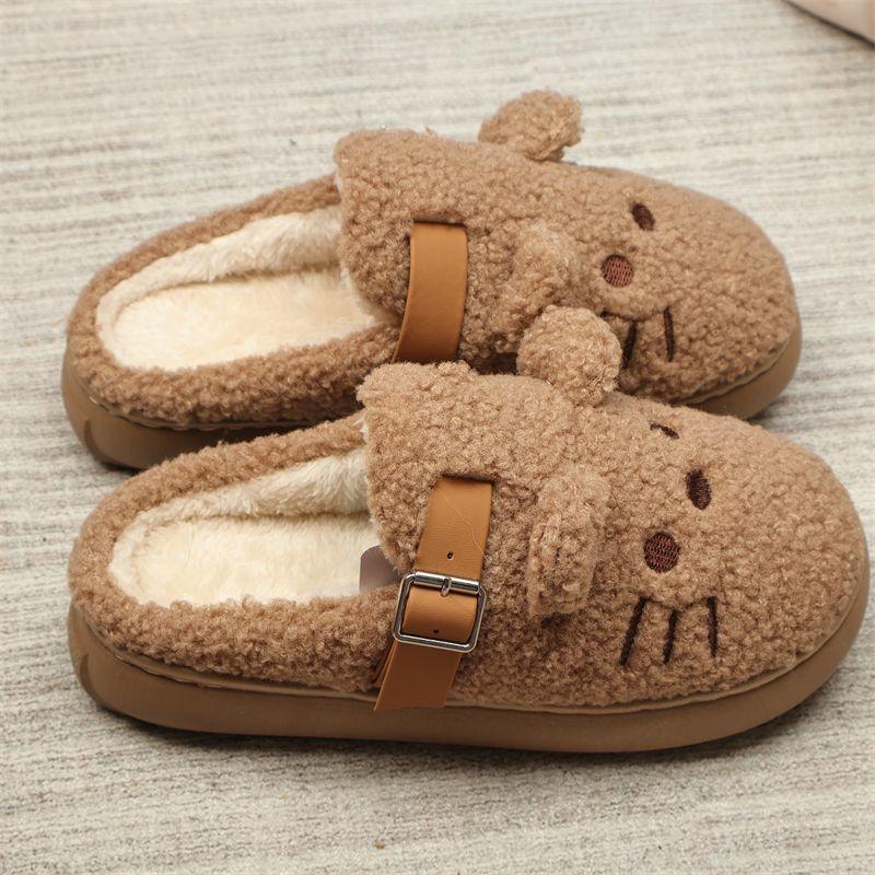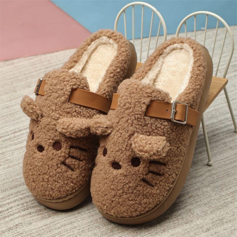 Zapatillas Cálidas Envolventes de Moda y Versátiles para Mujer 2025 Otoño/Invierno Nuevas Zapatillas de Algodón para Dama con Dibujos Animados Lindos de Meter