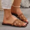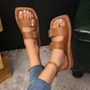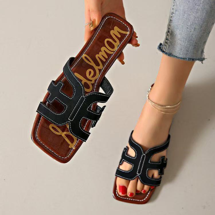 Sandalias de Talla Grande Transfronterizas para Mujer 2025 Verano Nuevo Punta Cuadrada Tacón Bajo Cómodas y Versátiles Pantuflas de Playa Planas para Mujer