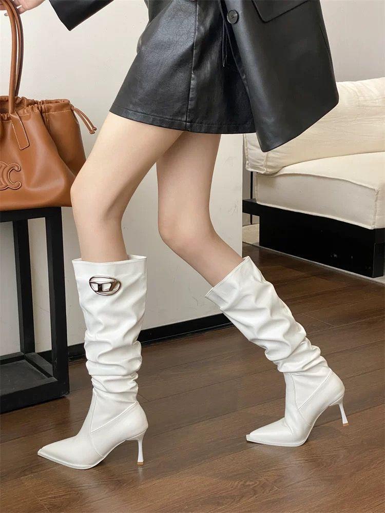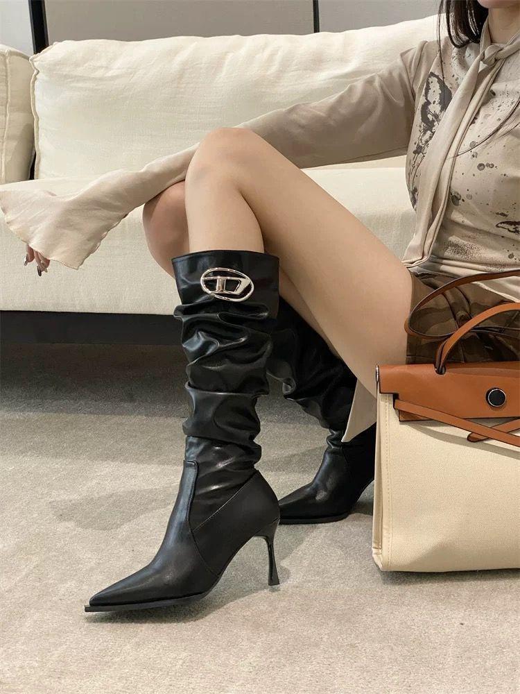Botas adelgazantes, botas altas de tacón fino, botas versátiles de moda para otoño e invierno, botas altas de punta fina, botas altas de caña alta con tacón de aguja para mujer, cremallera trasera