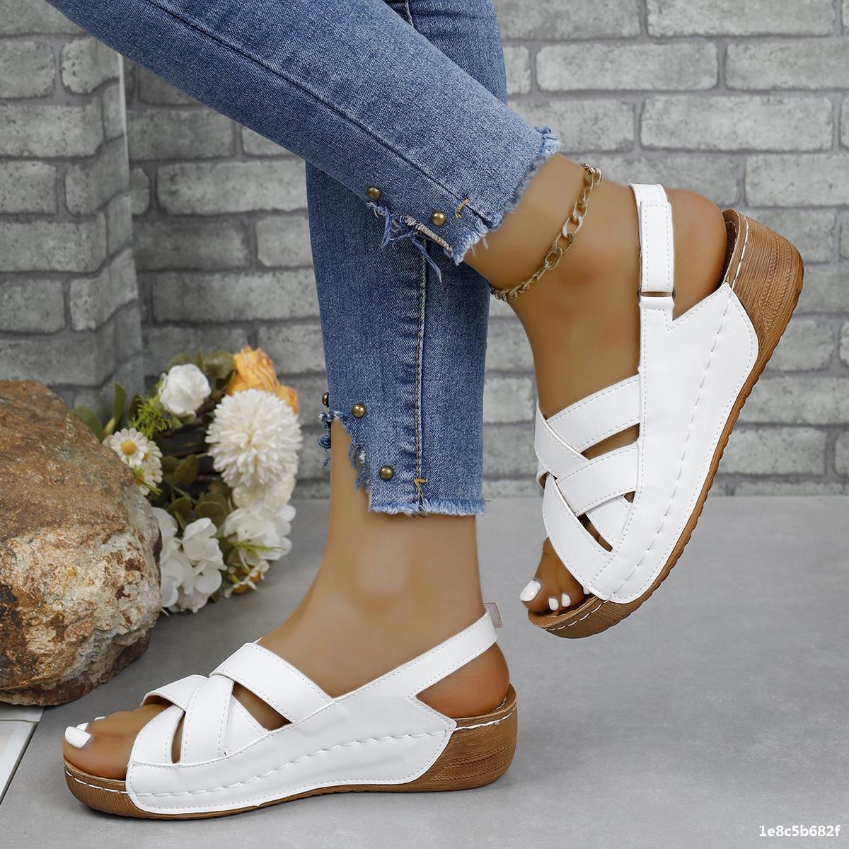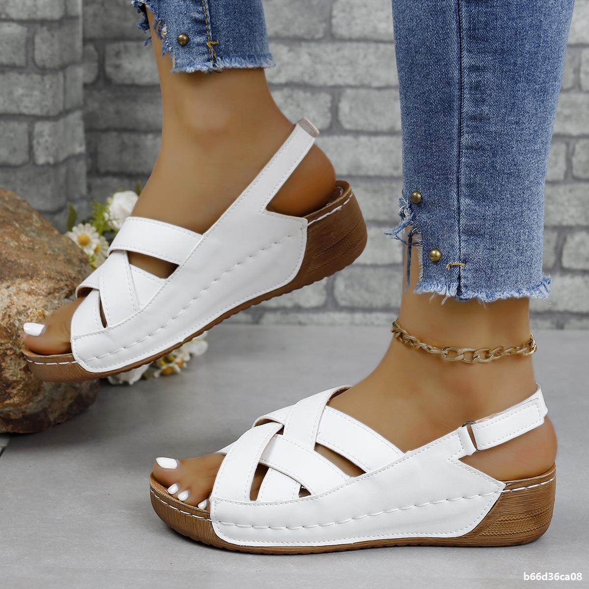Exportación Sudeste Asiático Talla Grande Sandalias de Plataforma con Tiras Cruzadas y Puntera Descubierta para Mujer Sandalias de Plataforma con Recortes de Velcro Transfronterizas