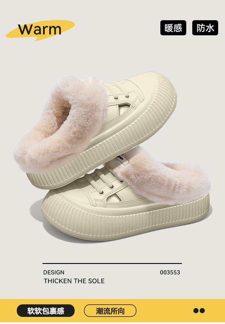 Botas cortas de algodón para mujer con forro polar, botas de lluvia de plataforma baja para aumentar la altura, zapatos nuevos de trabajo para mujer de boca baja impermeables, pantuflas de algodón antideslizantes