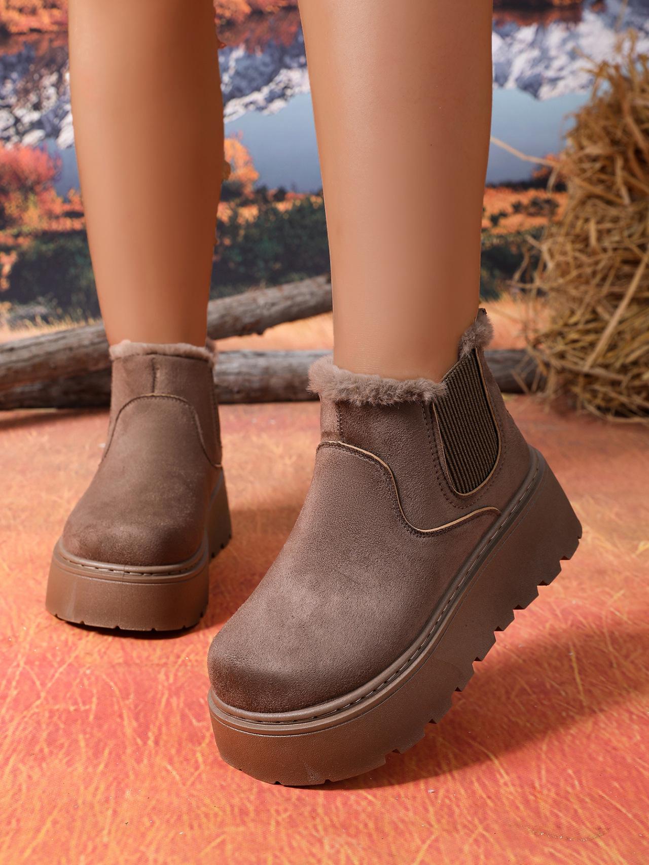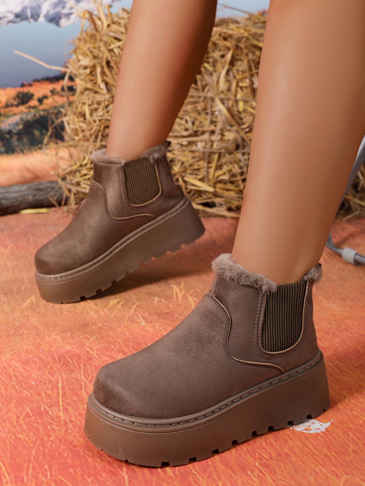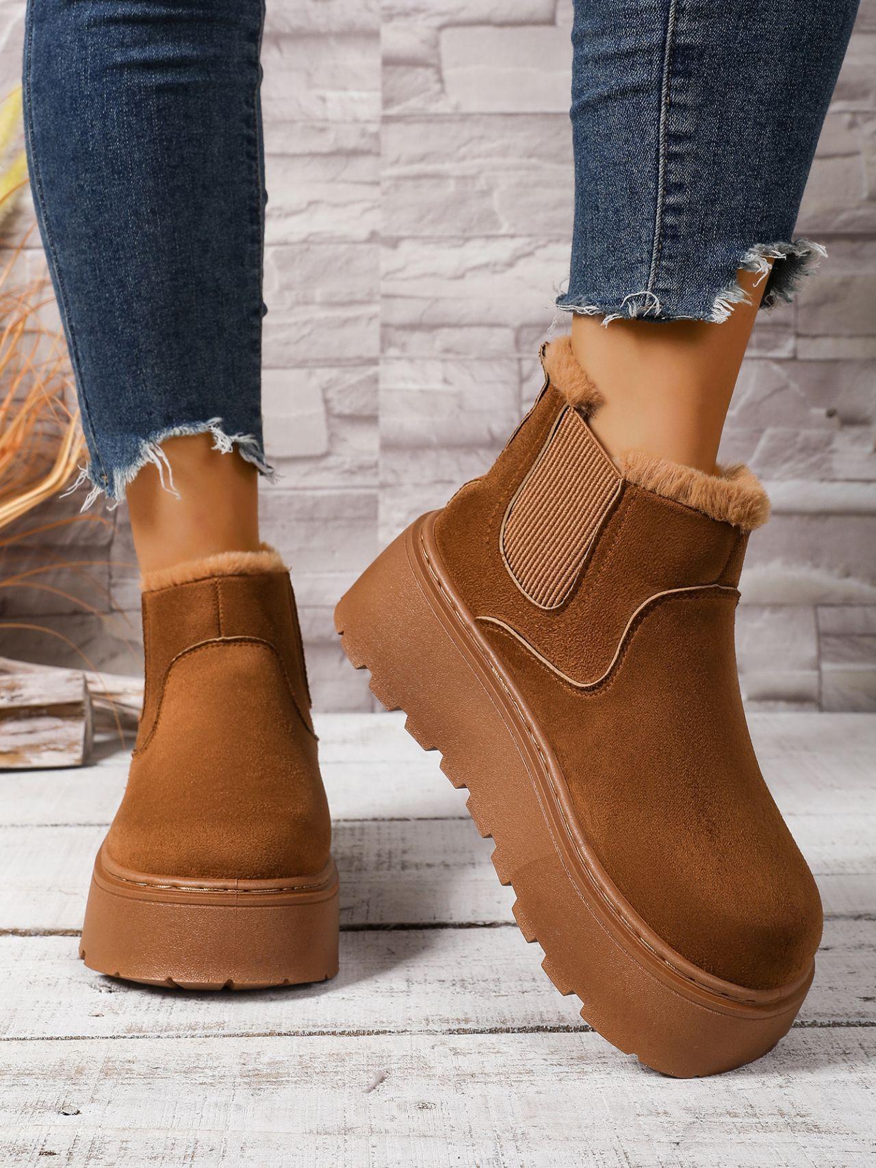 Botas de Nieve Cálidas de Talla Grande para Mujer 2025 Invierno Nuevo Suela Gruesa Gamuza Comercio Exterior Tacón de Cuña Ponerse Zapatos de Algodón Venta al por Mayor wish