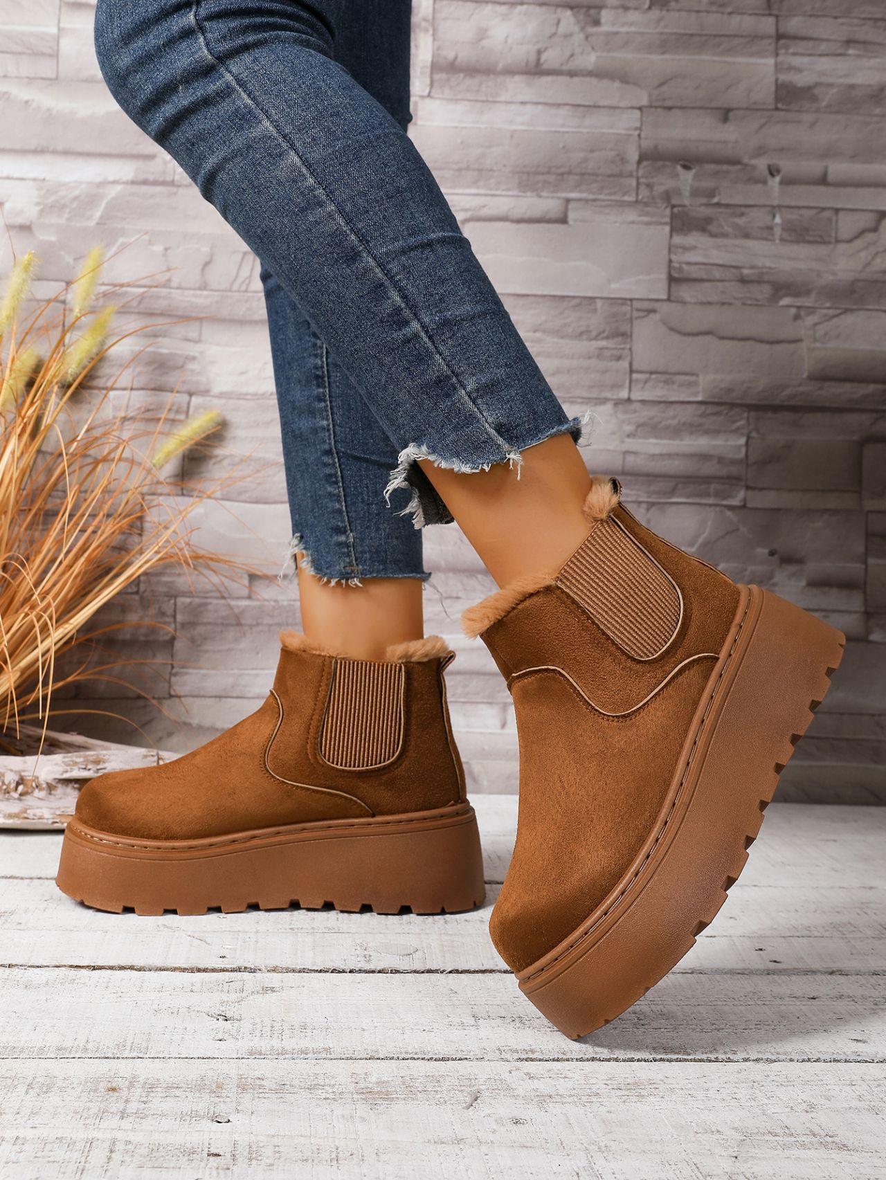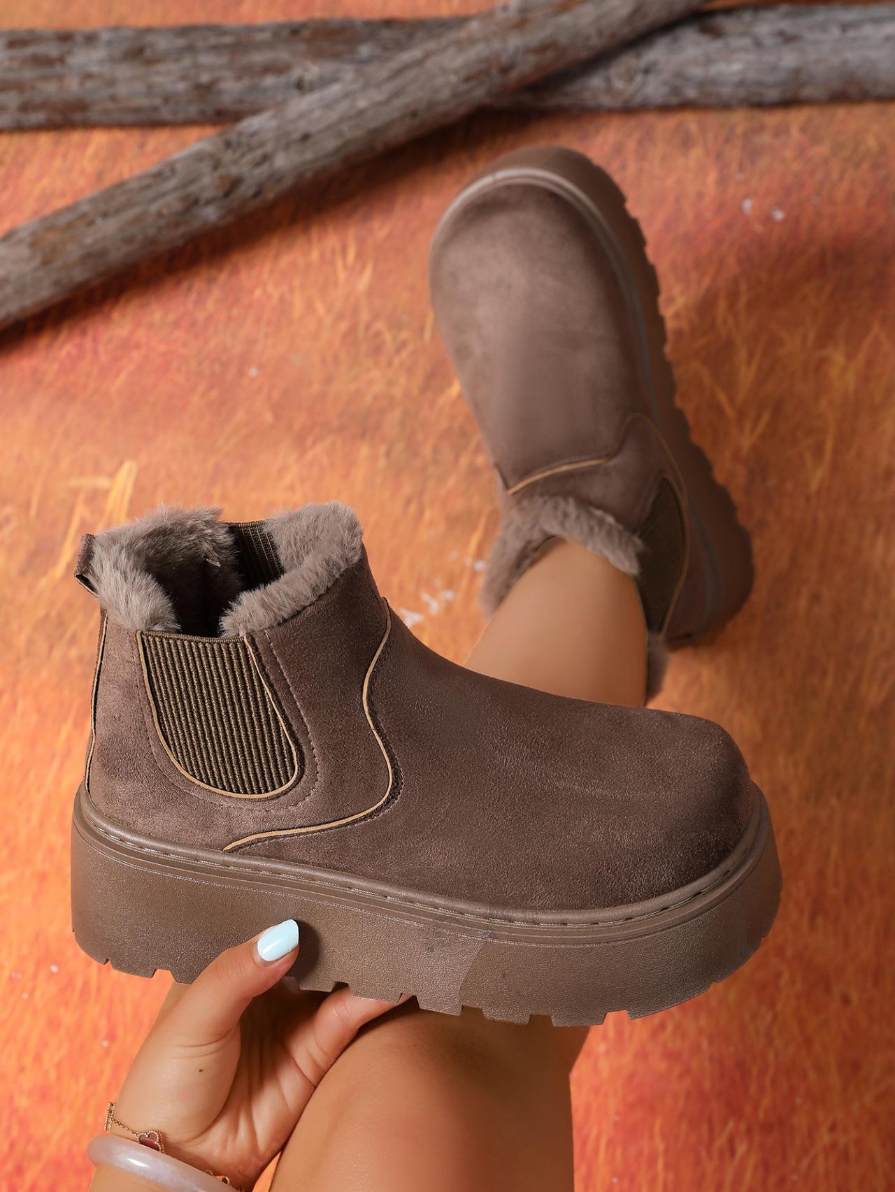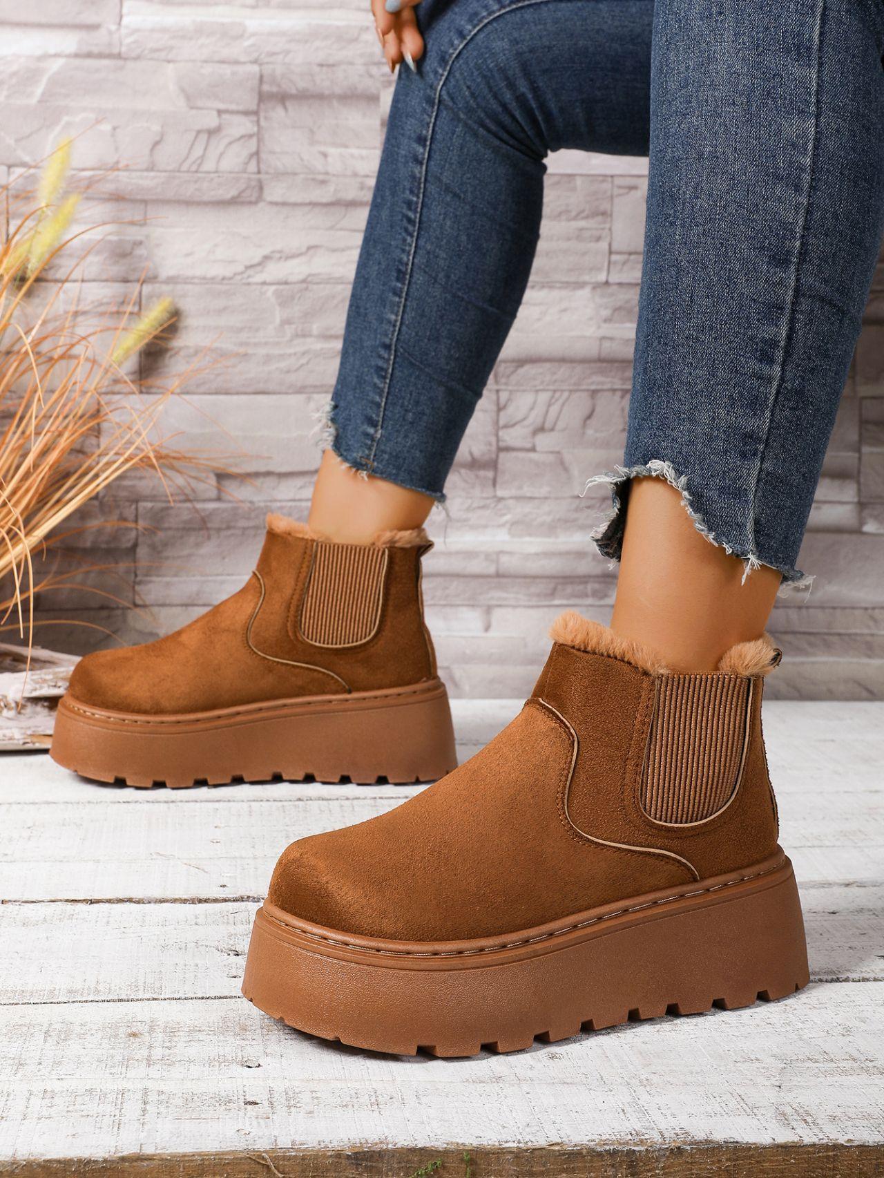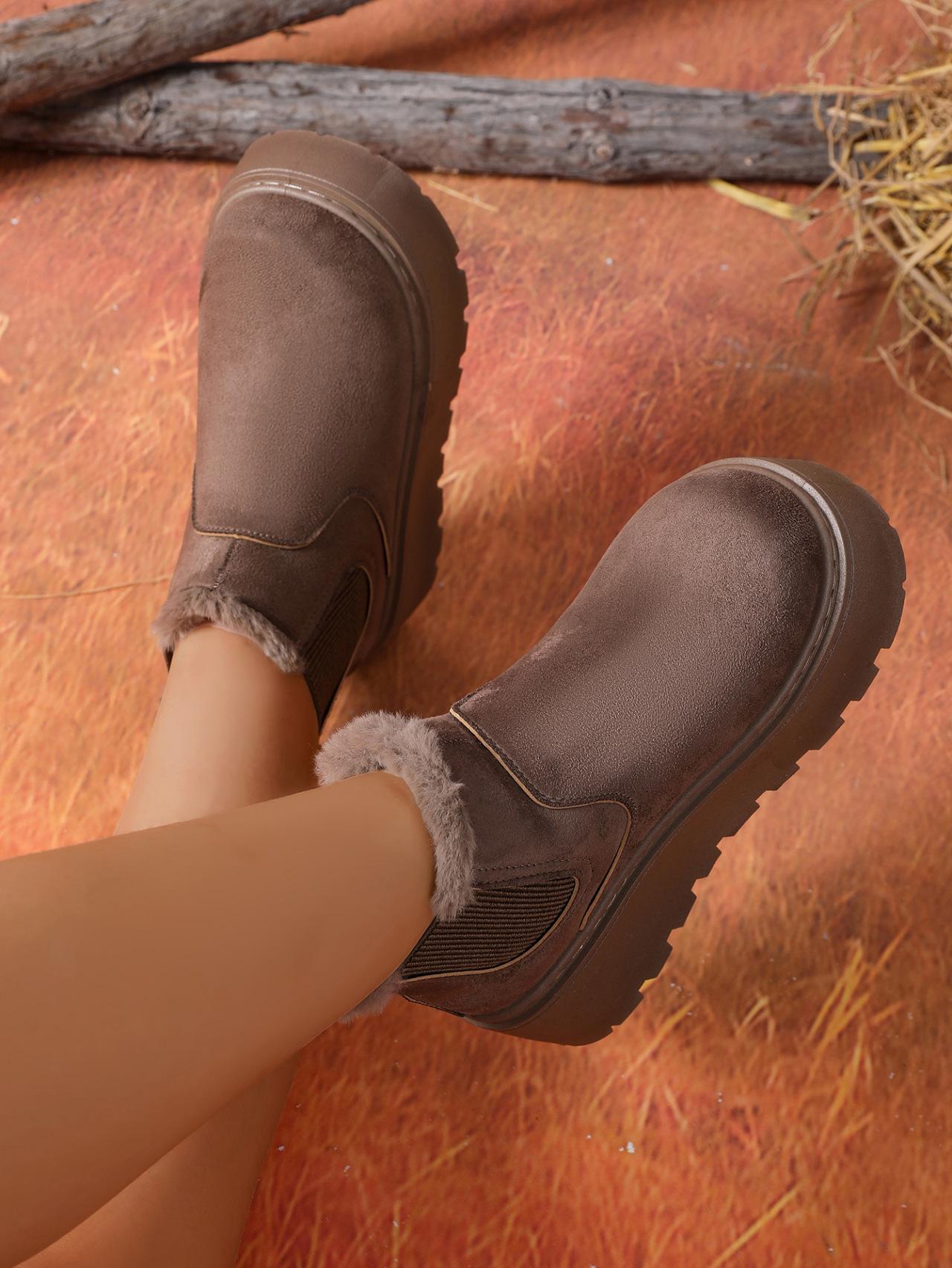 Botas de Nieve Cálidas de Talla Grande para Mujer 2025 Invierno Nuevo Suela Gruesa Gamuza Comercio Exterior Tacón de Cuña Ponerse Zapatos de Algodón Venta al por Mayor wish