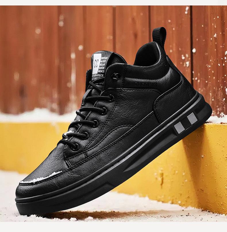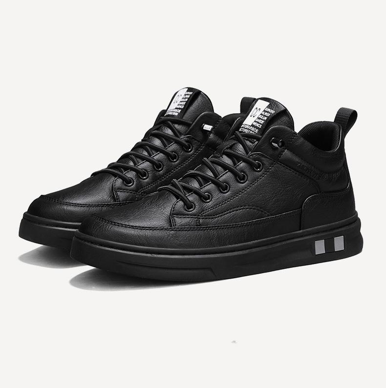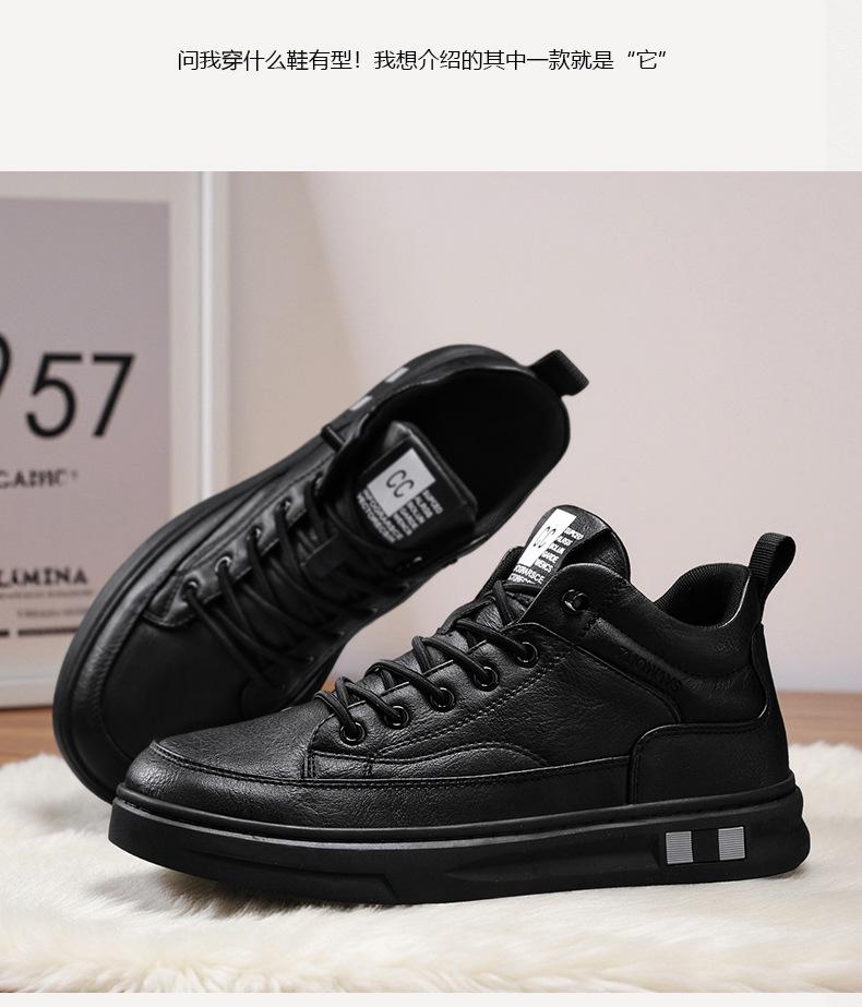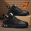 Zapatos de Hombre Primavera 2025 Nuevos Versátiles de Caña Media Negros Suela Blanda Zapatos de Cuero Moda Hombre Ligeros Casuales de Tablero Zapatos de Moda
