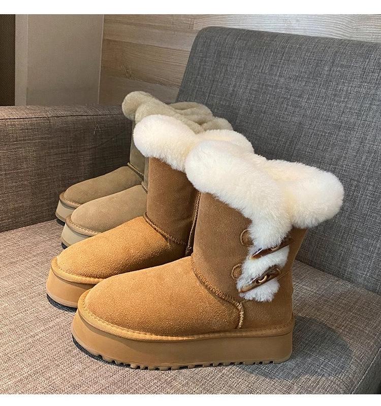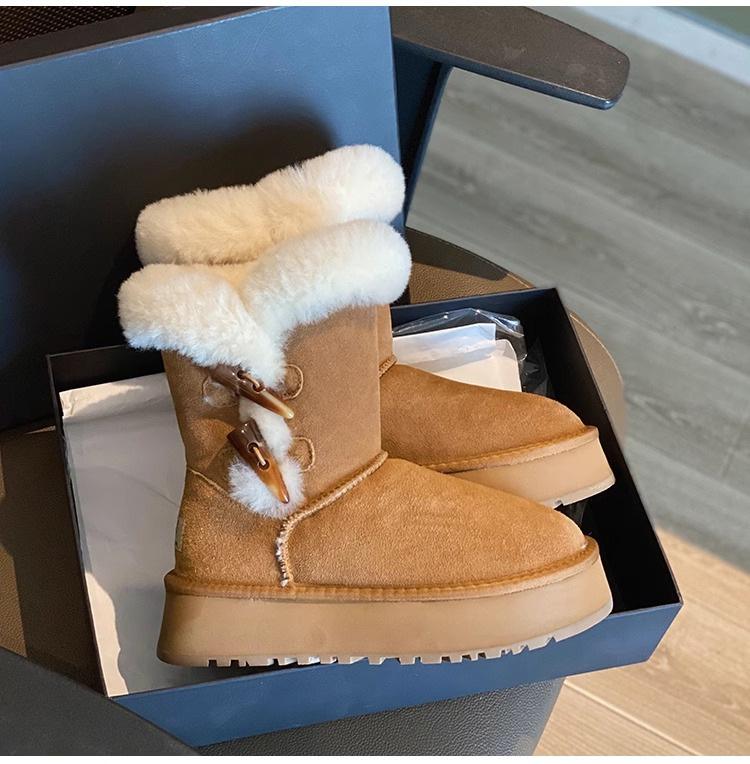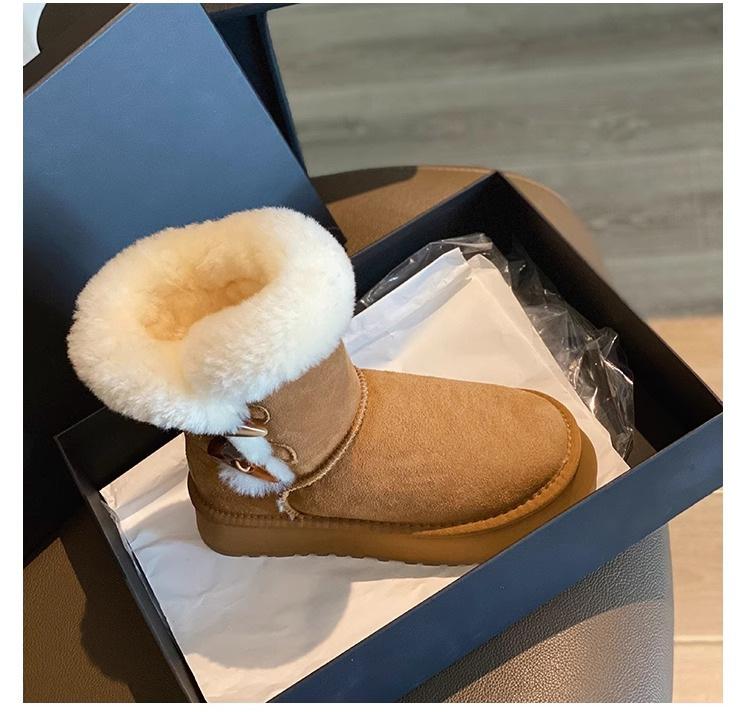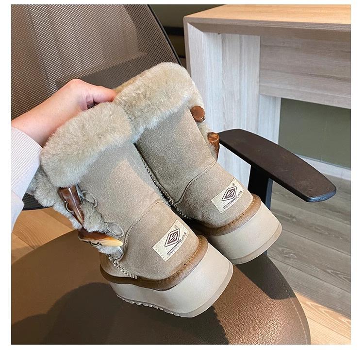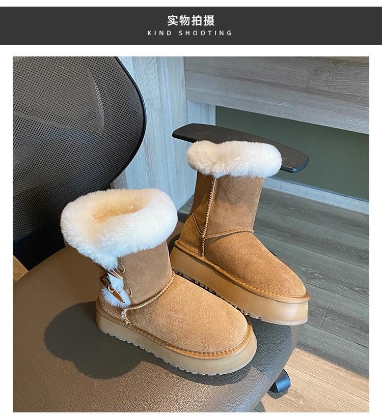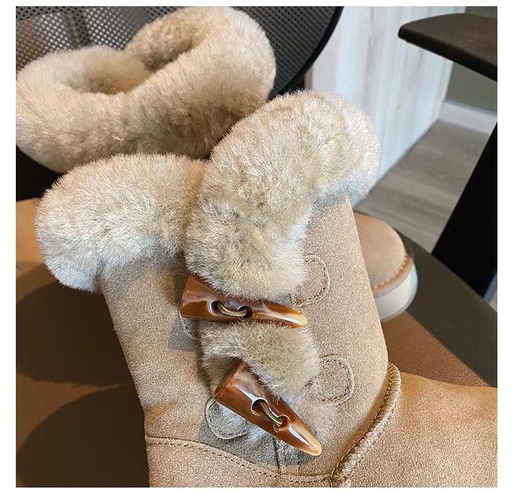Botas de nieve con hebilla para mujer 2025 invierno nuevas botas de algodón de media pantorrilla más terciopelo más gruesas y cálidas zapatos de algodón del noreste