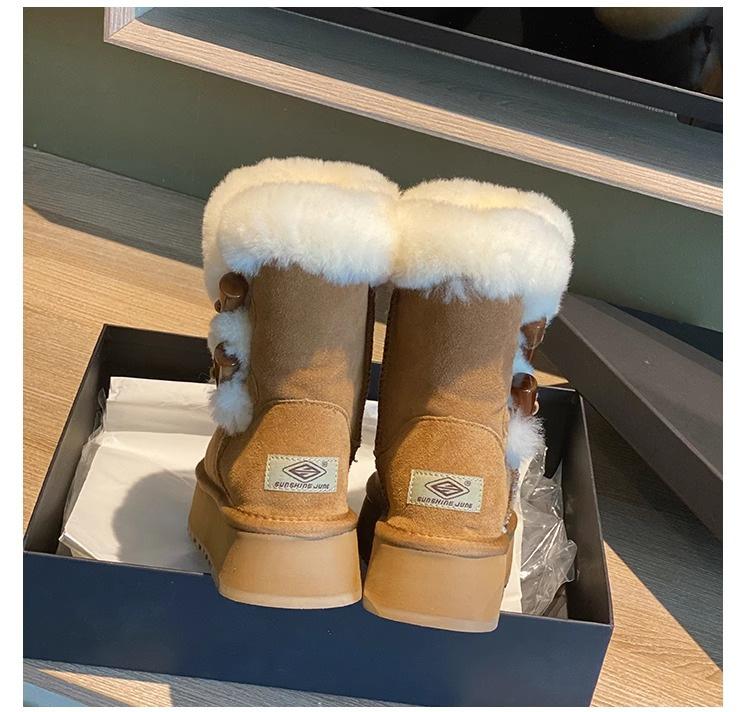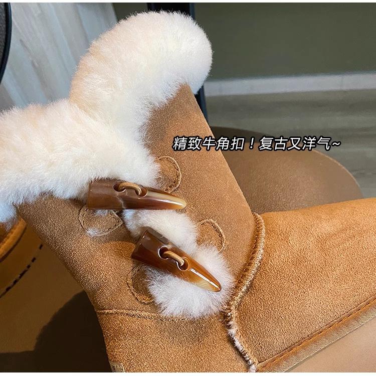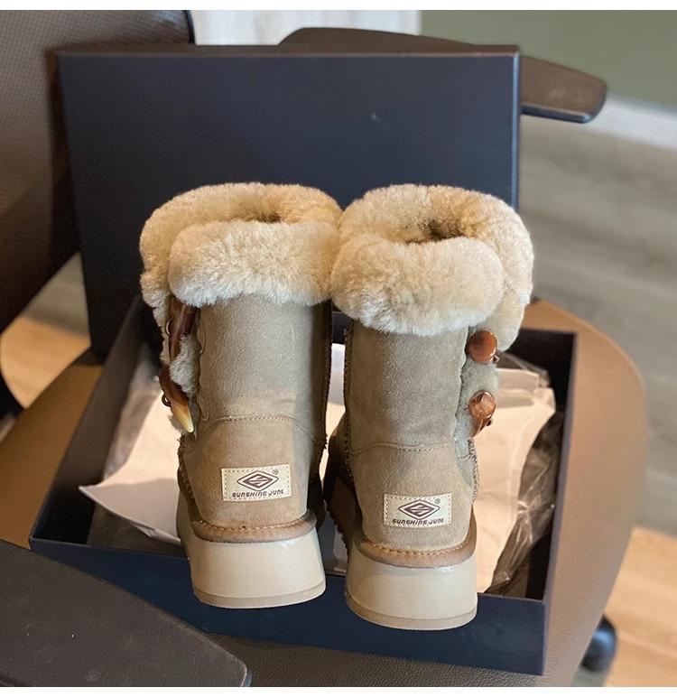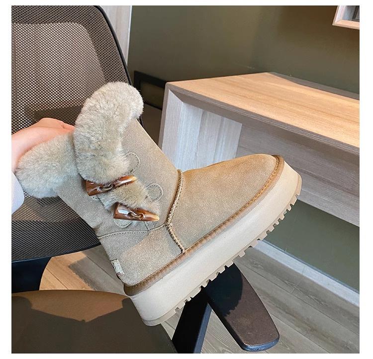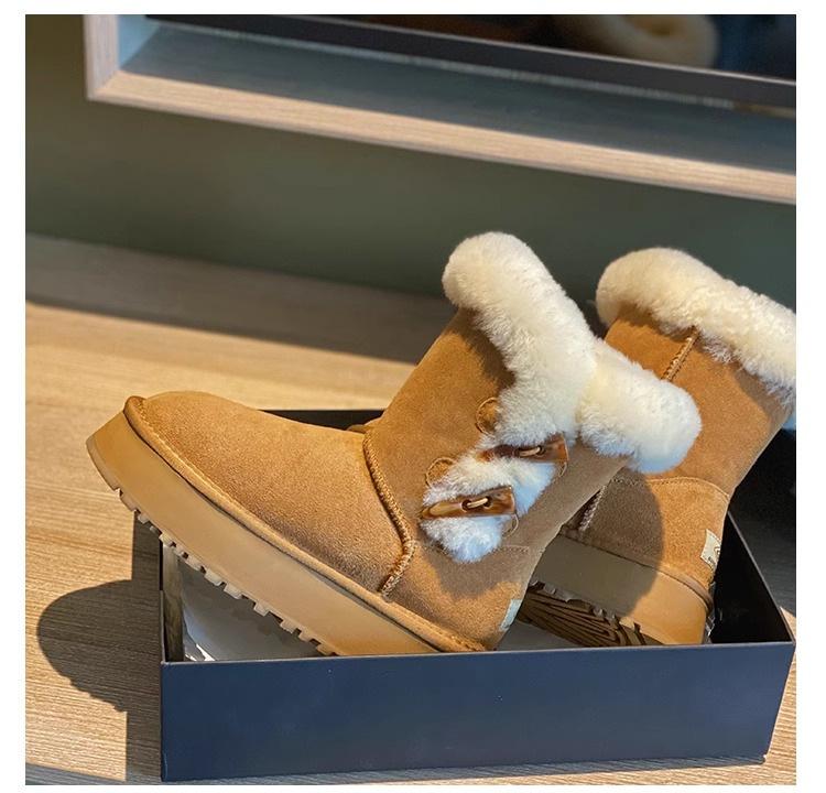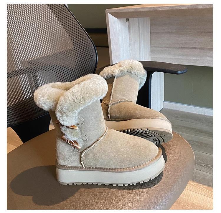 Botas de nieve con hebilla para mujer 2025 invierno nuevas botas de algodón de media pantorrilla más terciopelo más gruesas y cálidas zapatos de algodón del noreste