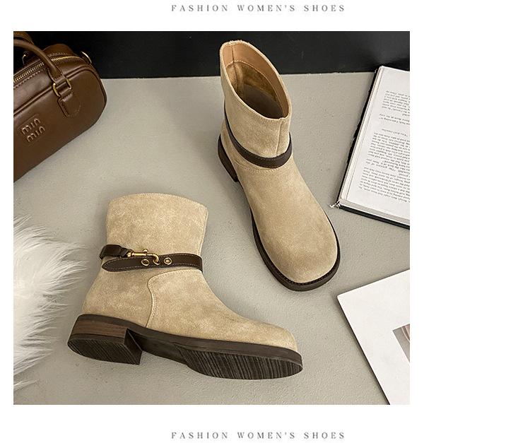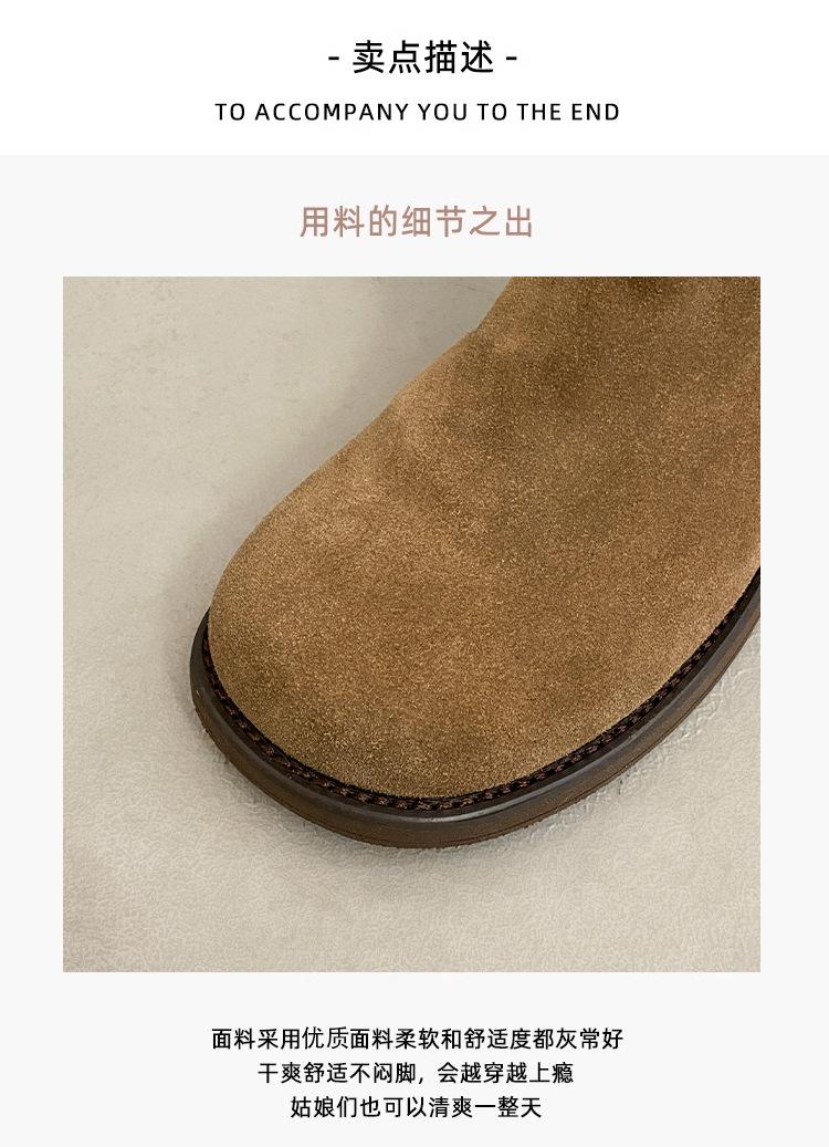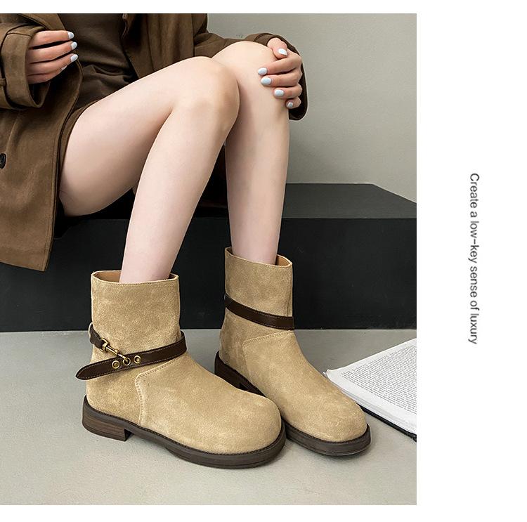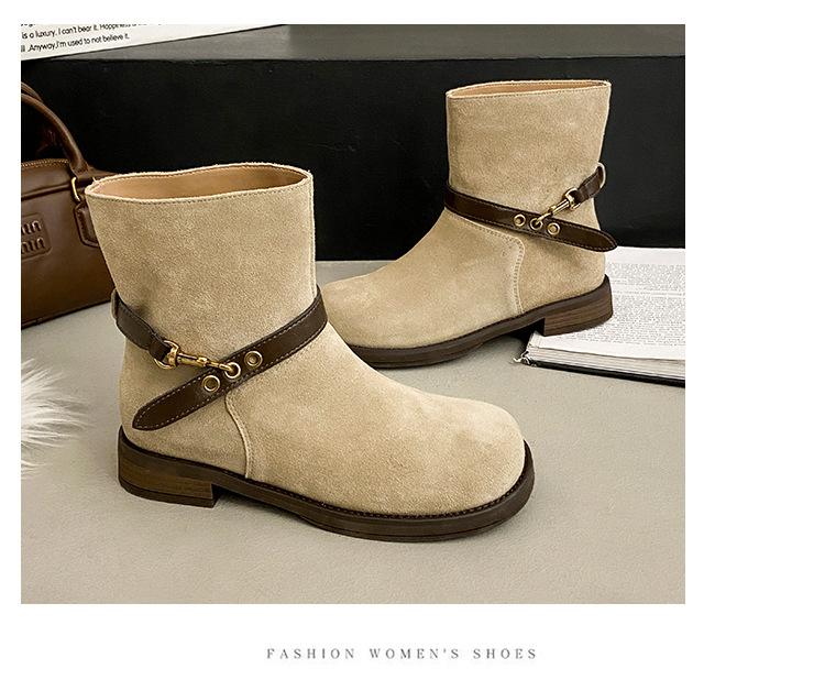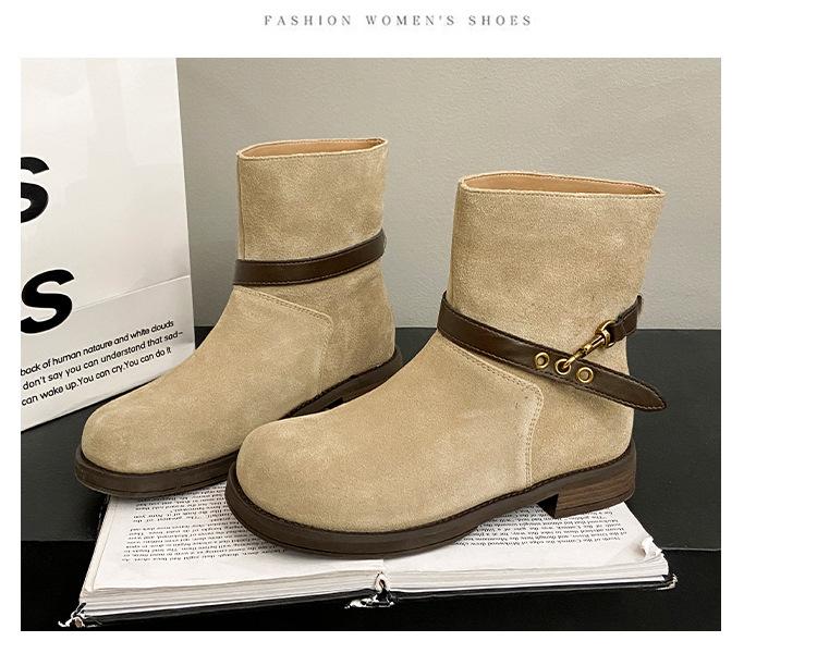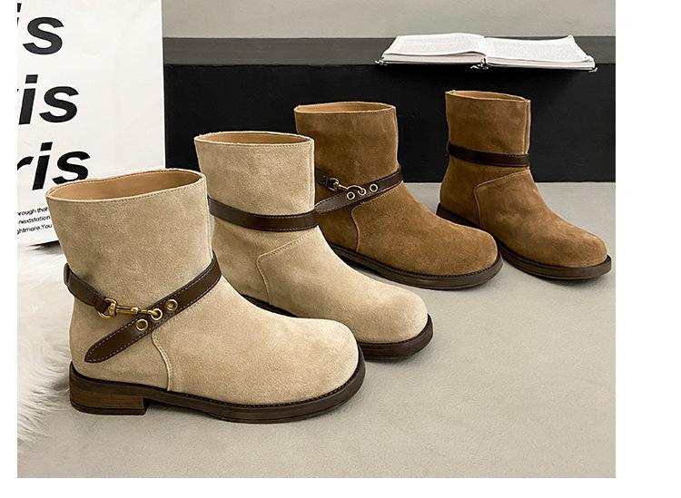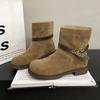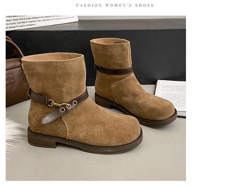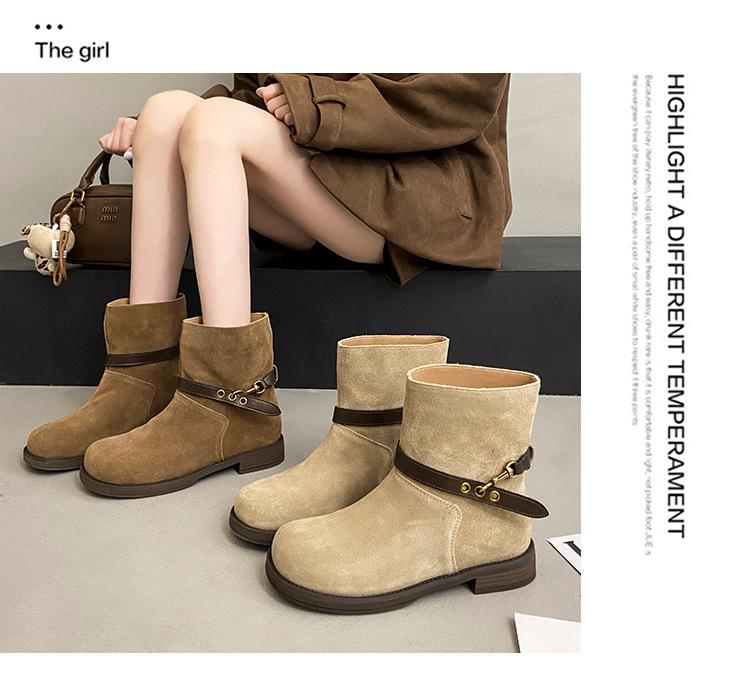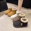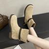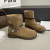 Botas de Nieve Planas de Felpa a la Moda de Estilo Coreano 2025 Invierno Nuevo Gamuza Cálidas Media Pantorrilla Botas de Algodón para Mujer Zapatos