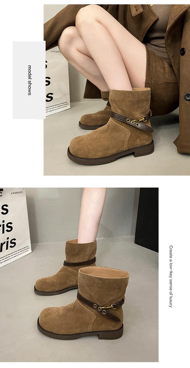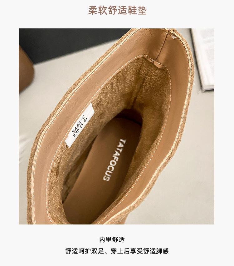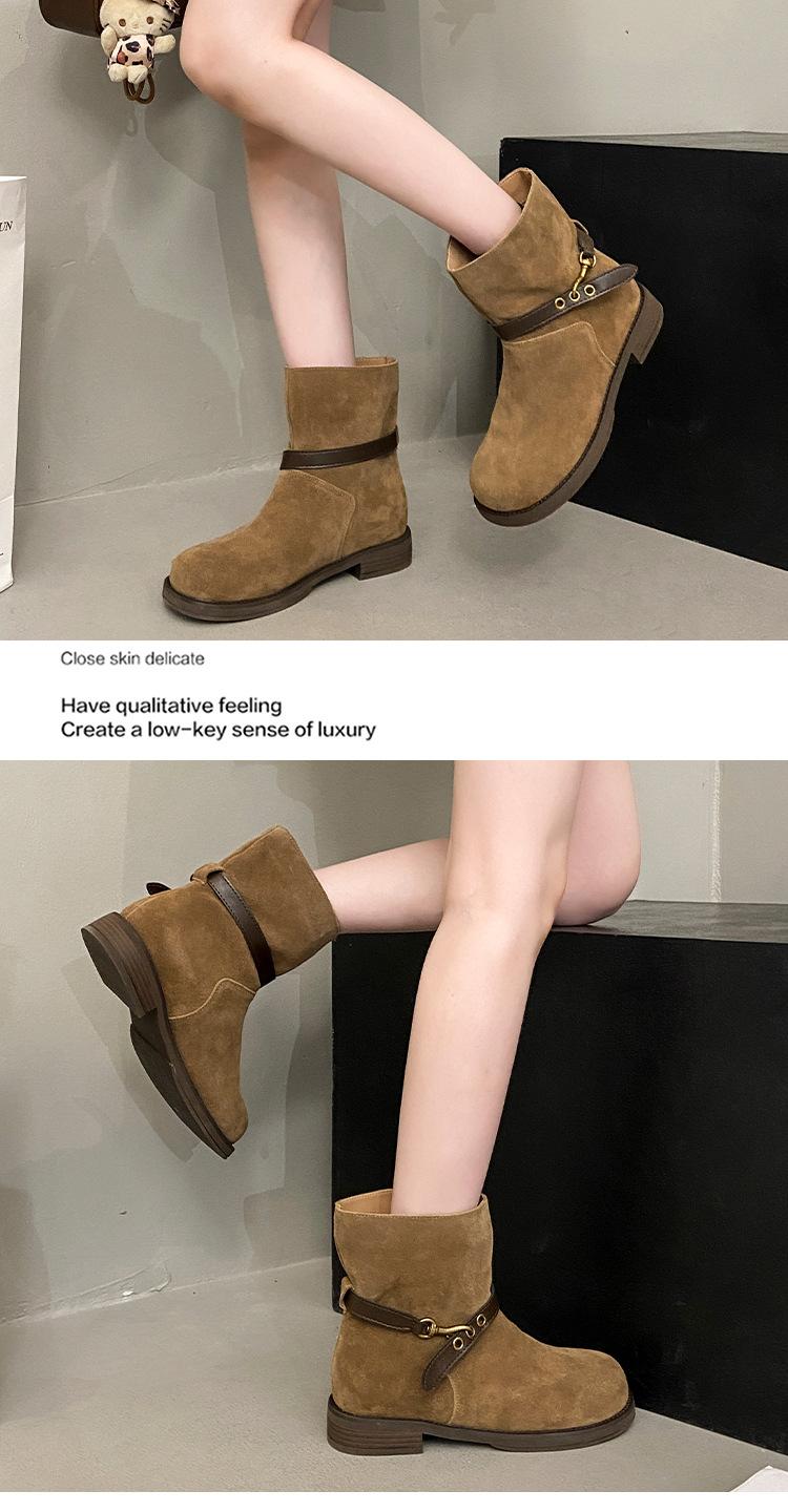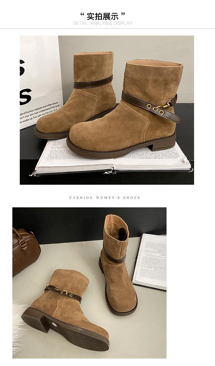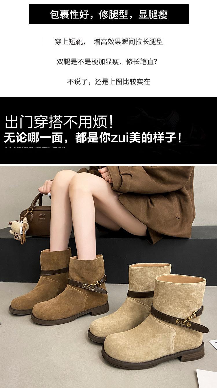 Botas de Nieve Planas de Felpa a la Moda de Estilo Coreano 2025 Invierno Nuevo Gamuza Cálidas Media Pantorrilla Botas de Algodón para Mujer Zapatos