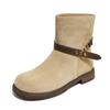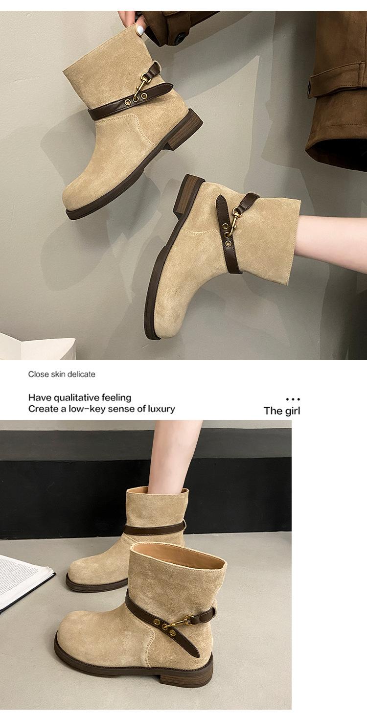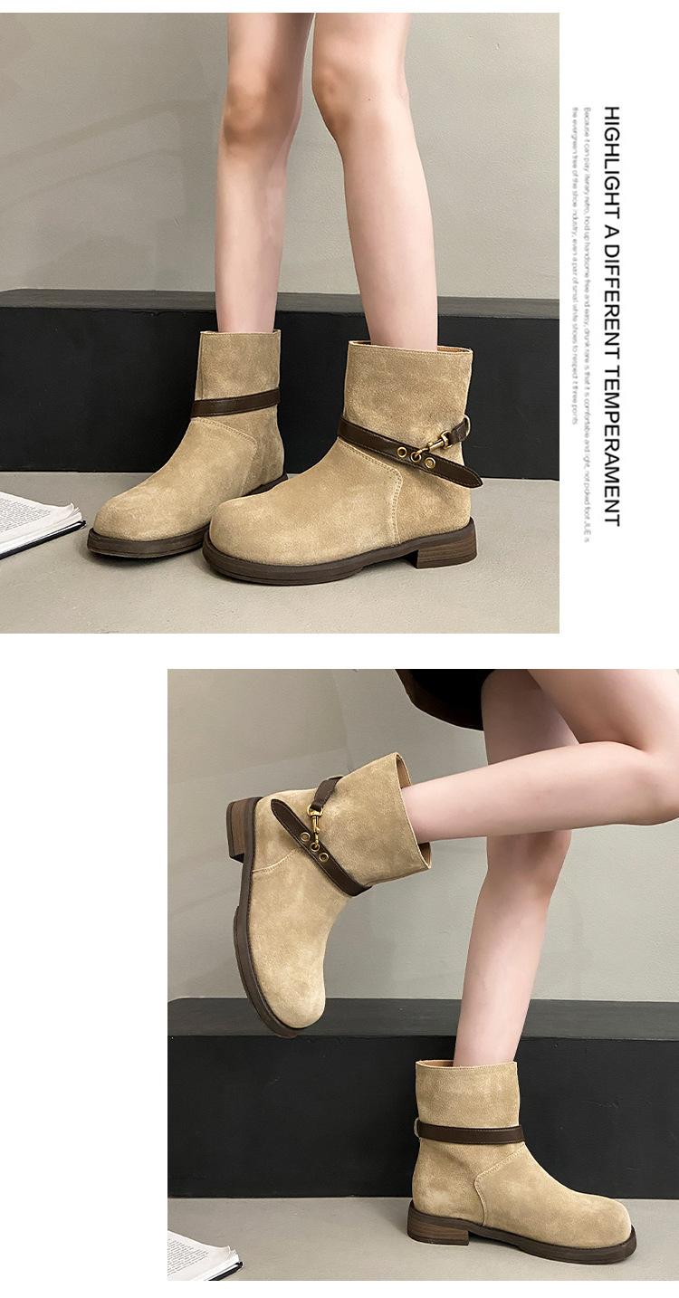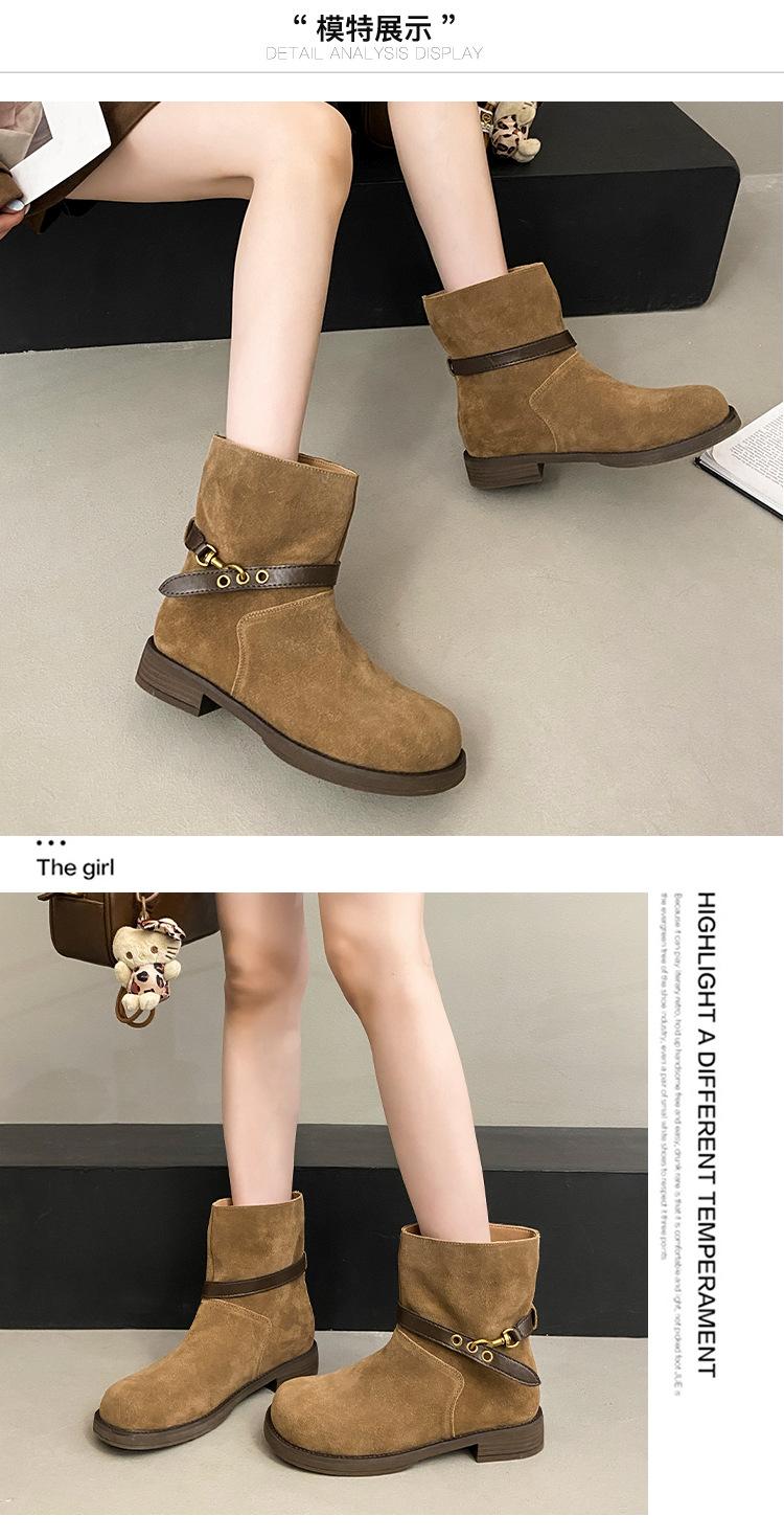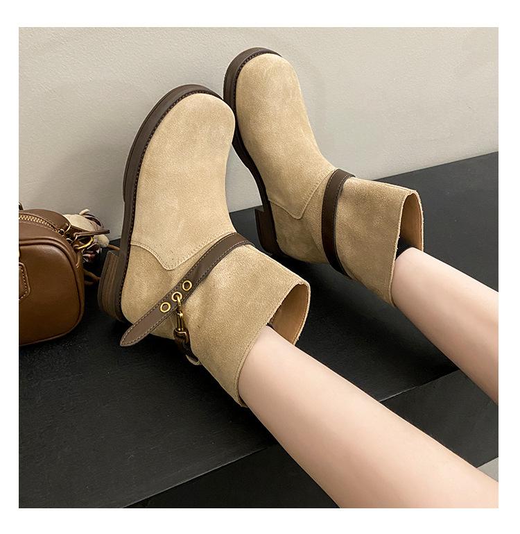 Botas de Nieve Planas de Felpa a la Moda de Estilo Coreano 2025 Invierno Nuevo Gamuza Cálidas Media Pantorrilla Botas de Algodón para Mujer Zapatos
