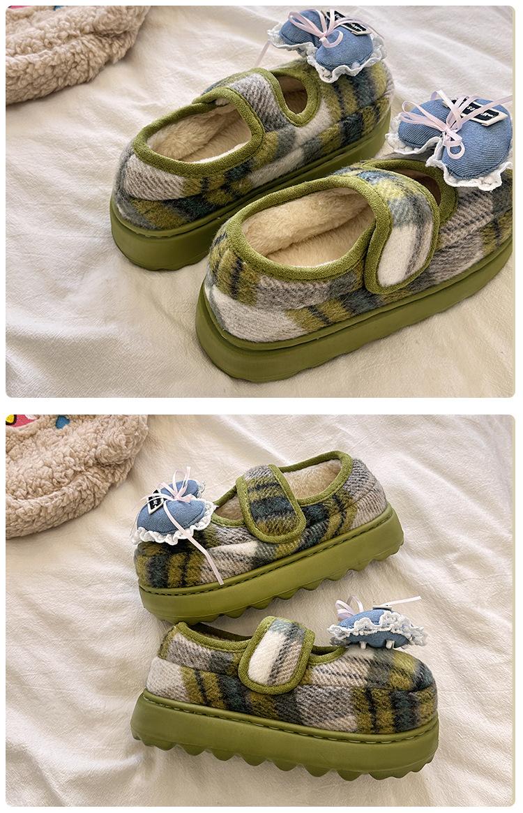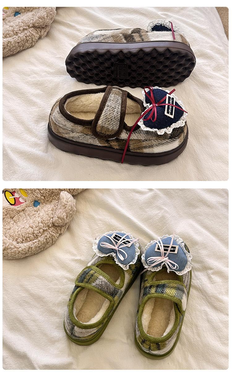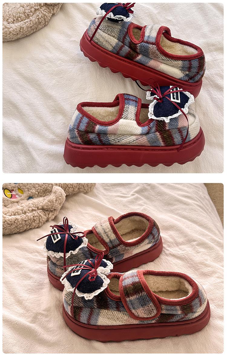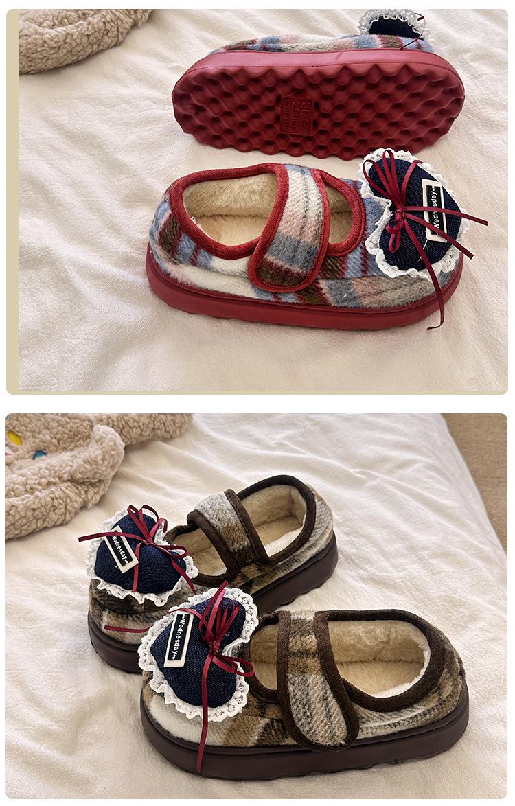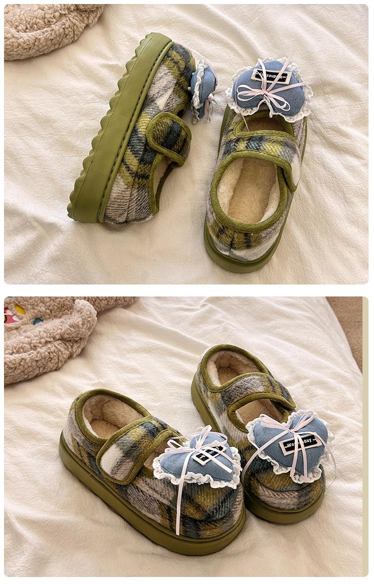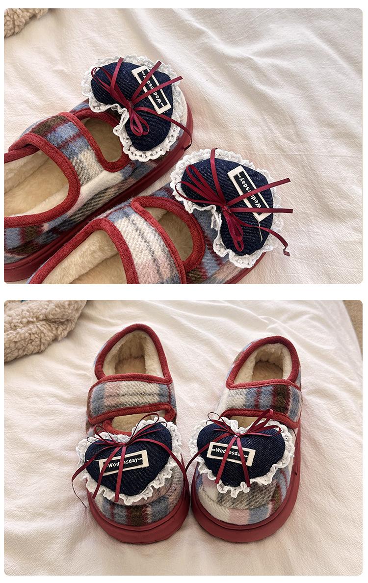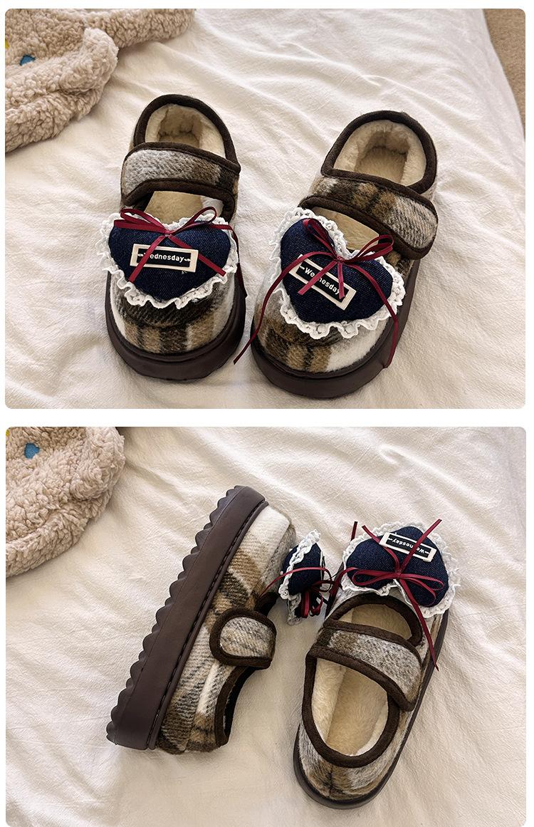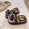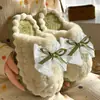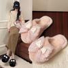 Lindas Pantuflas Difusas de Corazón de Amor con Lazo para Mujer para Exterior 2025 Otoño/Invierno para Casa Antideslizantes Cálidas de Algodón con Tira Única