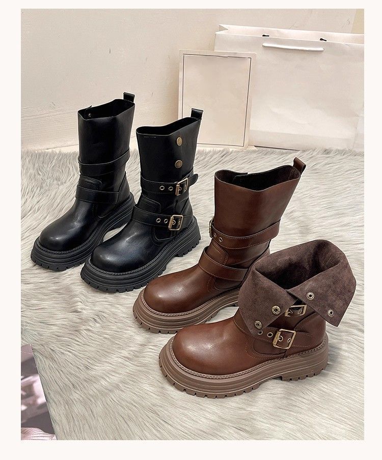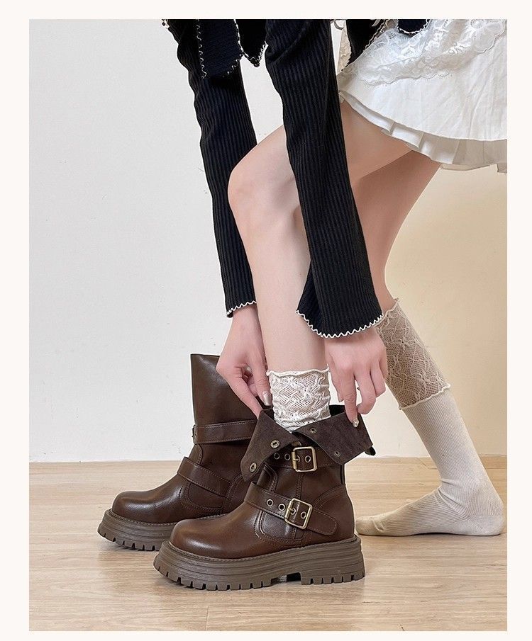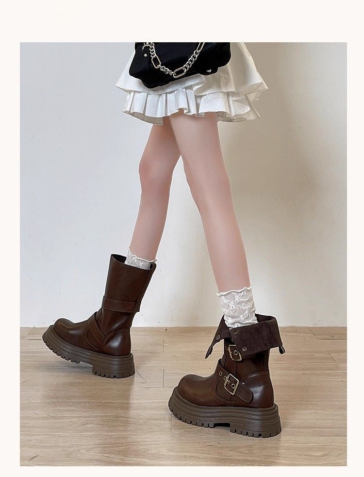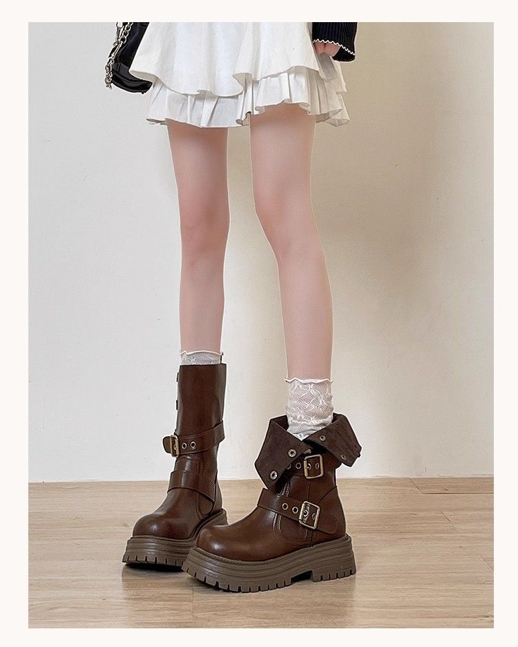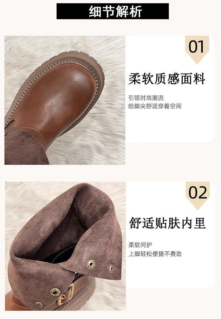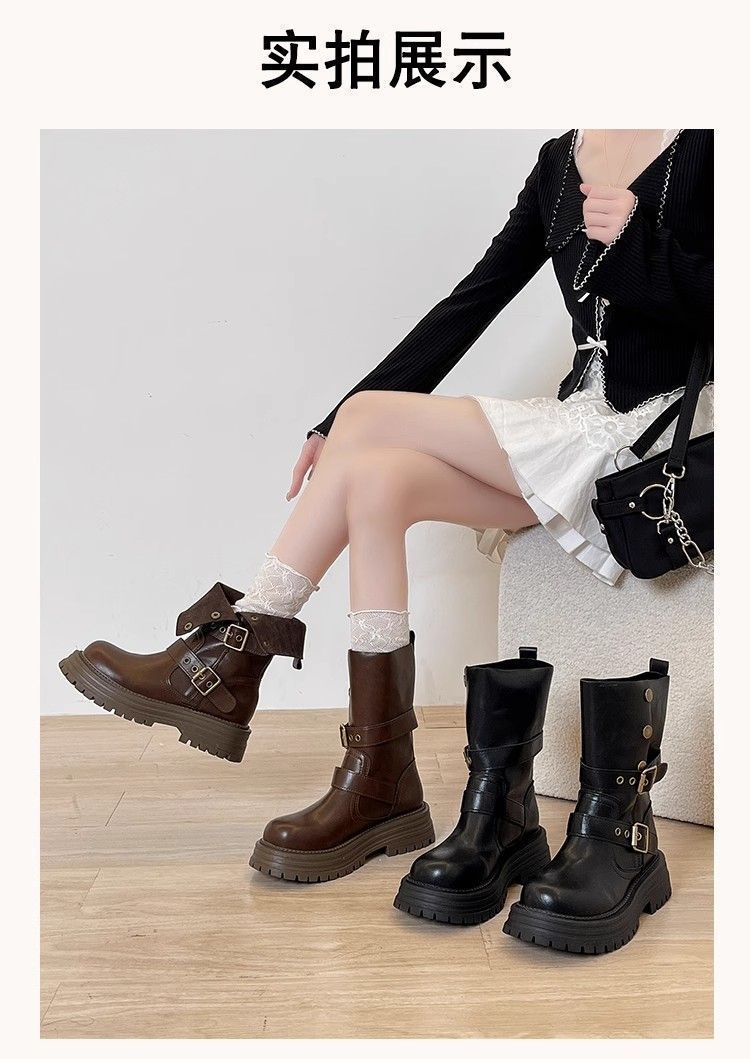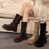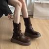 Botas Retro Versátiles Cómodas de Media Caña Mujer 2025 Otoño/Invierno Nuevo Estilo Británico Suela Gruesa Aumento de Altura Botas Martin Mujer