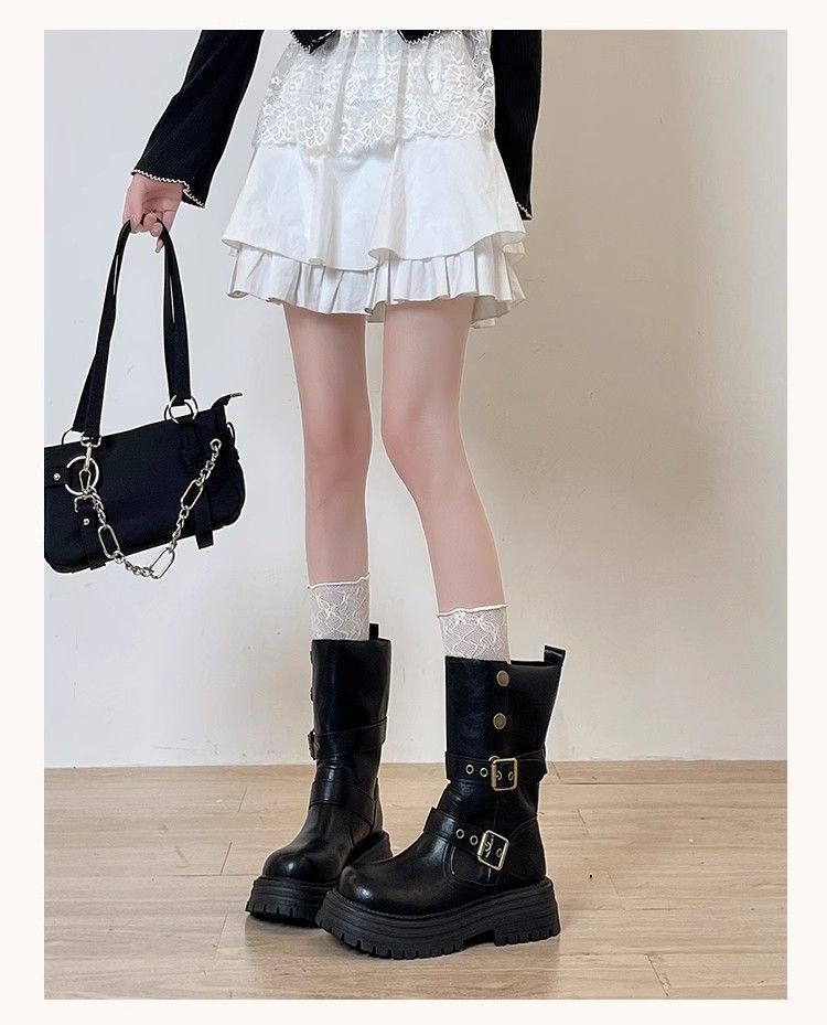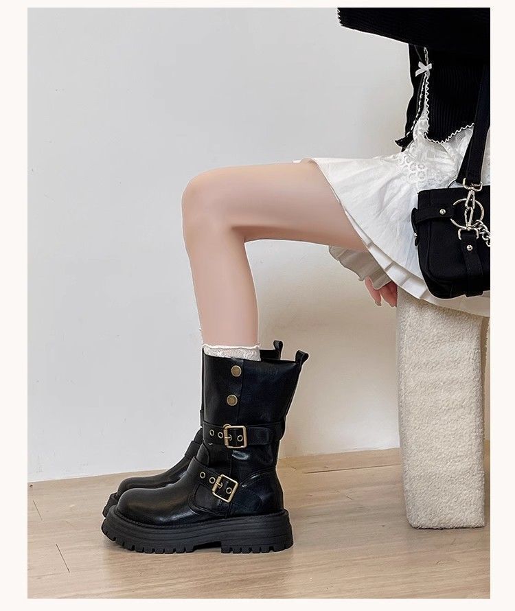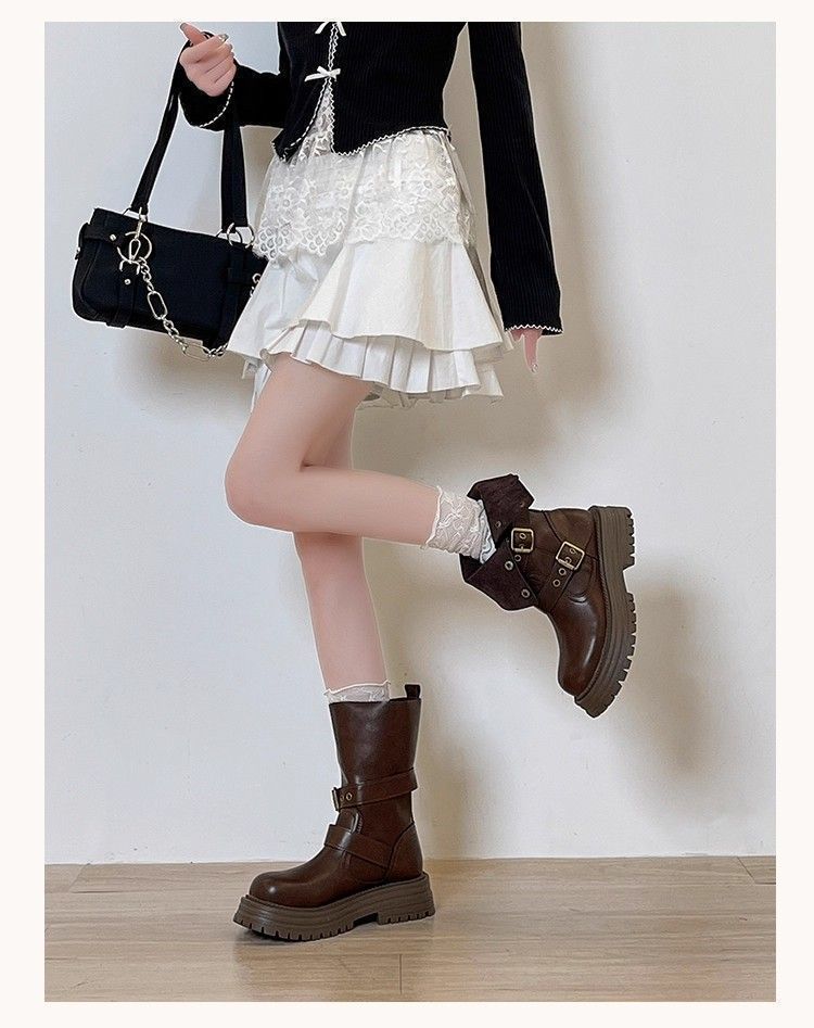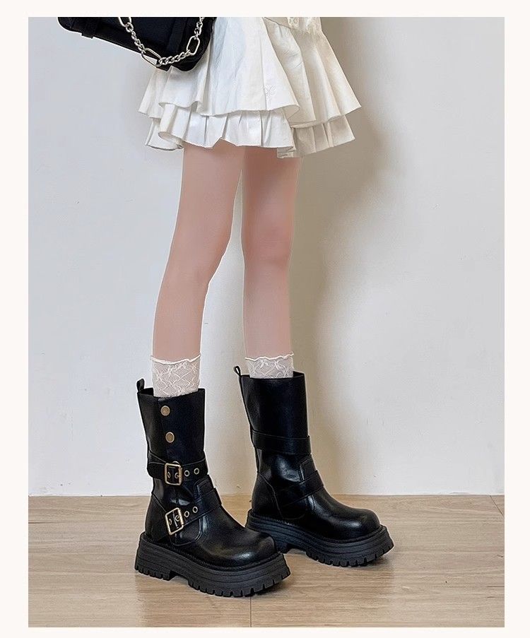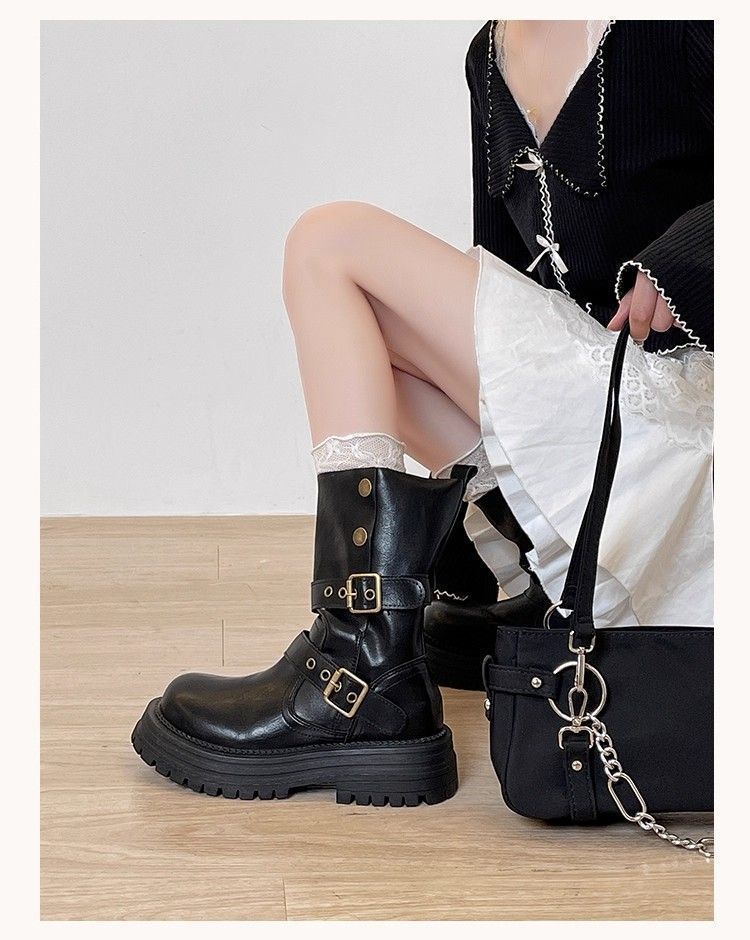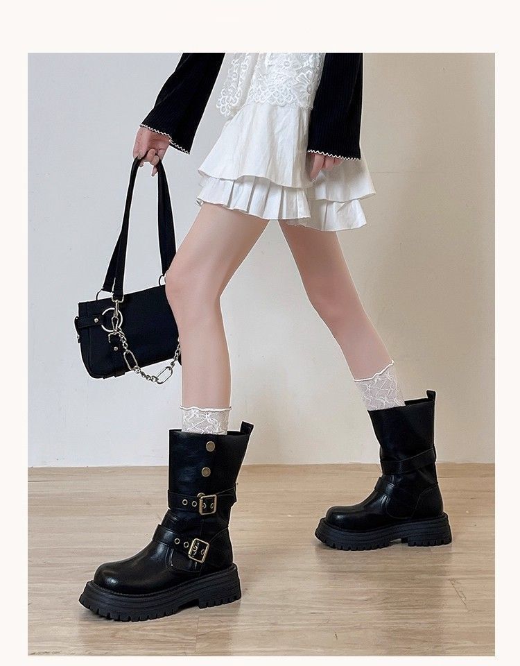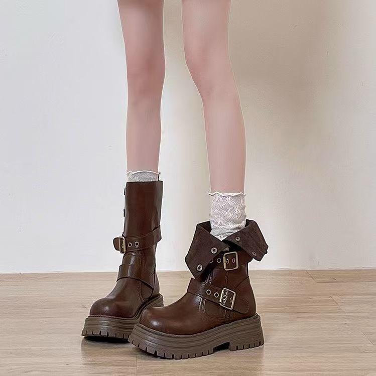 Botas Retro Versátiles Cómodas de Media Caña Mujer 2025 Otoño/Invierno Nuevo Estilo Británico Suela Gruesa Aumento de Altura Botas Martin Mujer