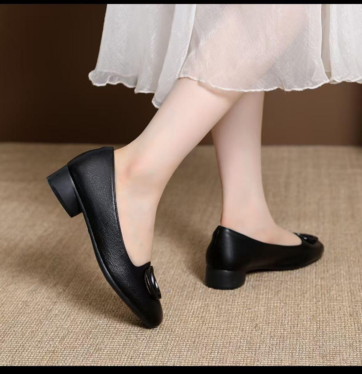 2025 Nuevos Zapatos Planos Versátiles de Corte Bajo para Otoño para Mujer Cuero Suave Suela Suave Punta Redonda Tacón Bajo Zapatos Individuales Mocasines Mujer