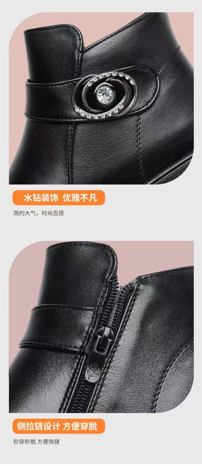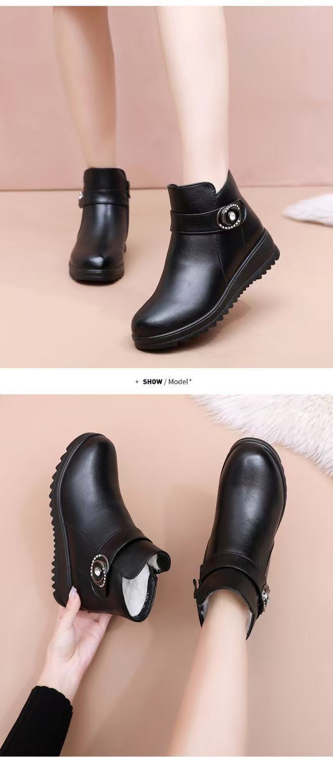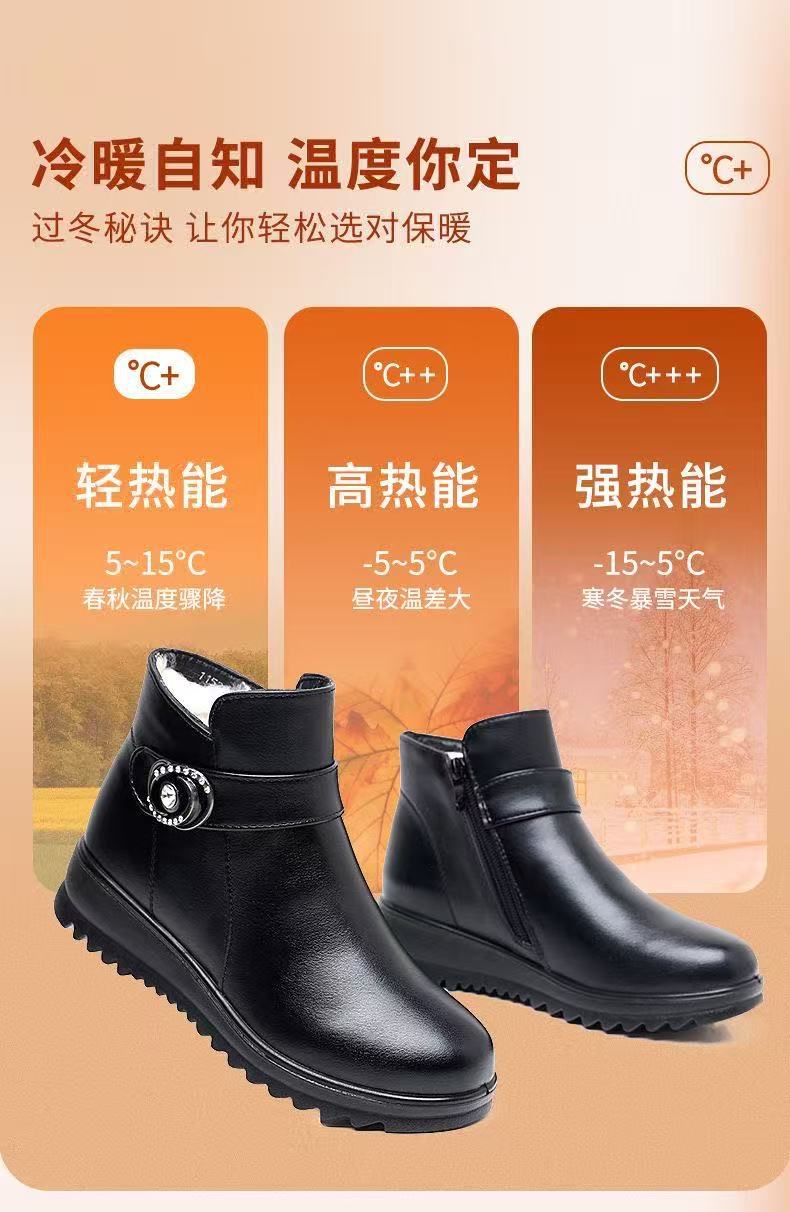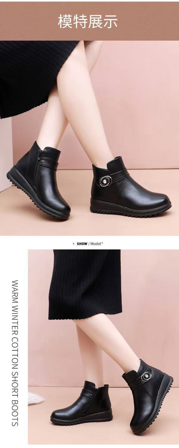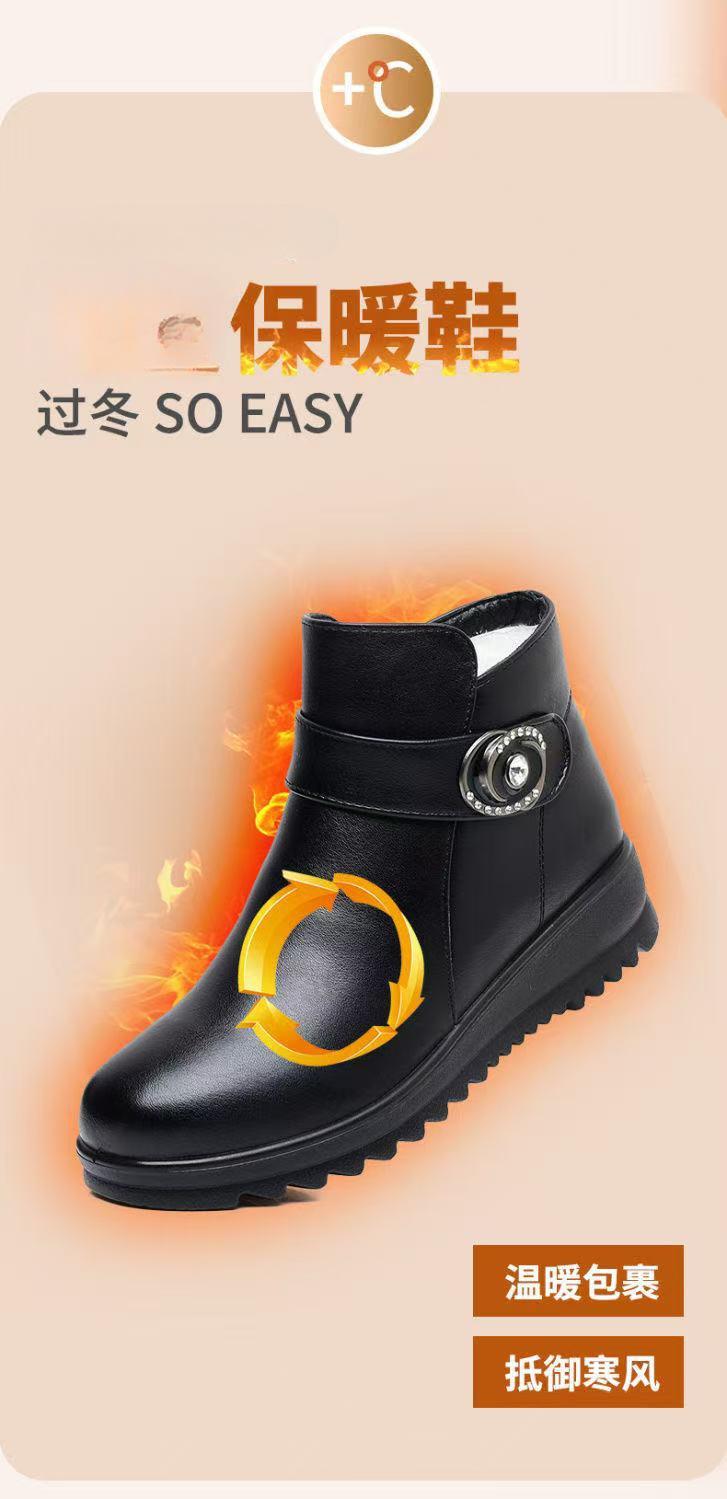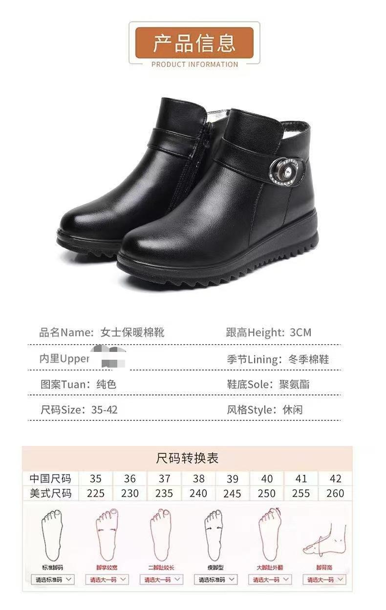 Zapatos de invierno para mamá zapatos de algodón más terciopelo cálido para mediana edad y ancianos zapatos de cuero zapatos de mujer de mediana edad zapatos de invierno para personas mayores zapatos antideslizantes de suela plana botas cortas