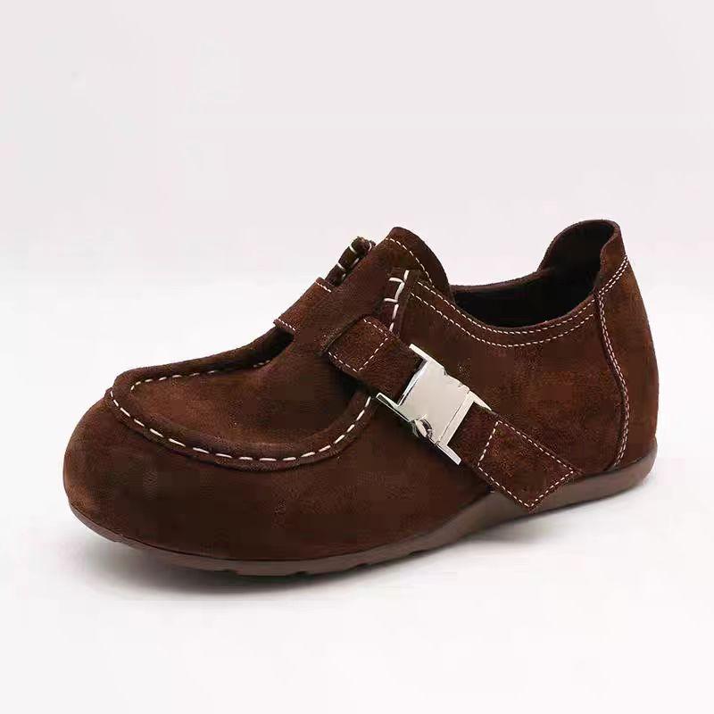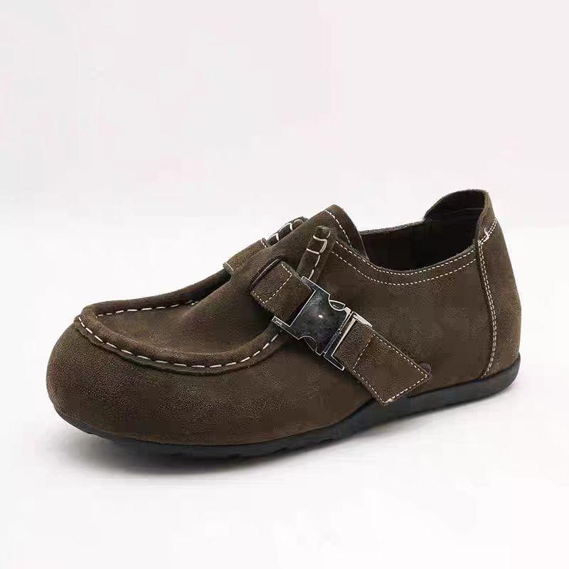 Zapatos Individuales Birkenstock de Tacón Oculto para Mujer Otoño 2025 Nuevo Estilo Mori Suela Suave Hebilla Puntera Redonda Mocasines Casuales