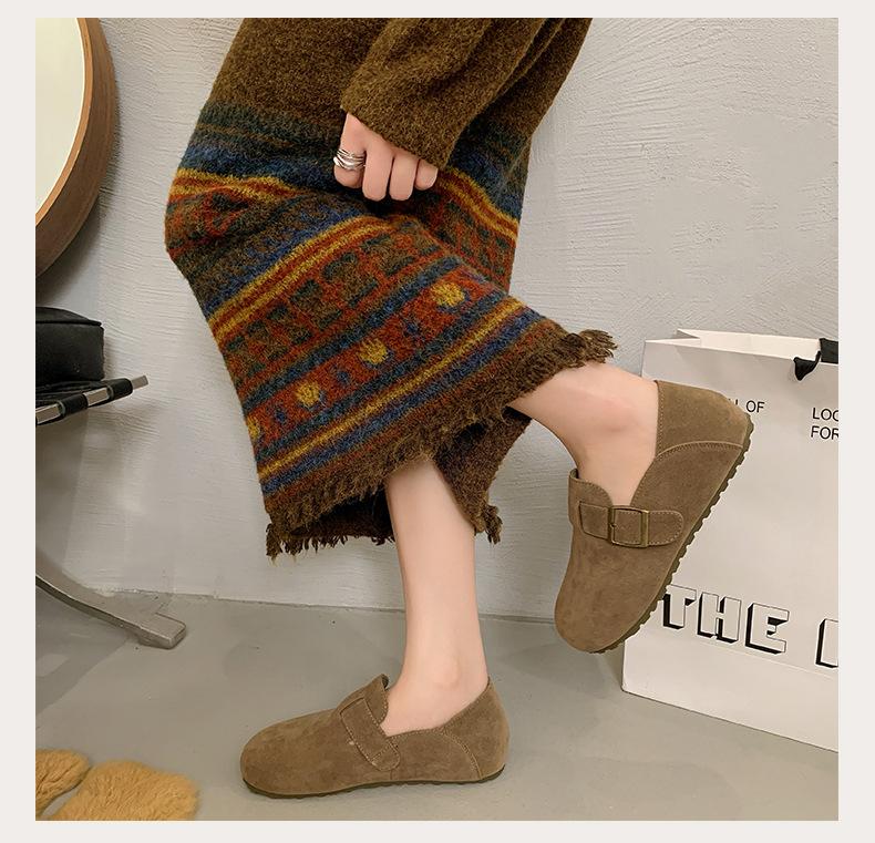 Gamuza Birkenstock Mujer 2025 Otoño/Invierno Nuevos Mocasines Planos Versátiles de Un Paso Talla Grande Zapatos Individuales