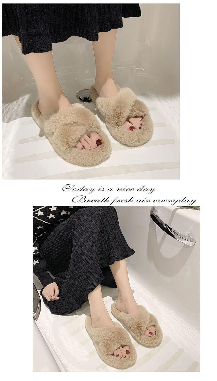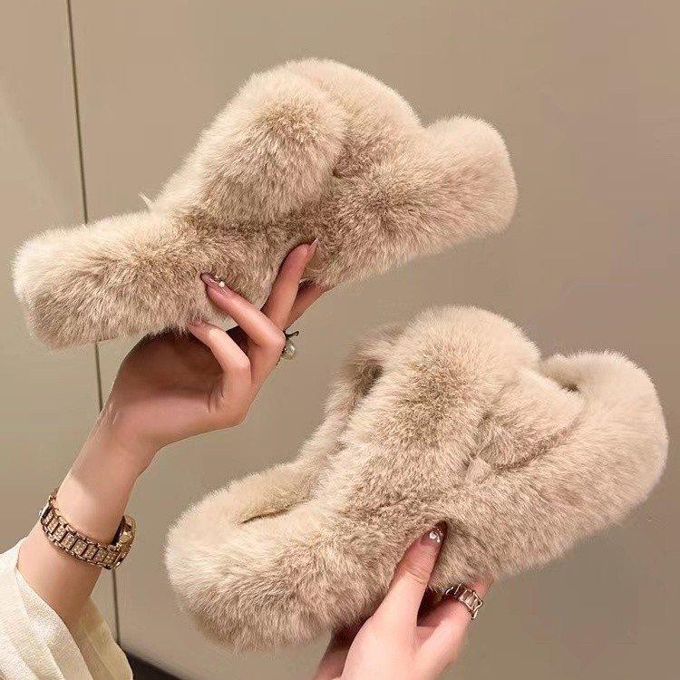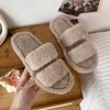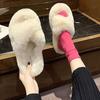 Pantuflas peludas para mujer para usar en exteriores 2025 nuevos zapatos estilo coreano otoño e invierno hogar interior de una palabra suela gruesa pantuflas de algodón tendencia ins