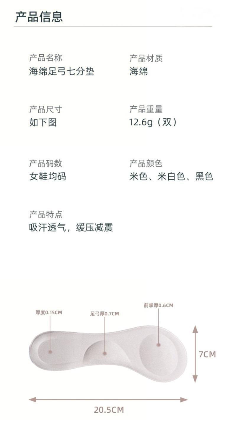 Suministro inmediato zapatos de tacón alto soporte de arco de esponja almohadilla de siete puntos amortiguadora absorbente de sudor suave superficie de tela antideslizante almohadilla de media talla almohadilla ajustadora de tamaño