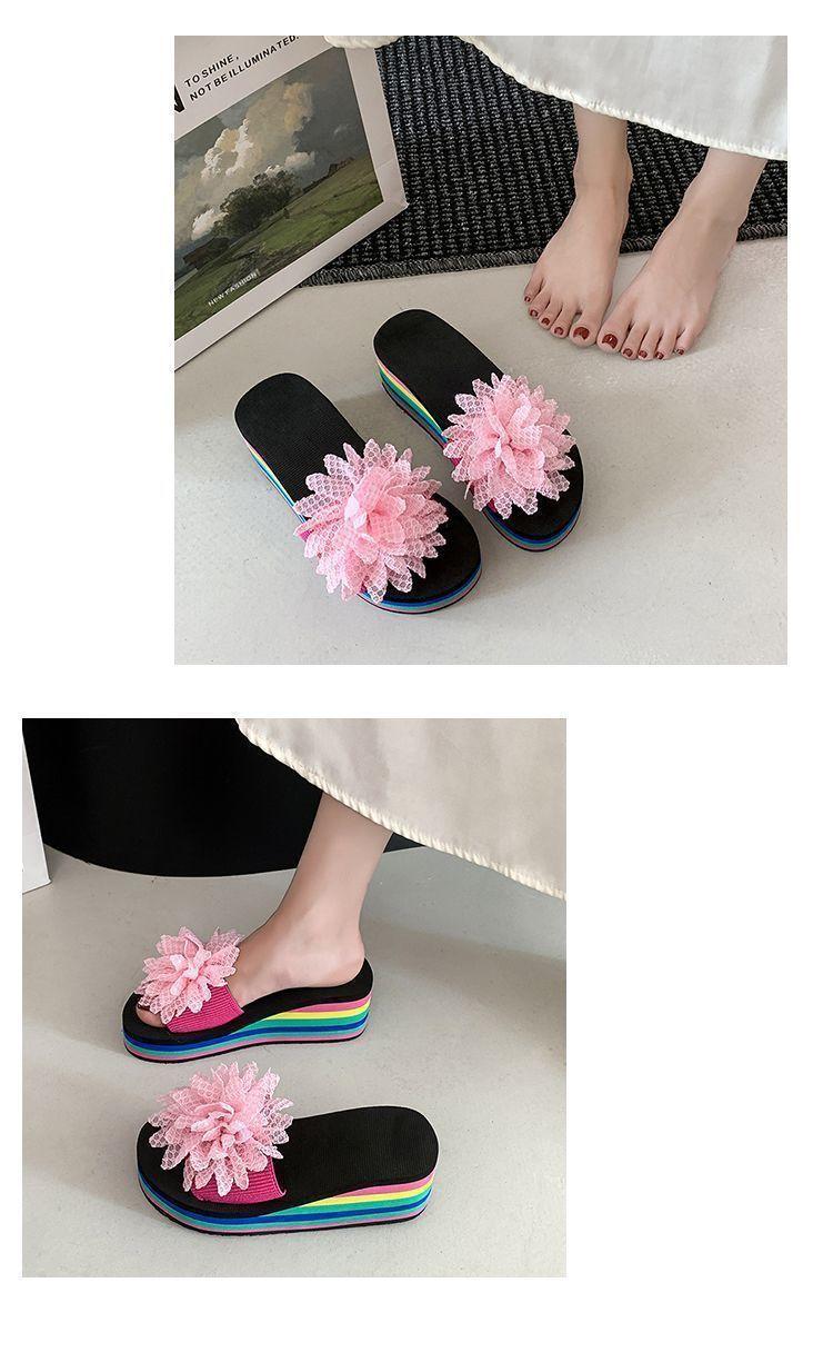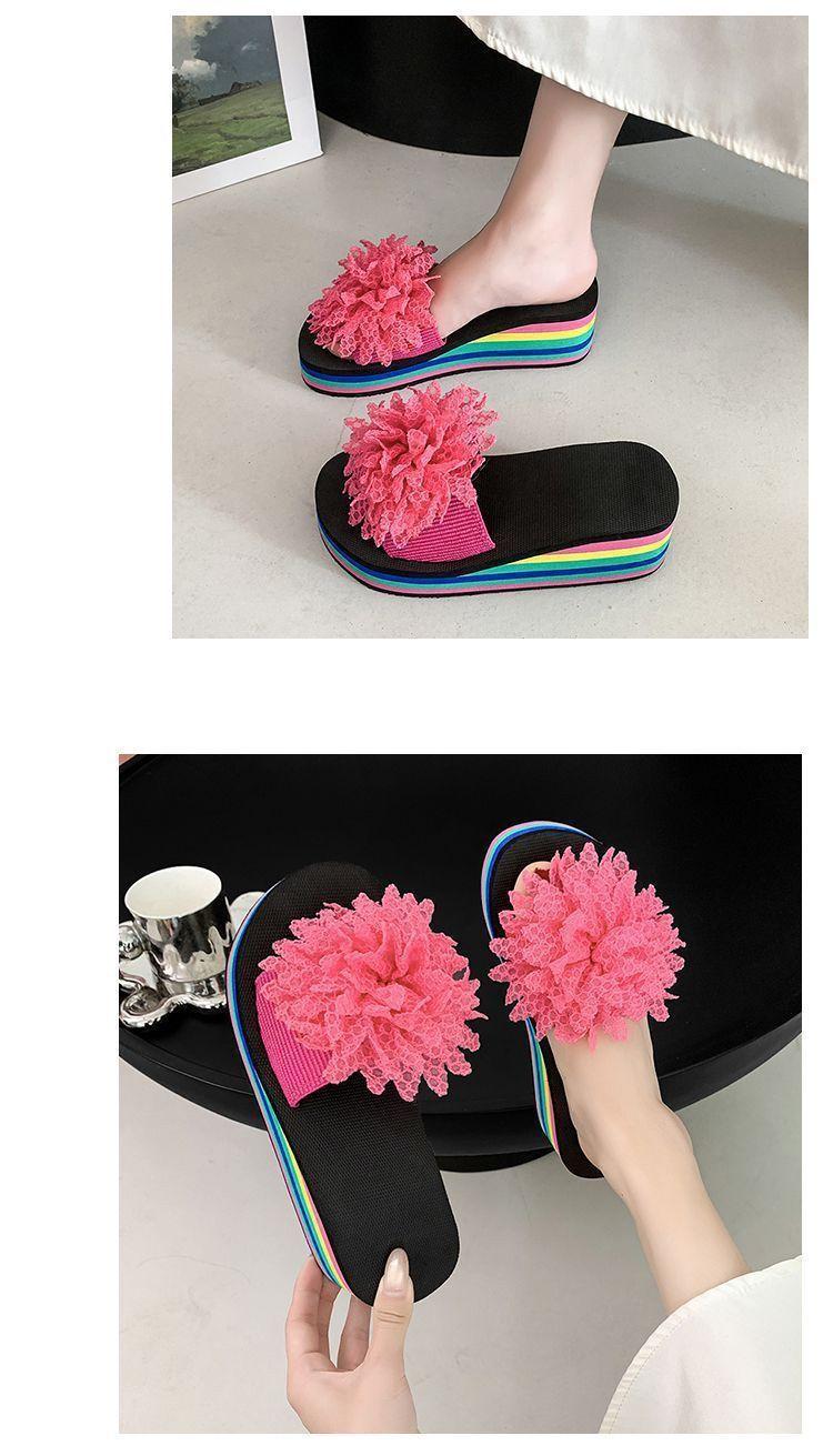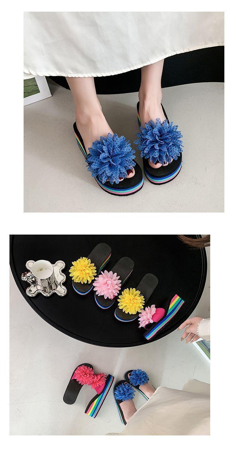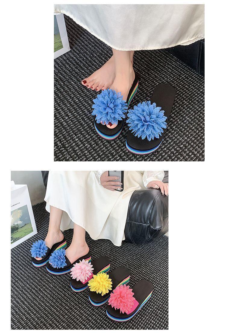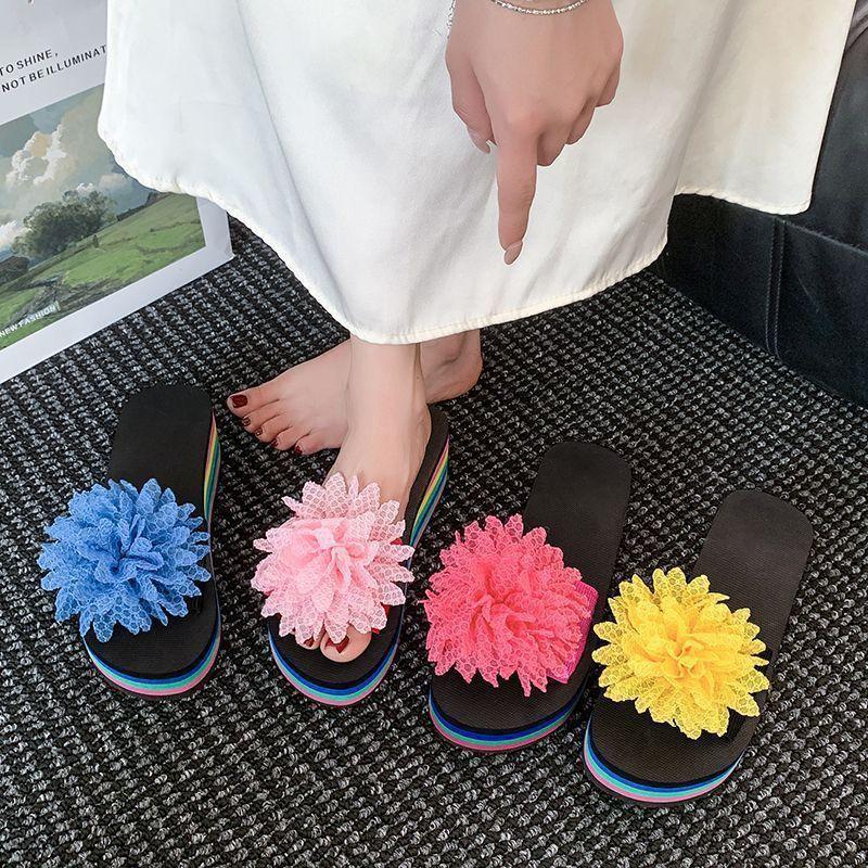Verano 2025 Nuevo Estilo Caliente Dulce Zapatillas de Flores de Alto Valor Zapatos de Moda para Mujer Antideslizantes Ligeras Sandalias de Playa