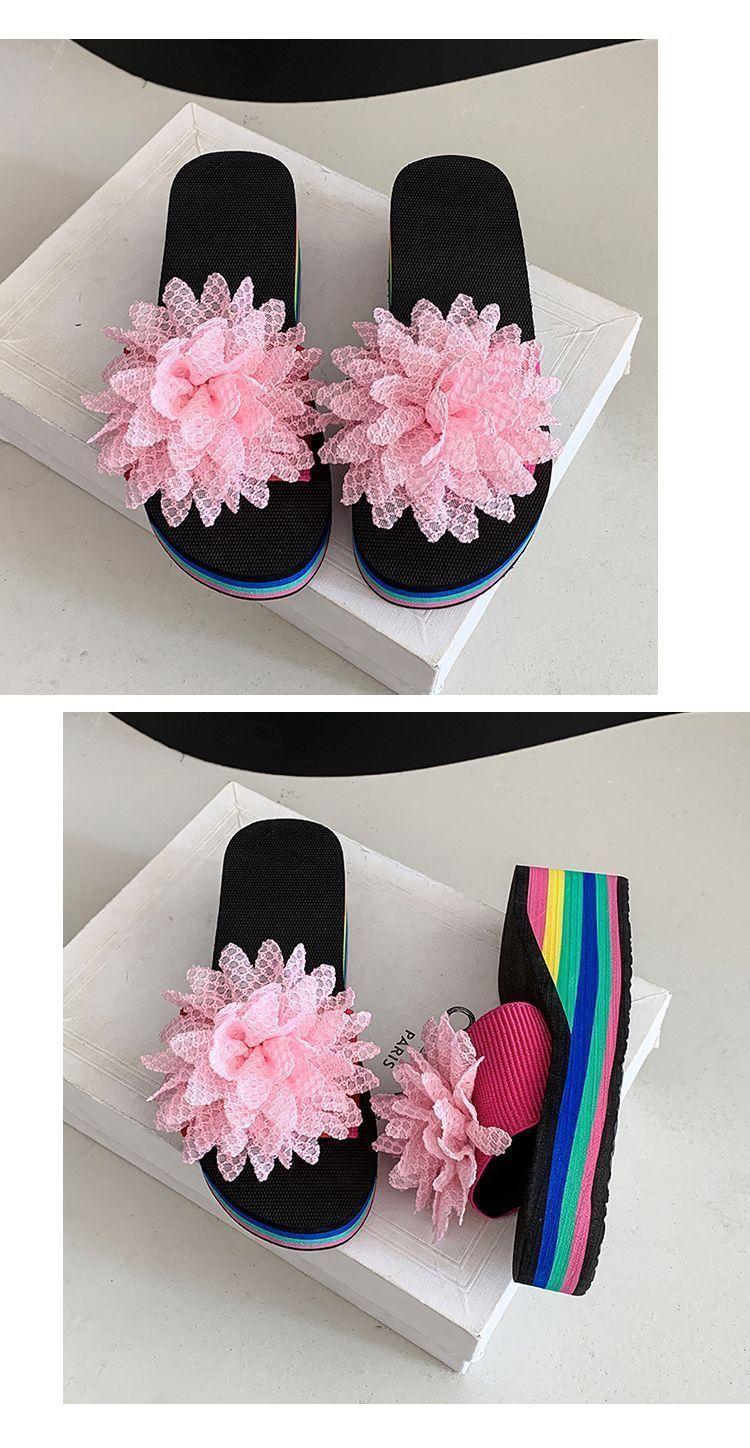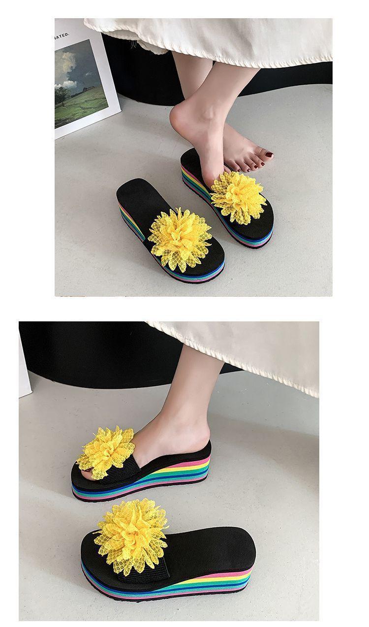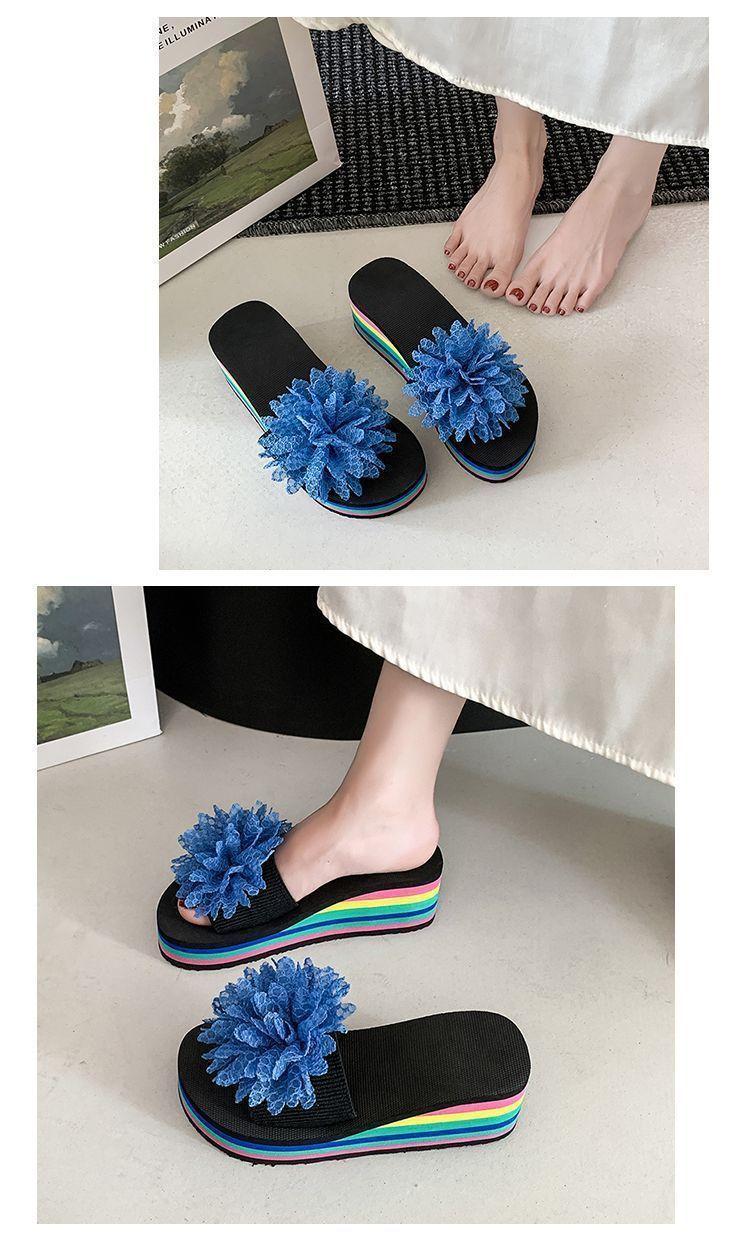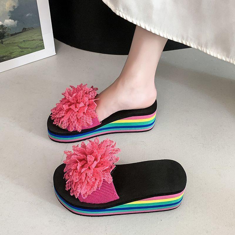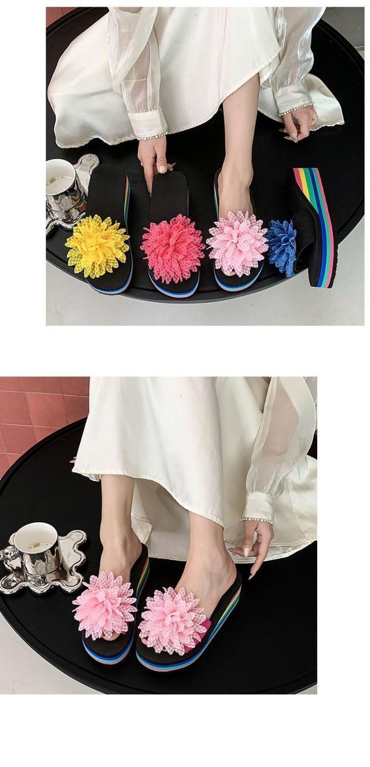 Verano 2025 Nuevo Estilo Caliente Dulce Zapatillas de Flores de Alto Valor Zapatos de Moda para Mujer Antideslizantes Ligeras Sandalias de Playa