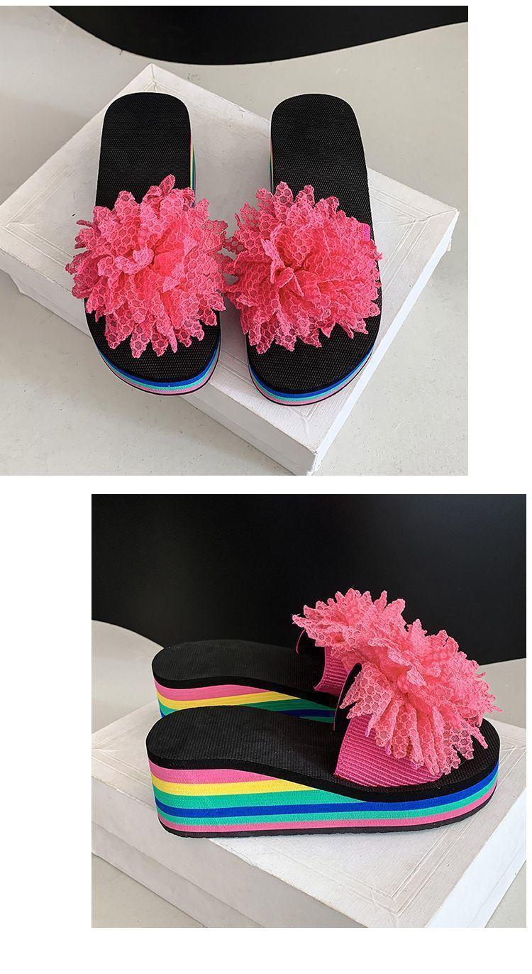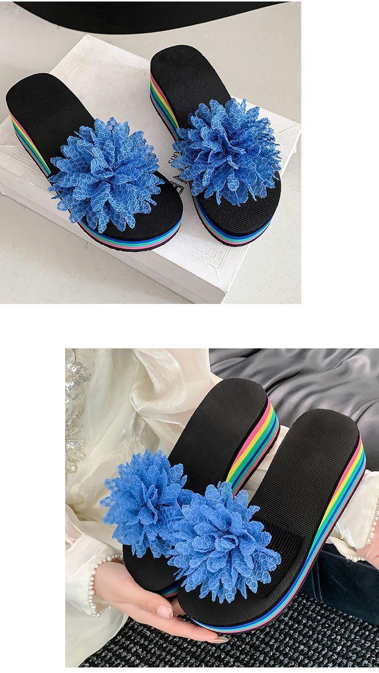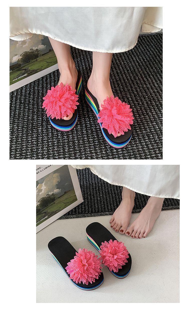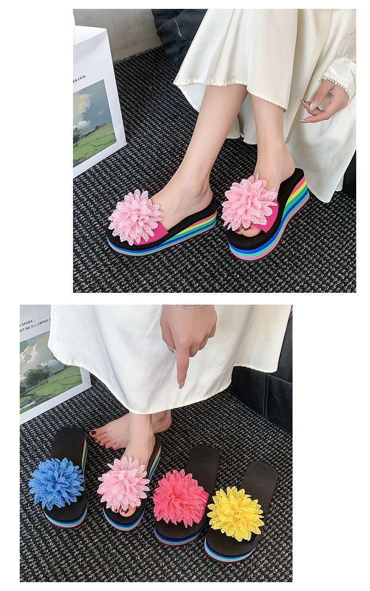 Verano 2025 Nuevo Estilo Caliente Dulce Zapatillas de Flores de Alto Valor Zapatos de Moda para Mujer Antideslizantes Ligeras Sandalias de Playa