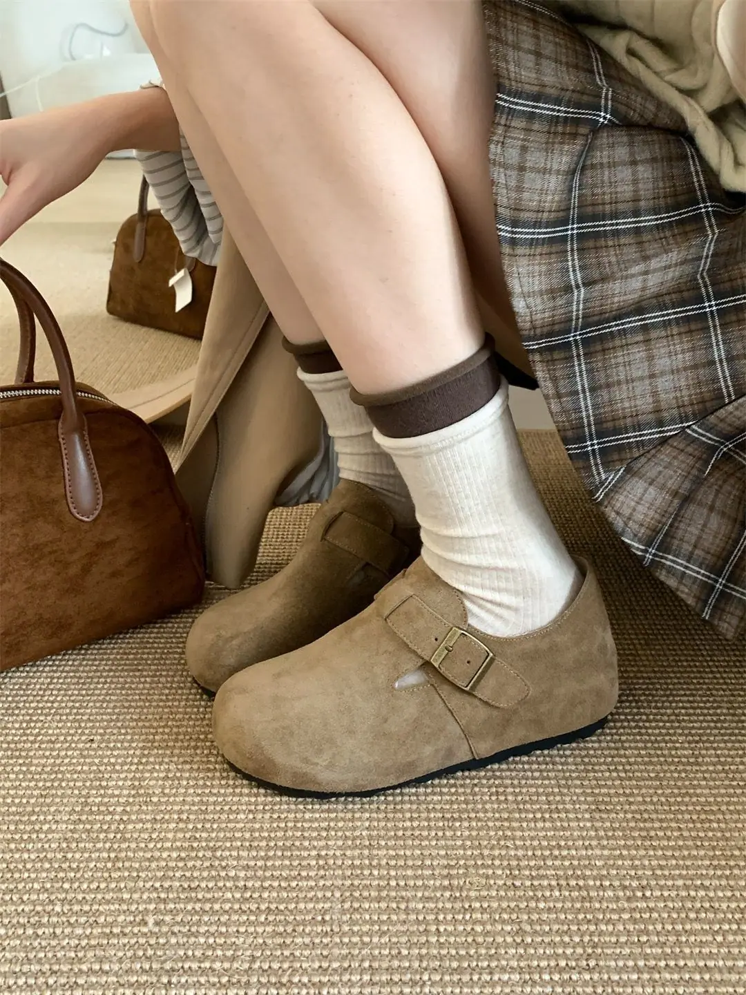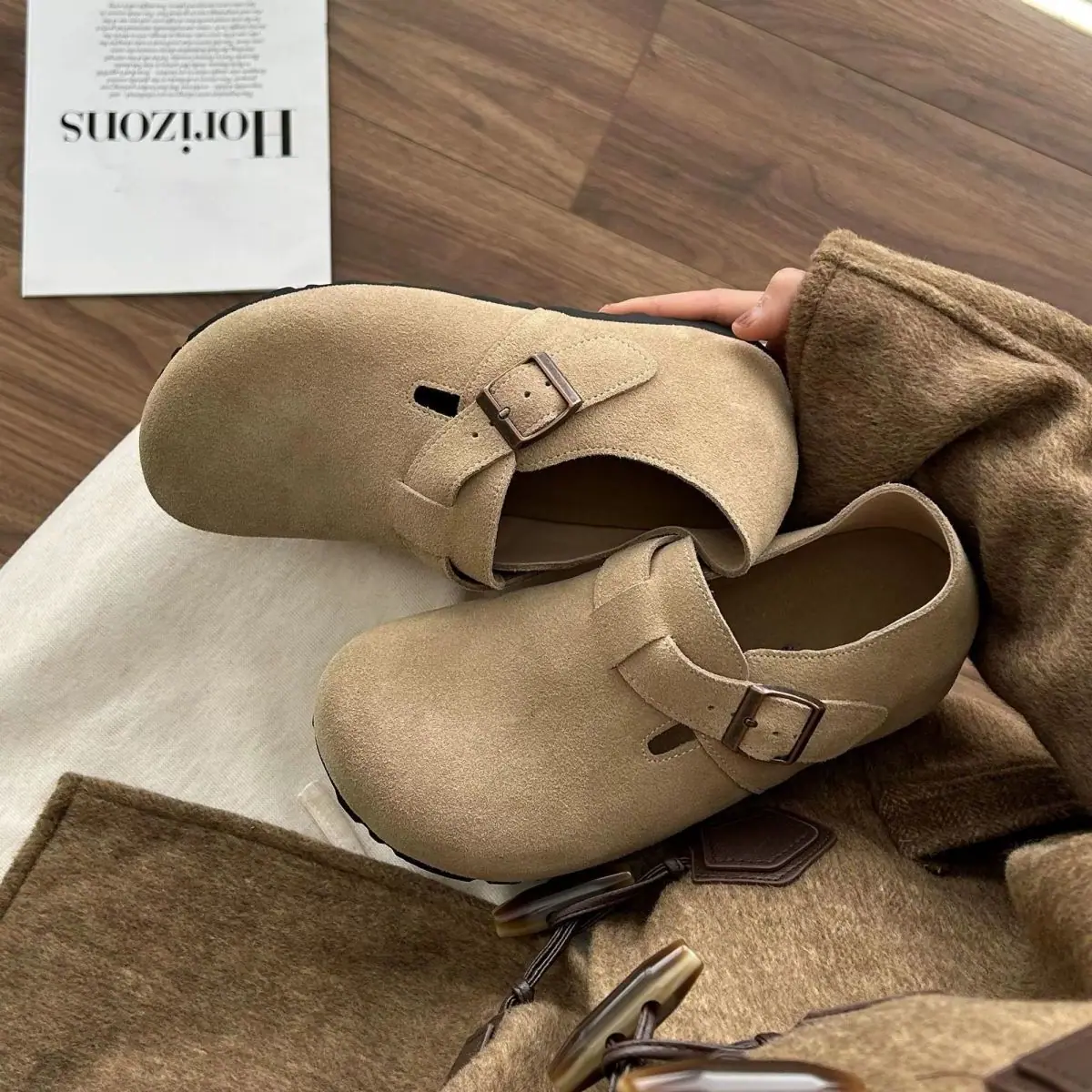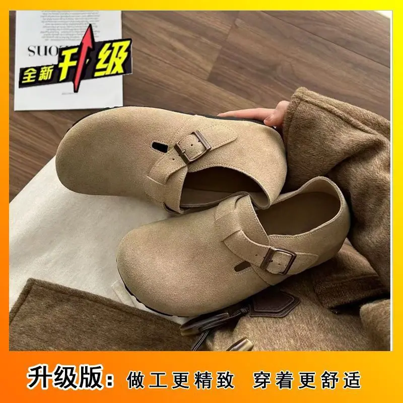 Zapatos individuales Retro Birken sin cordones Mocasines Bean 2025 Otoño Nuevo Suela Gruesa Aumento de Altura 5cm Birkenstock Mujer