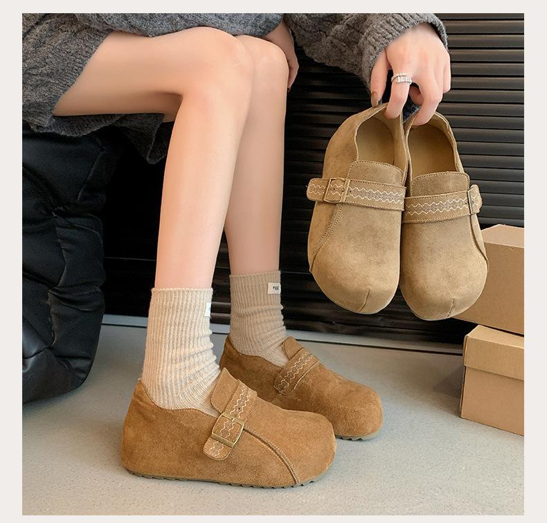 Otoño 2025 Nuevo Retro Plataforma Birkenstock Casual para Mujer Suela Suave Nicho Punta Redonda Cordones Versátiles Zapatos Mule