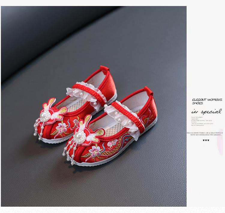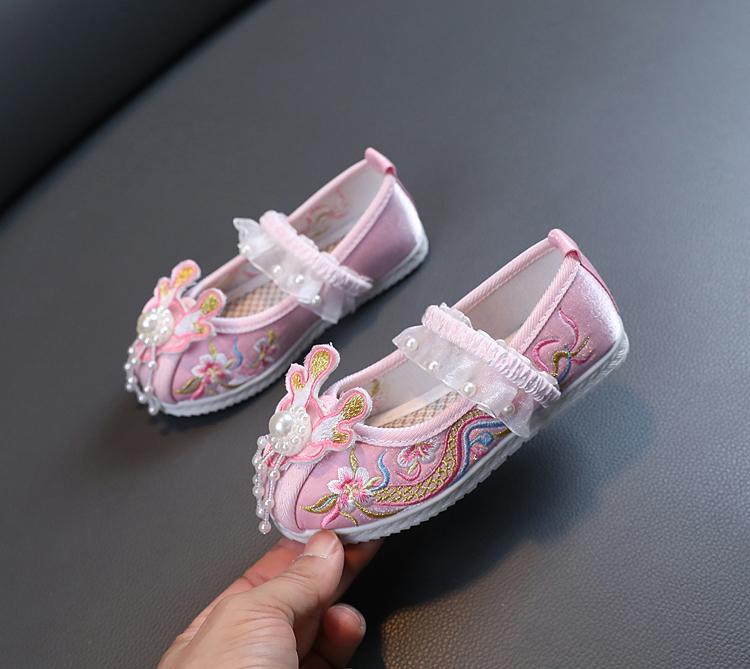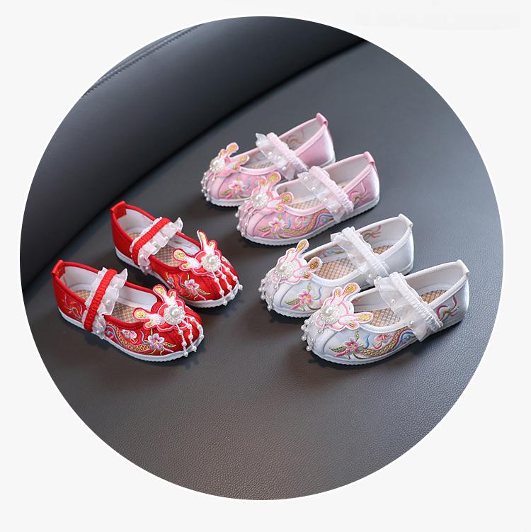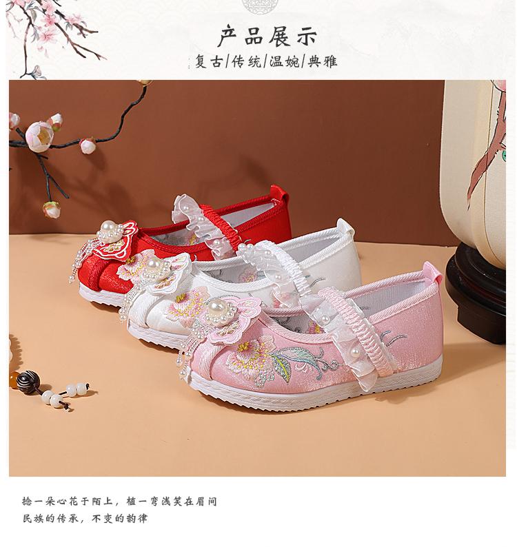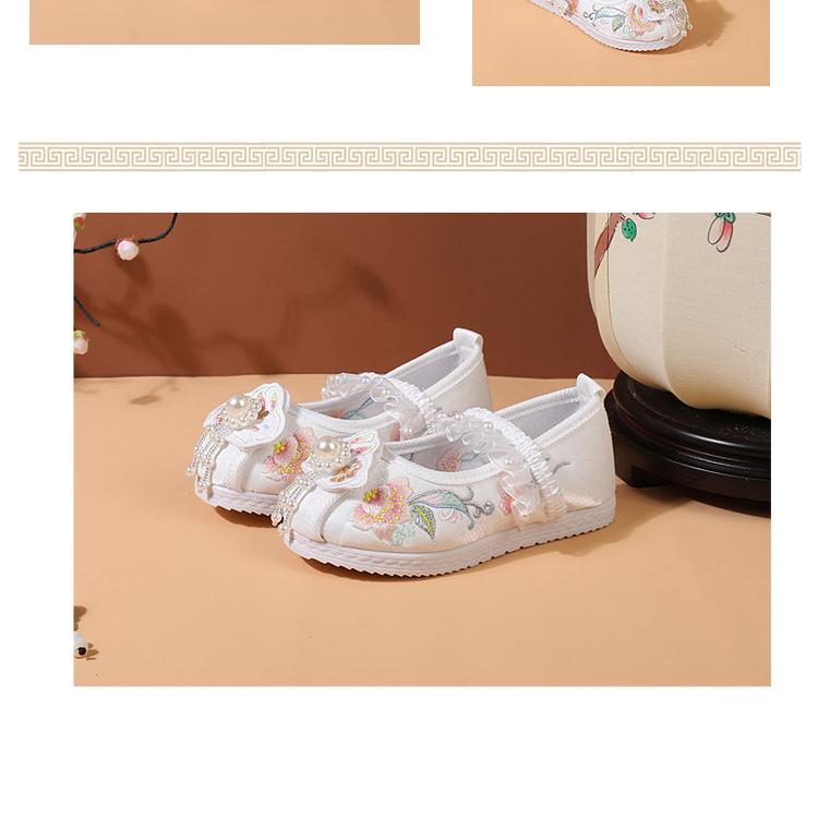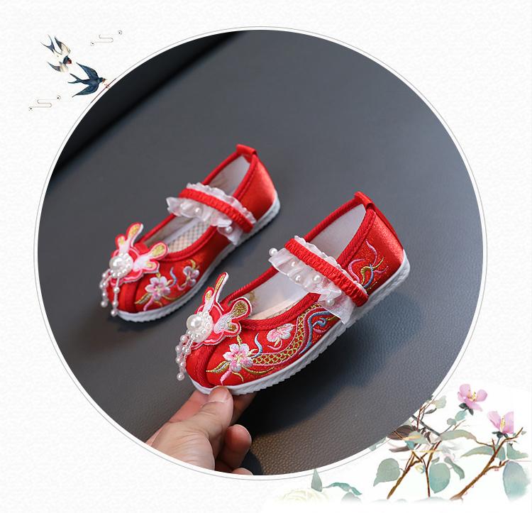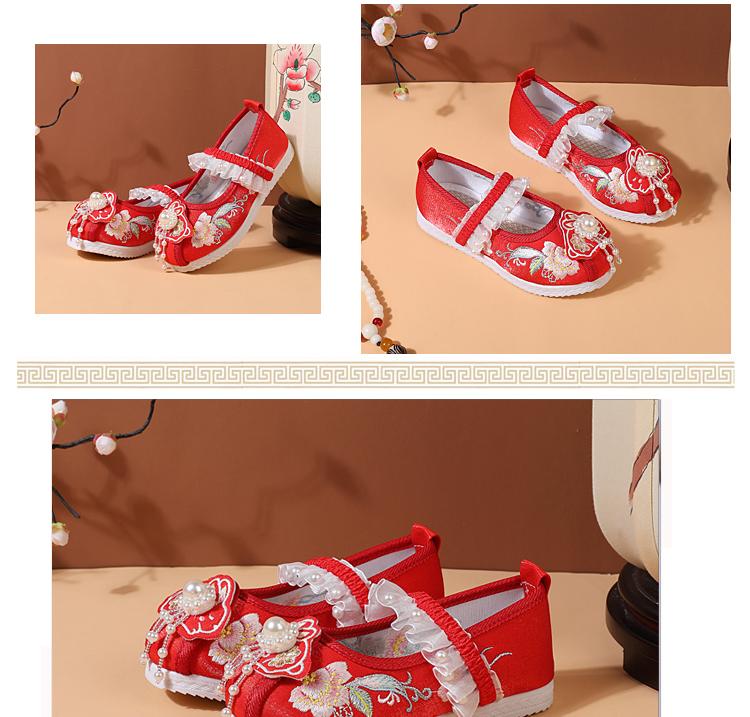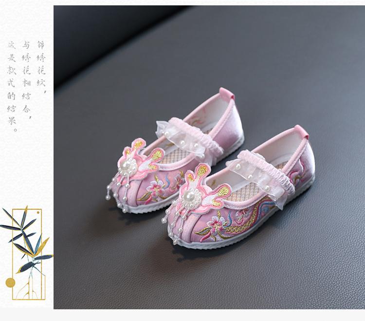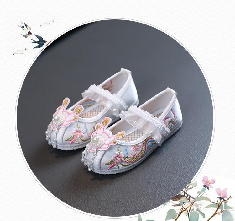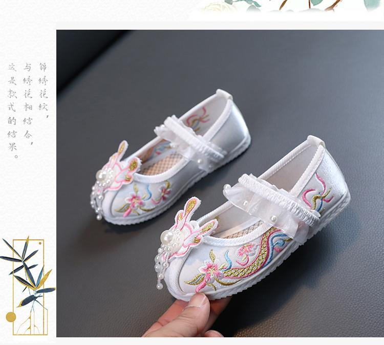 Zapatos Bordados para Niñas de Primavera y Otoño Estilo Antiguo Zapatos Hanfu para Niños Disfraz Zapatos de Tela Hechos a Mano del Viejo Pekín Estilo Chino Zapatos para Falda Cara de Caballo