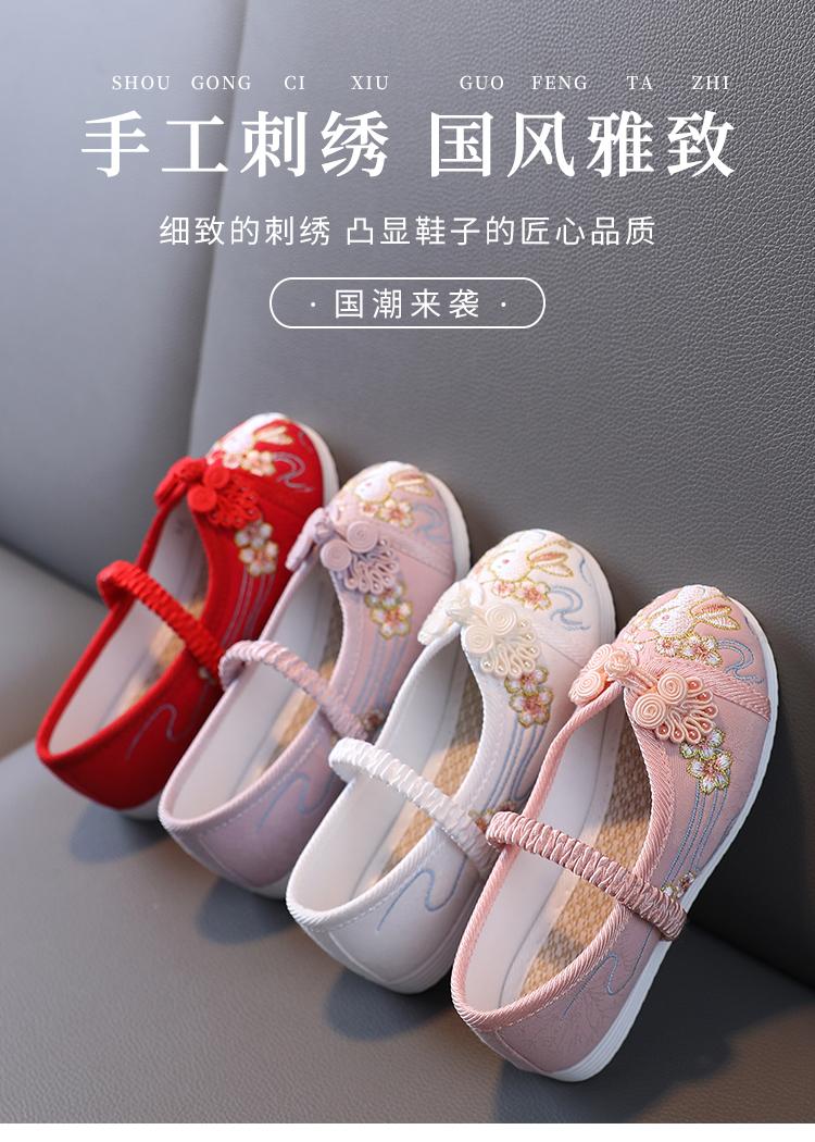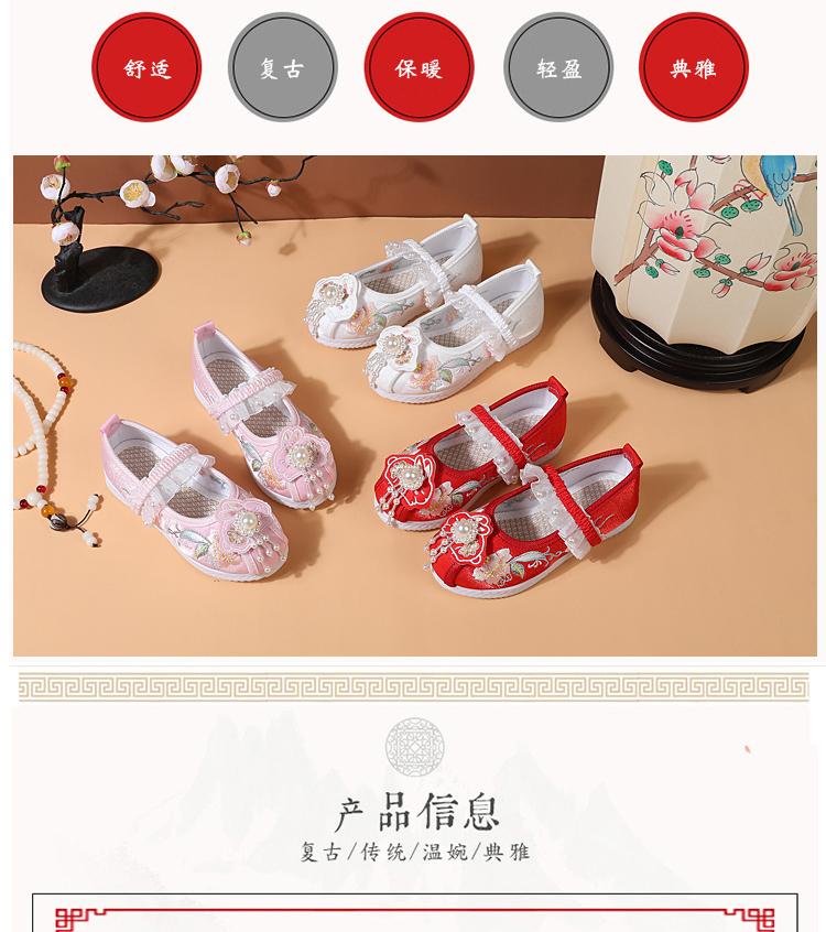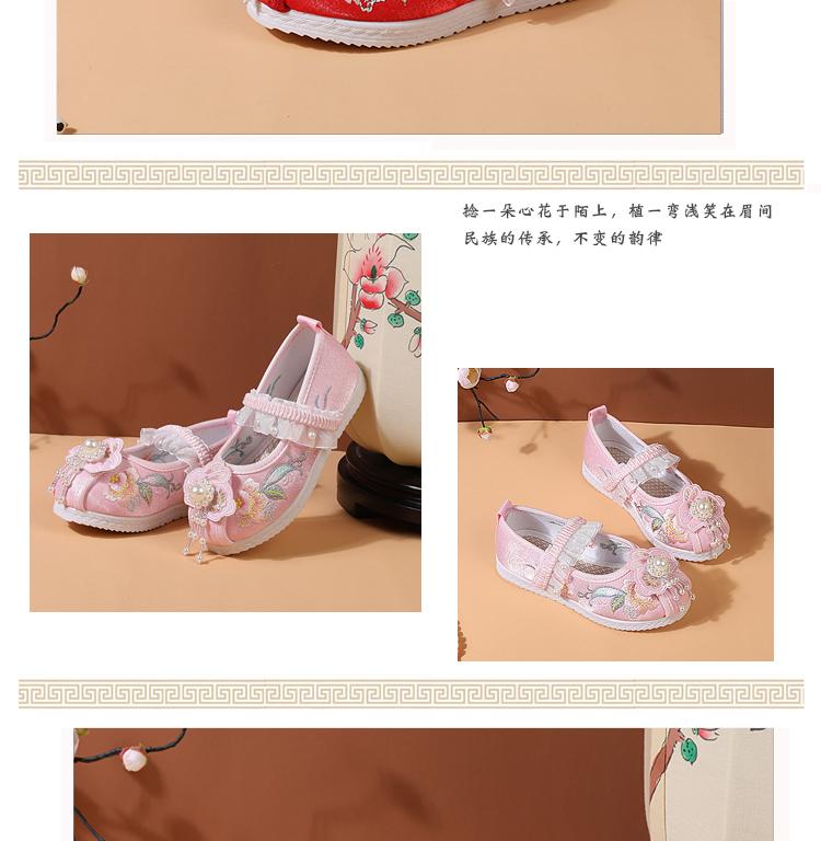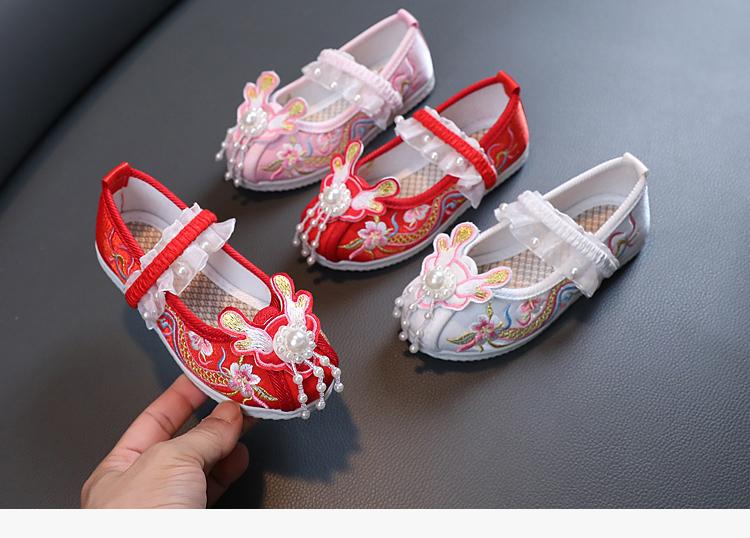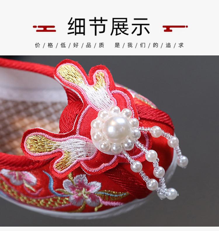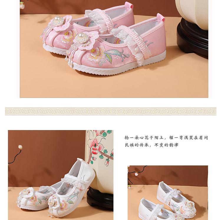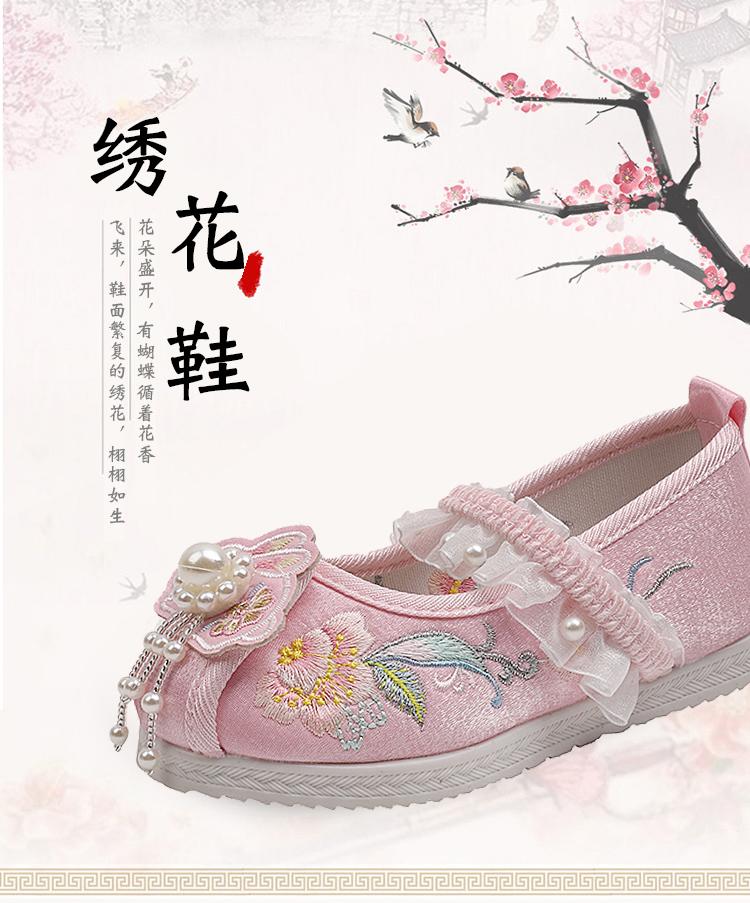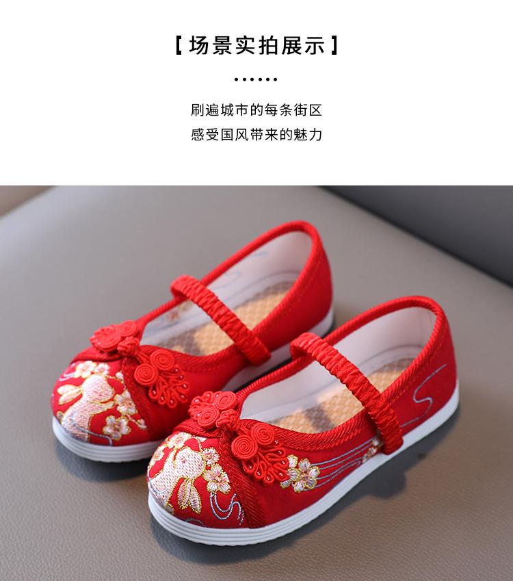 Zapatos Bordados para Niñas de Primavera y Otoño Estilo Antiguo Zapatos Hanfu para Niños Disfraz Zapatos de Tela Hechos a Mano del Viejo Pekín Estilo Chino Zapatos para Falda Cara de Caballo