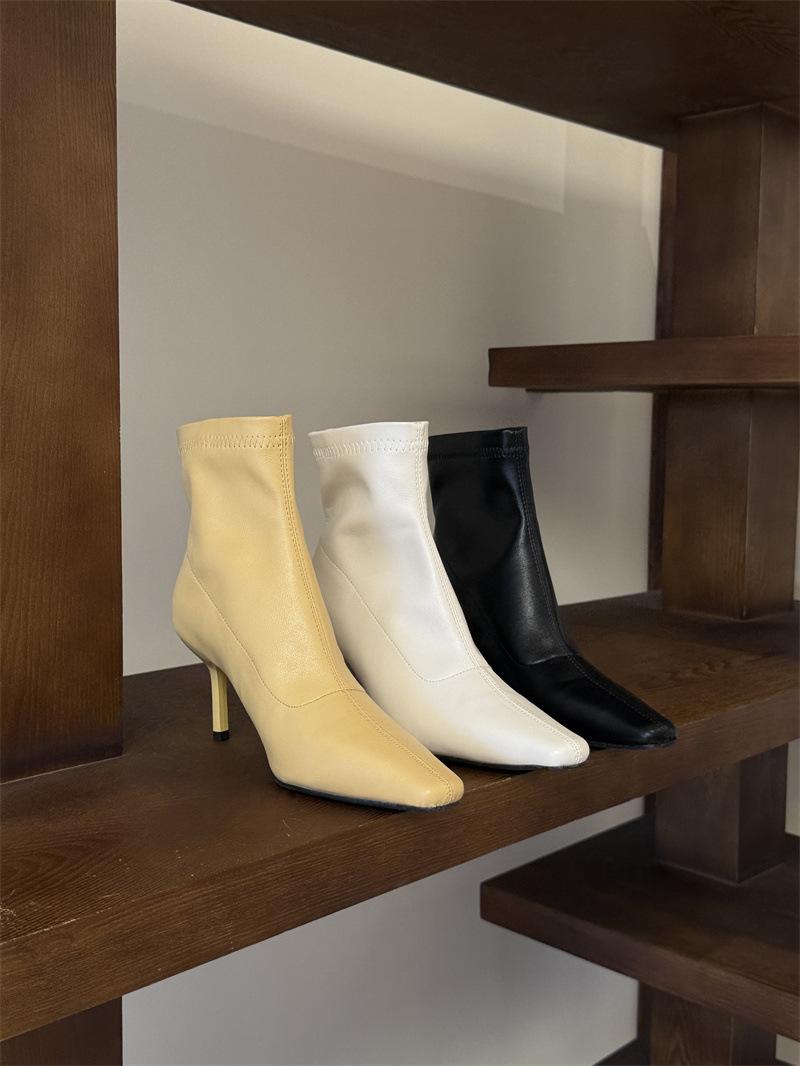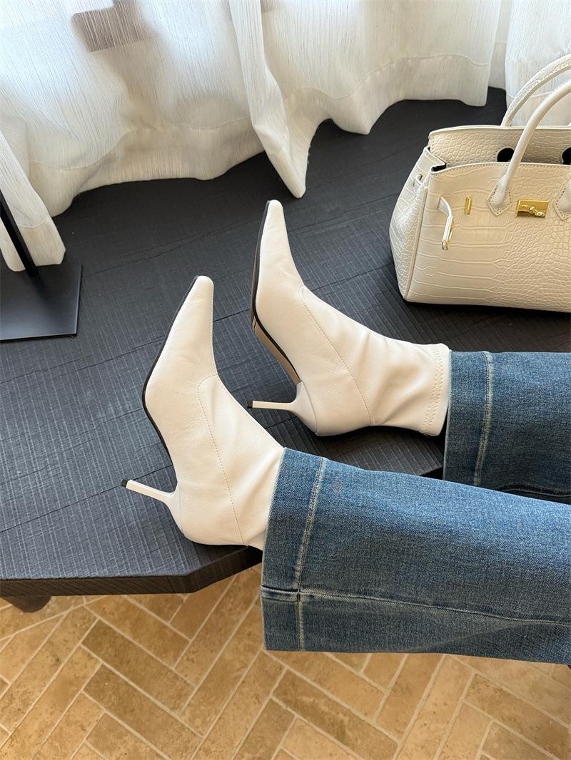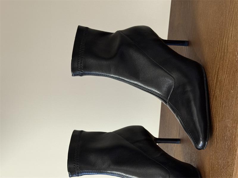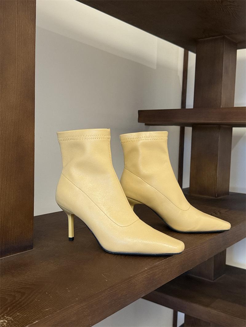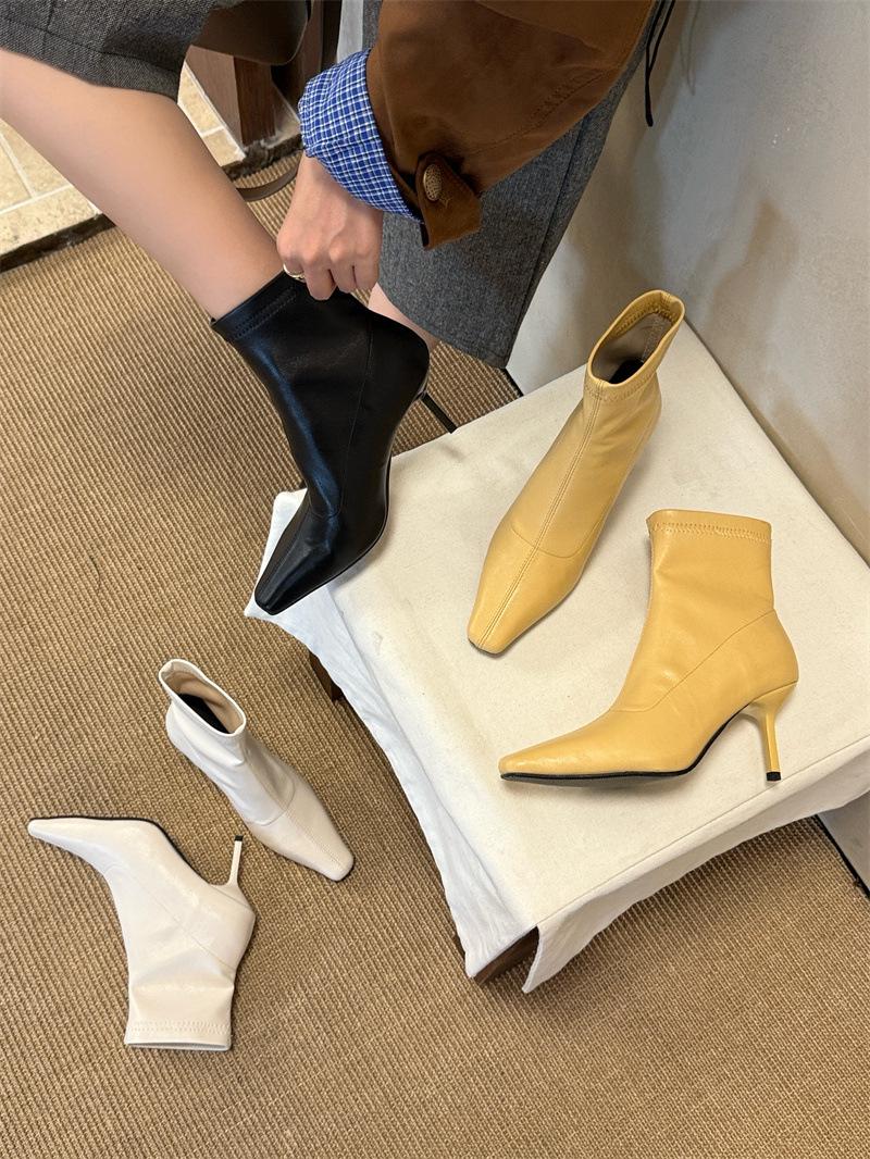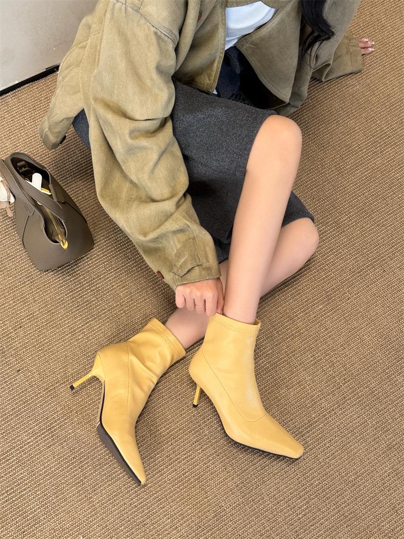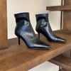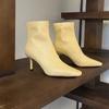 2025 Otoño/Invierno Nuevos Botines de Punta Europea y Americana Adelgazantes Botas de Moda para Mujer Versátiles Tacón Alto Tacón de Aguja Botas Elásticas Botines para Mujer