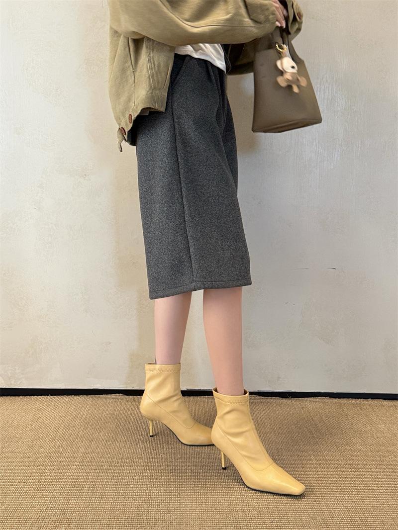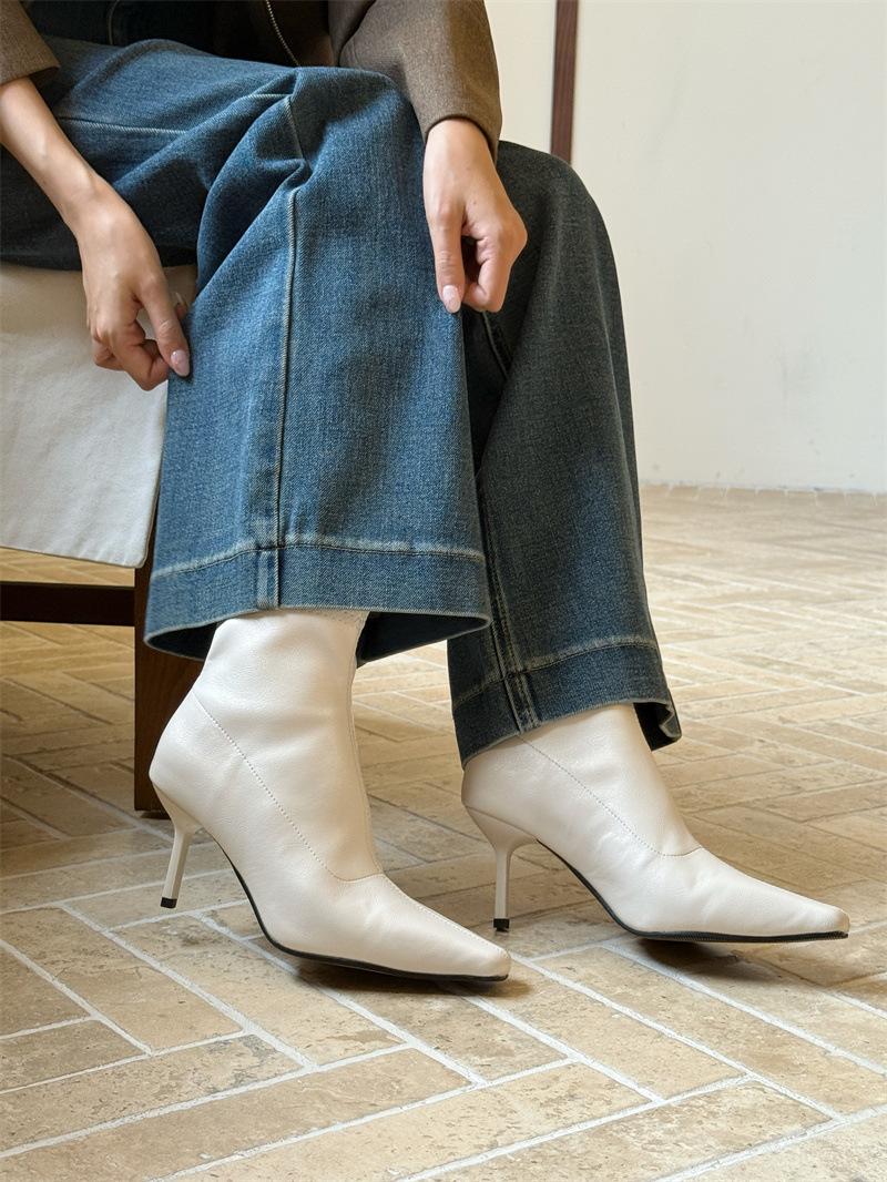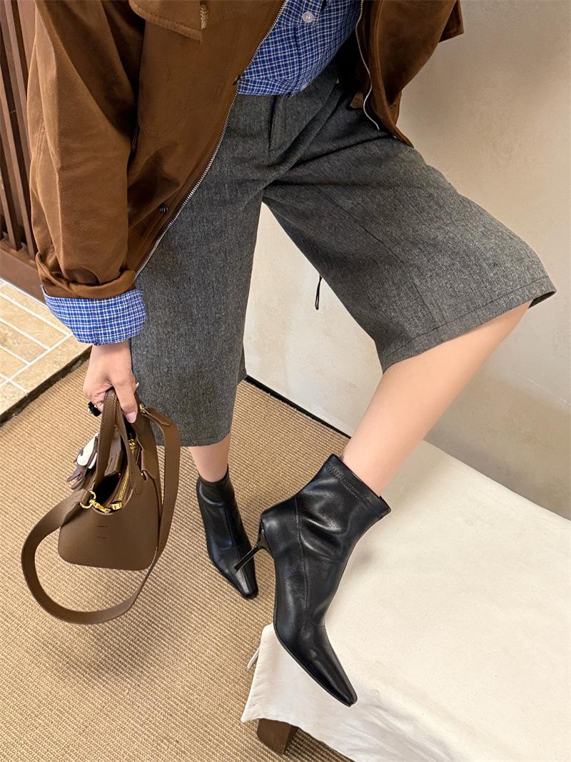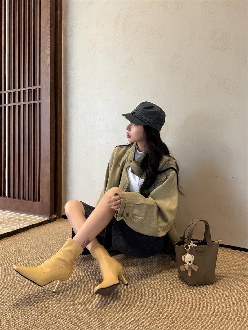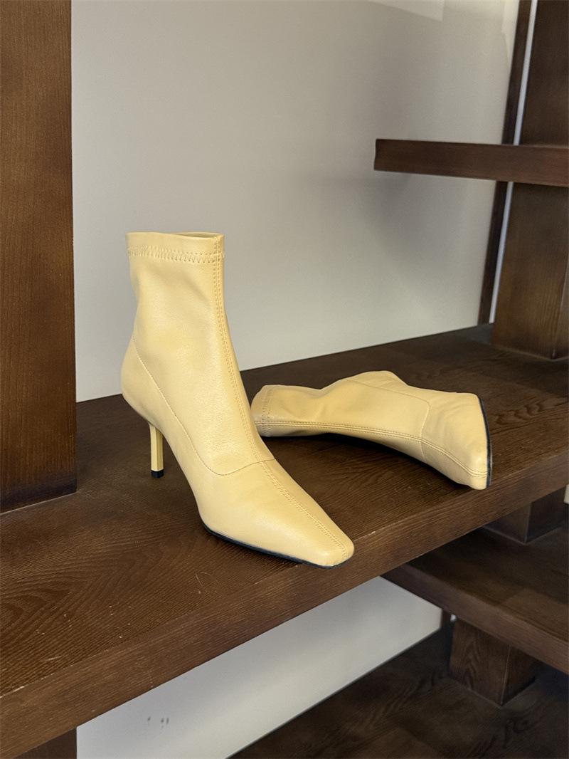 2025 Otoño/Invierno Nuevos Botines de Punta Europea y Americana Adelgazantes Botas de Moda para Mujer Versátiles Tacón Alto Tacón de Aguja Botas Elásticas Botines para Mujer