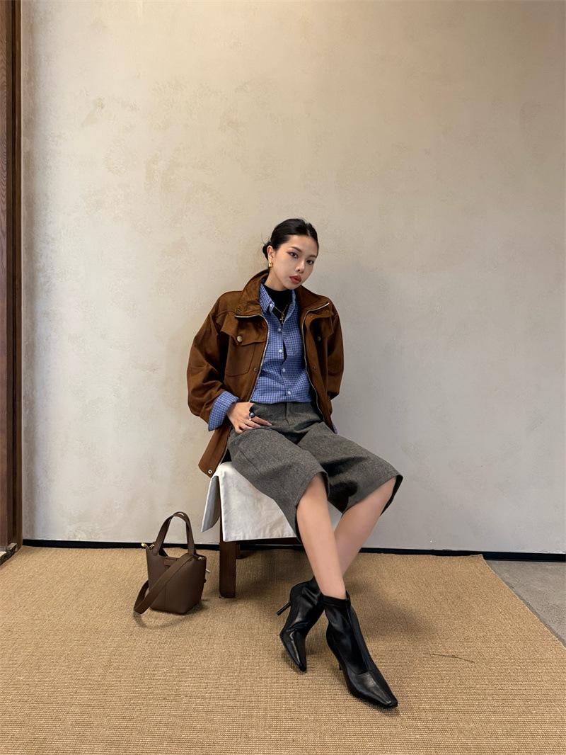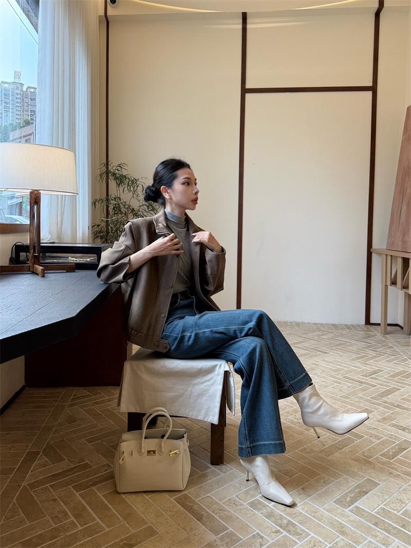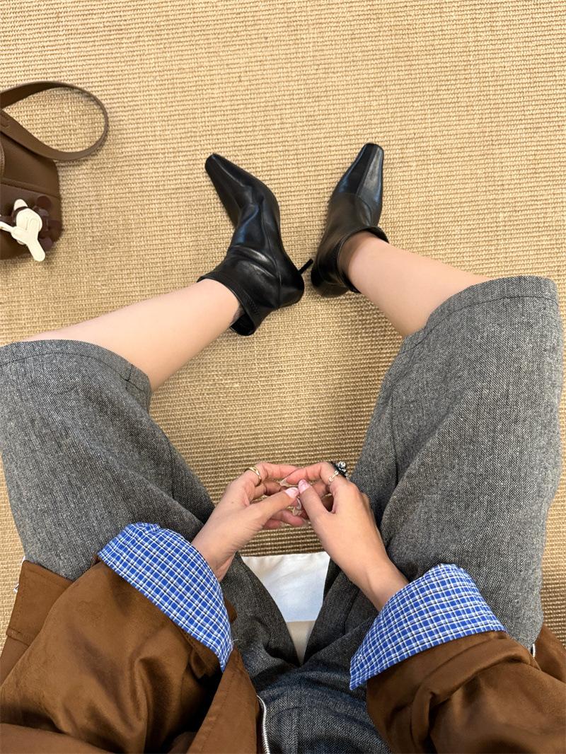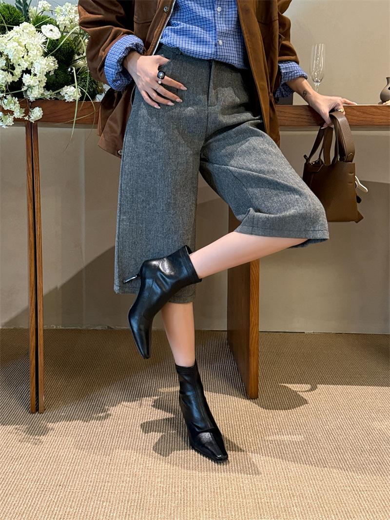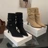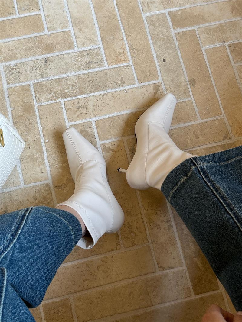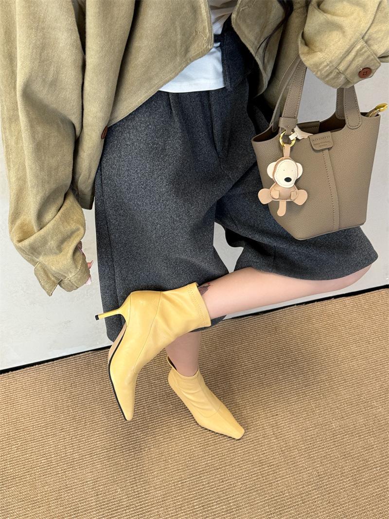 2025 Otoño/Invierno Nuevos Botines de Punta Europea y Americana Adelgazantes Botas de Moda para Mujer Versátiles Tacón Alto Tacón de Aguja Botas Elásticas Botines para Mujer