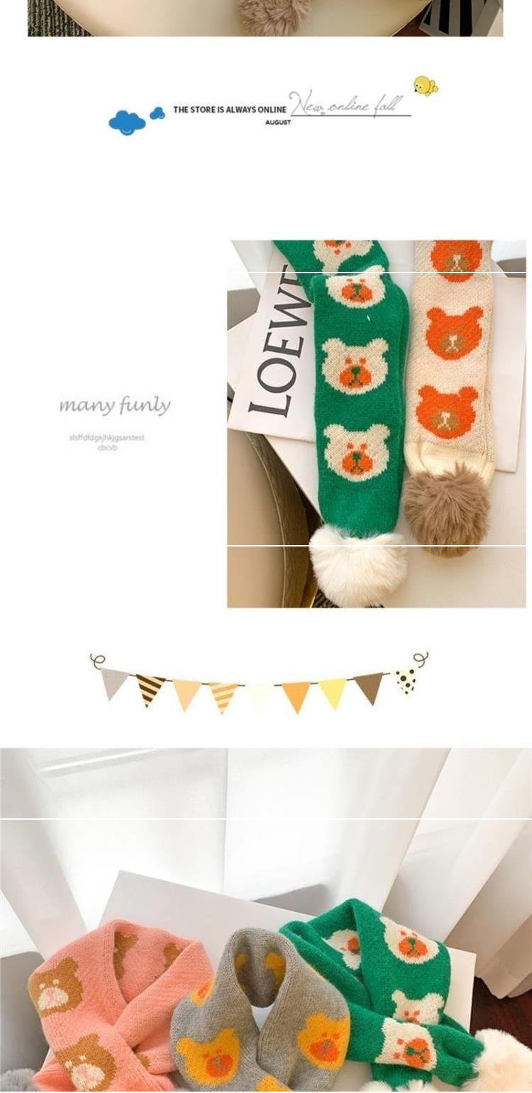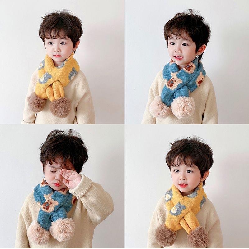 Bufanda para Niños Invierno Estilo Coreano Lindo Oso Cruz Moda Bufanda para Bebé Nuevo Estilo Moda Dibujos Animados Calentador de Cuello Cálido