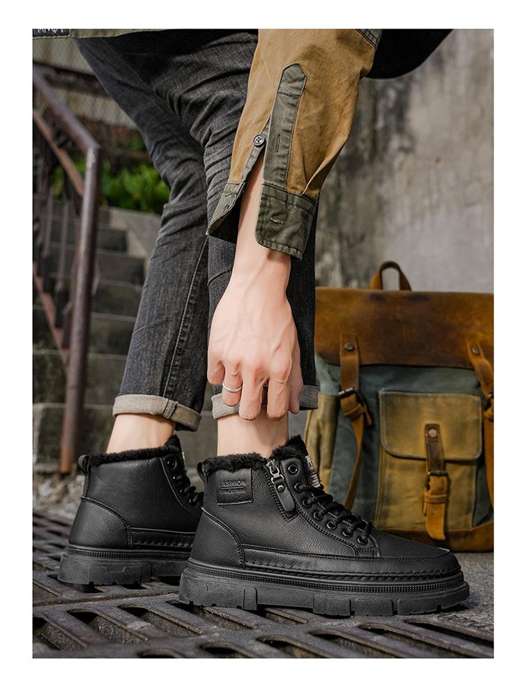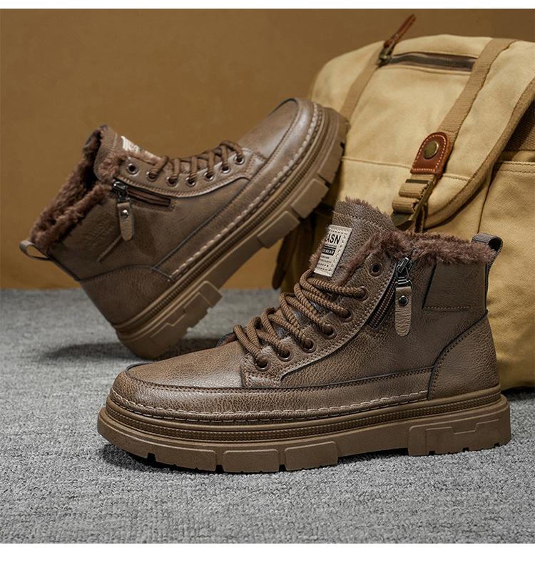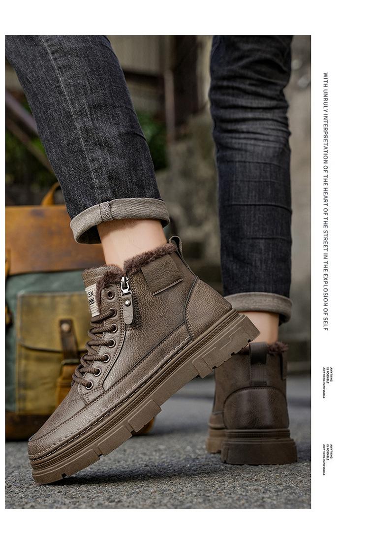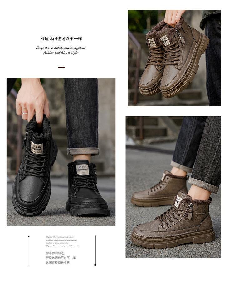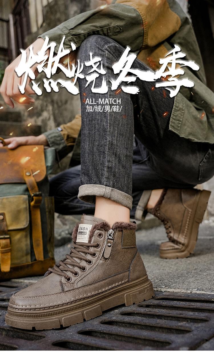 Invierno más terciopelo botines Martin de caña alta zapatos de hombre zapatos de cuero nuevos zapatos de trabajo antideslizantes resistentes al desgaste botines cortos cálidos engrosados zapatos de algodón