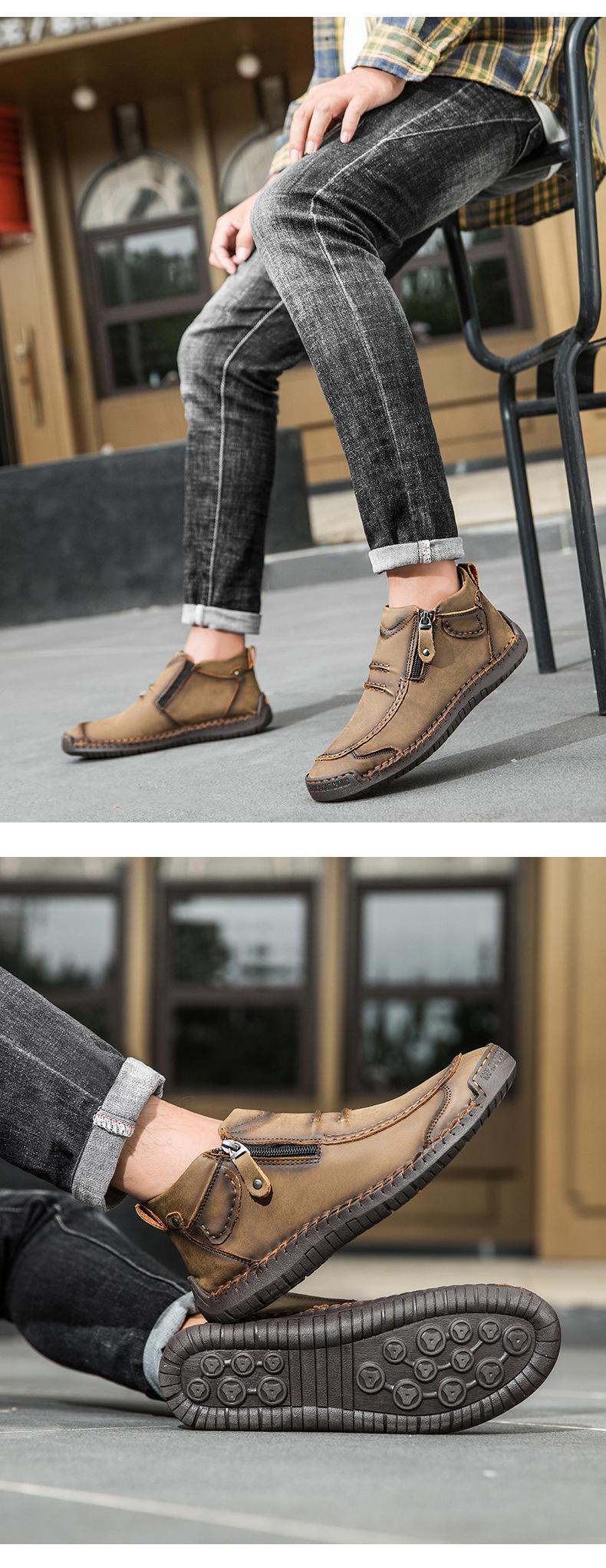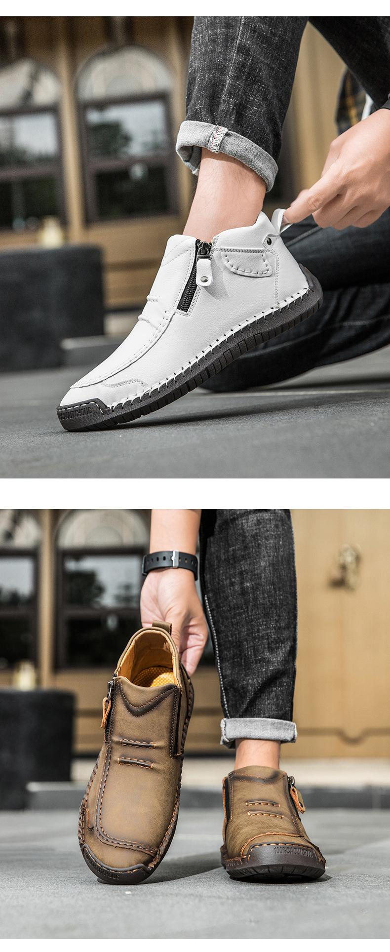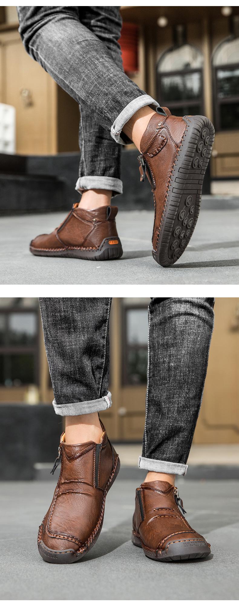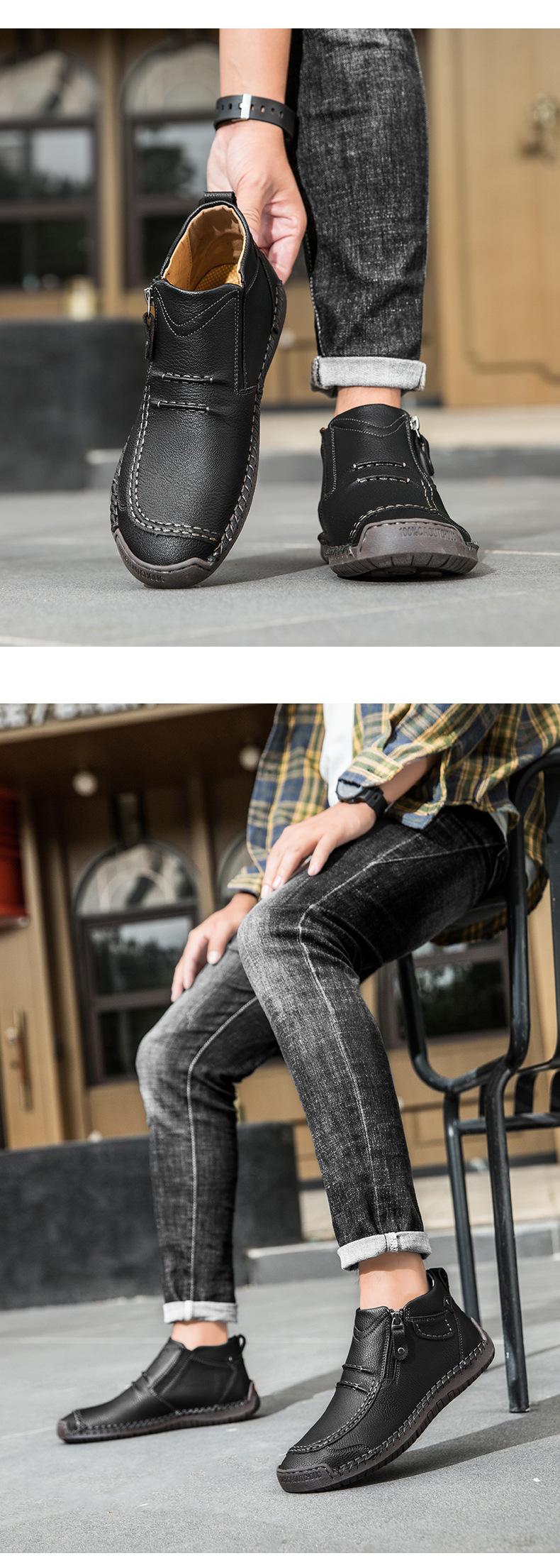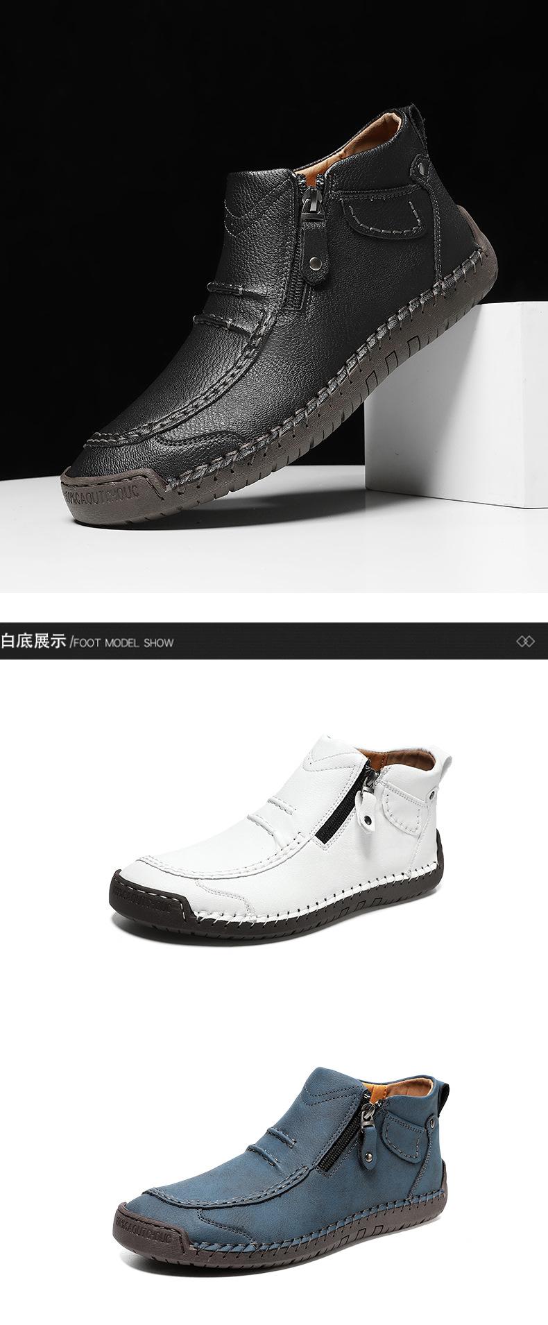 Zapatos de hombre de talla grande más vendidos transfronterizos zapatos casuales para exteriores zapatos slip-on de suela plana zapatos cosidos a mano botas Martin con cremallera botas cortas