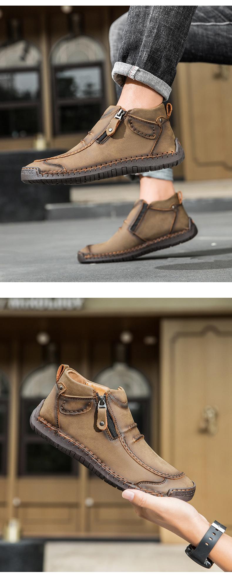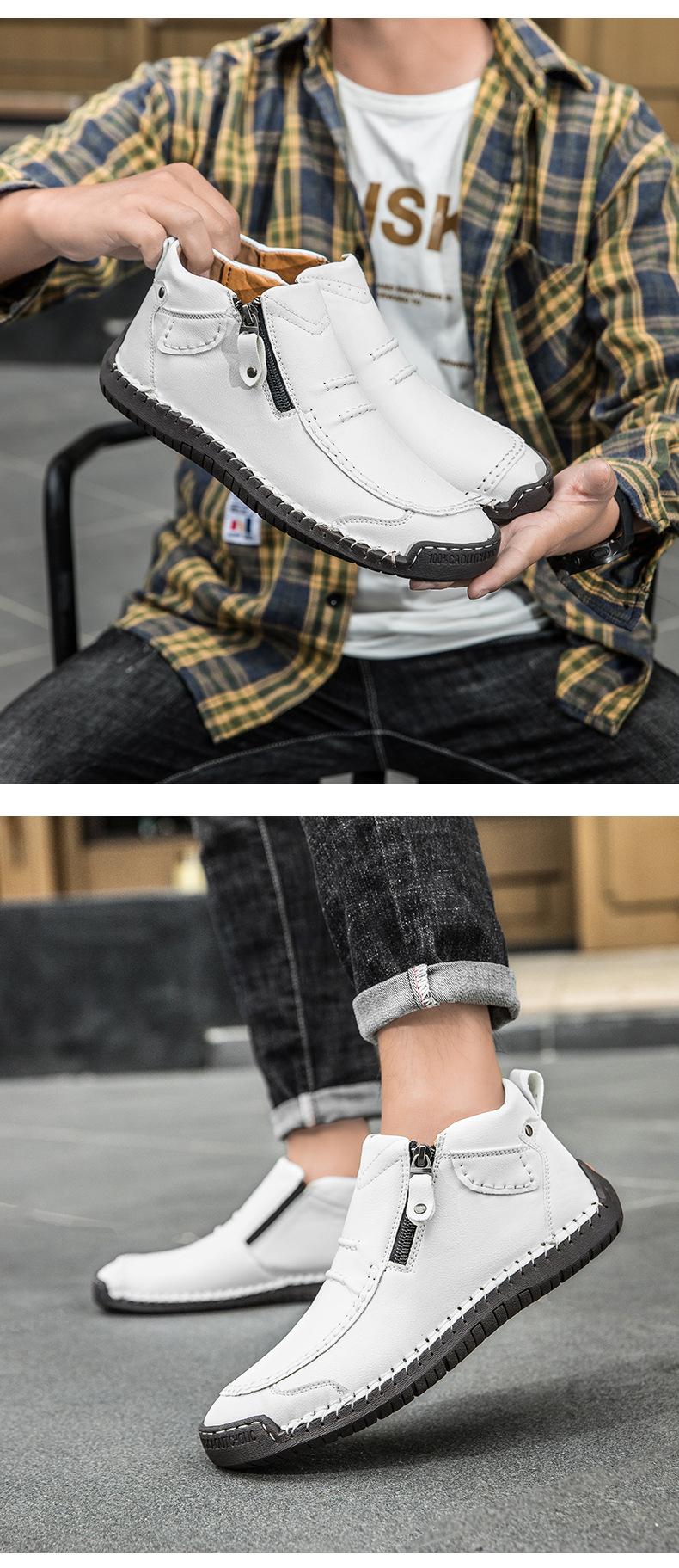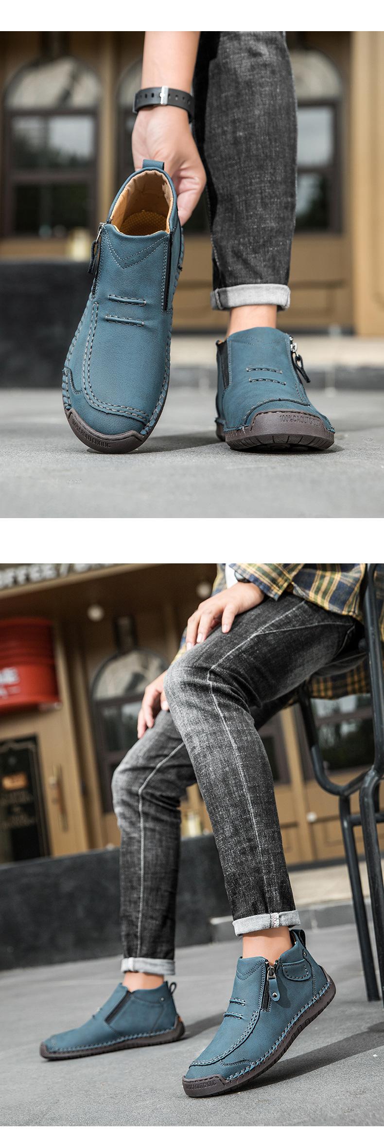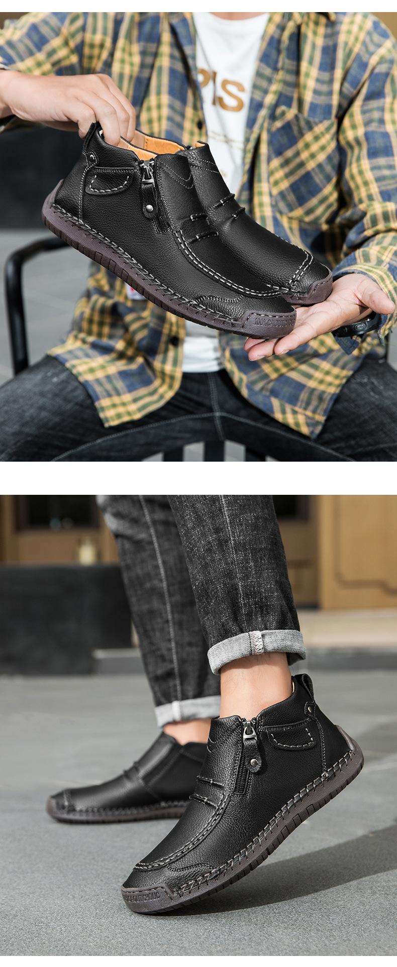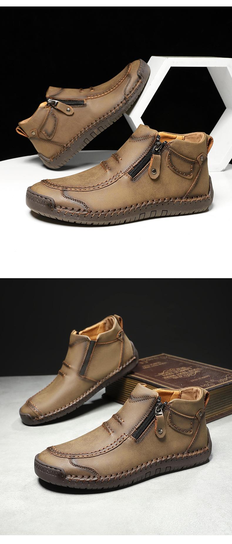 Zapatos de hombre de talla grande más vendidos transfronterizos zapatos casuales para exteriores zapatos slip-on de suela plana zapatos cosidos a mano botas Martin con cremallera botas cortas