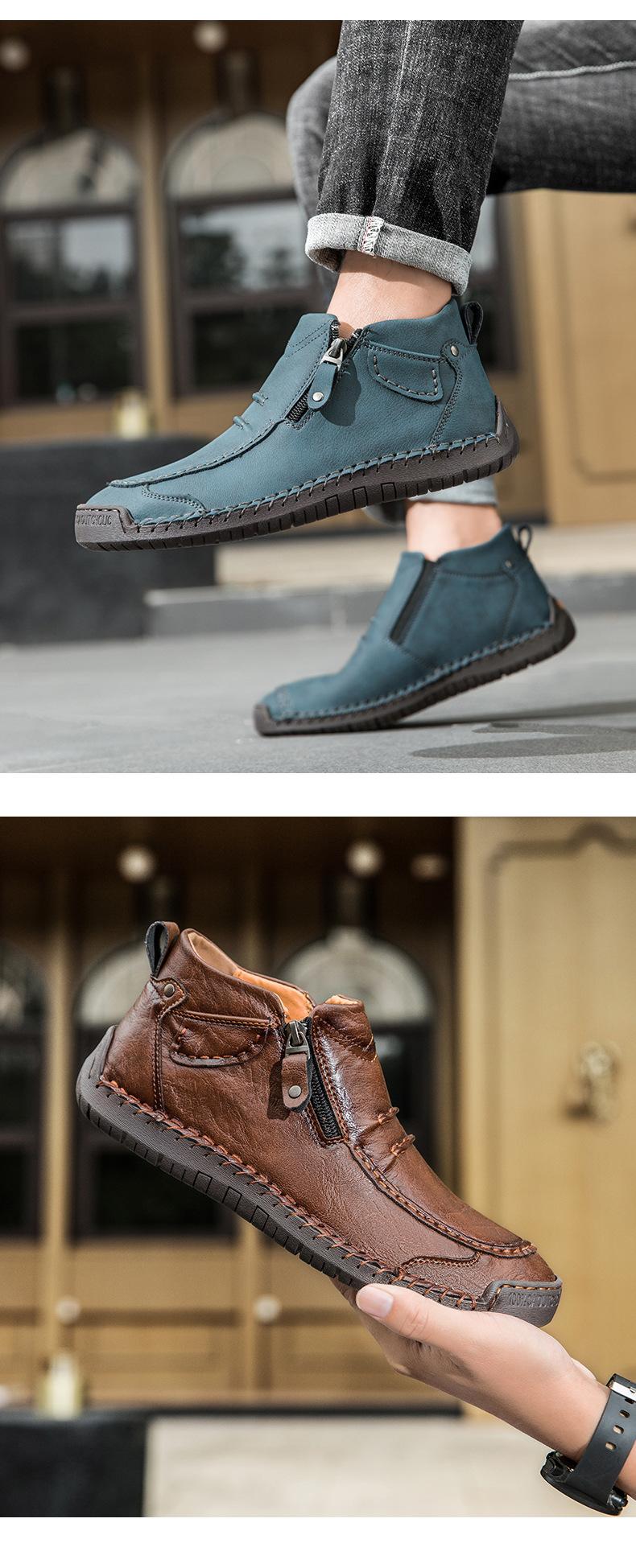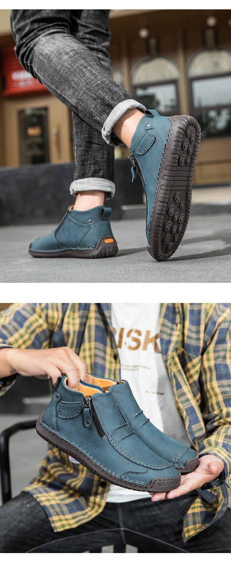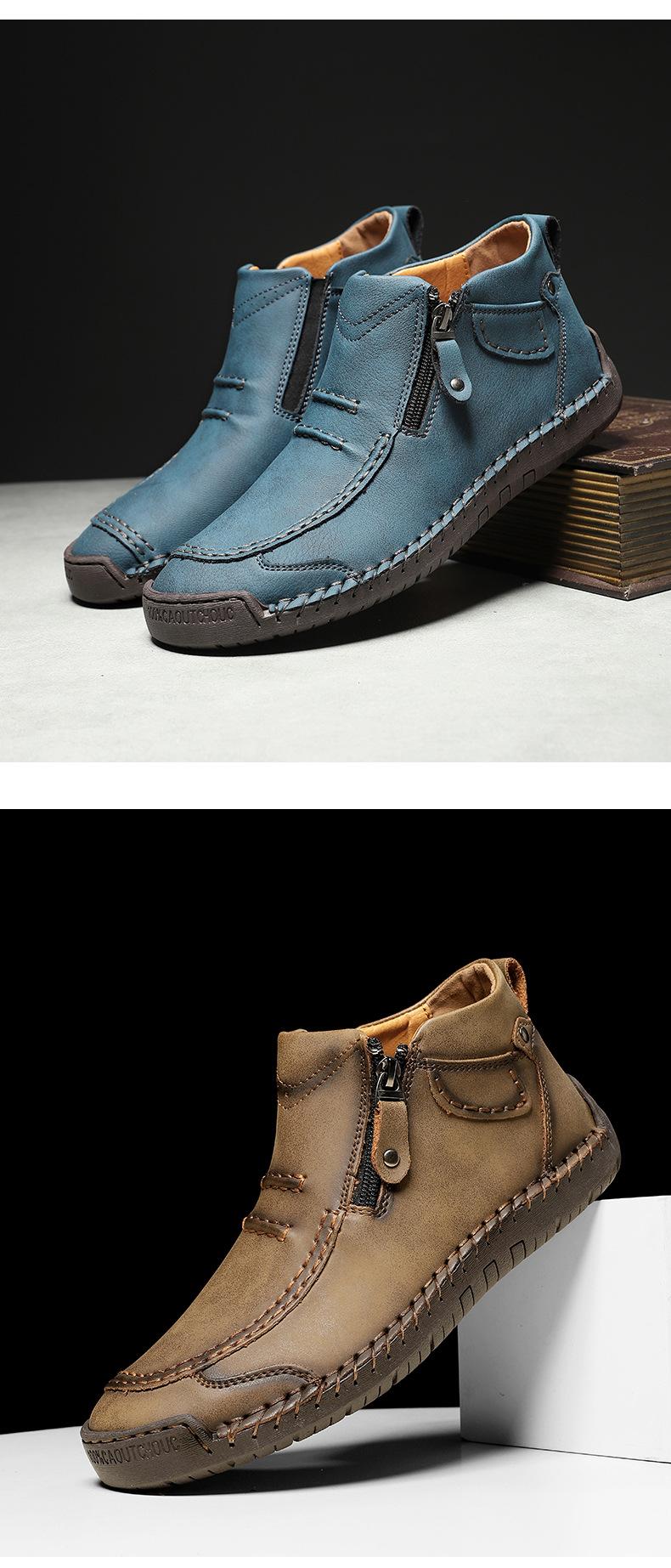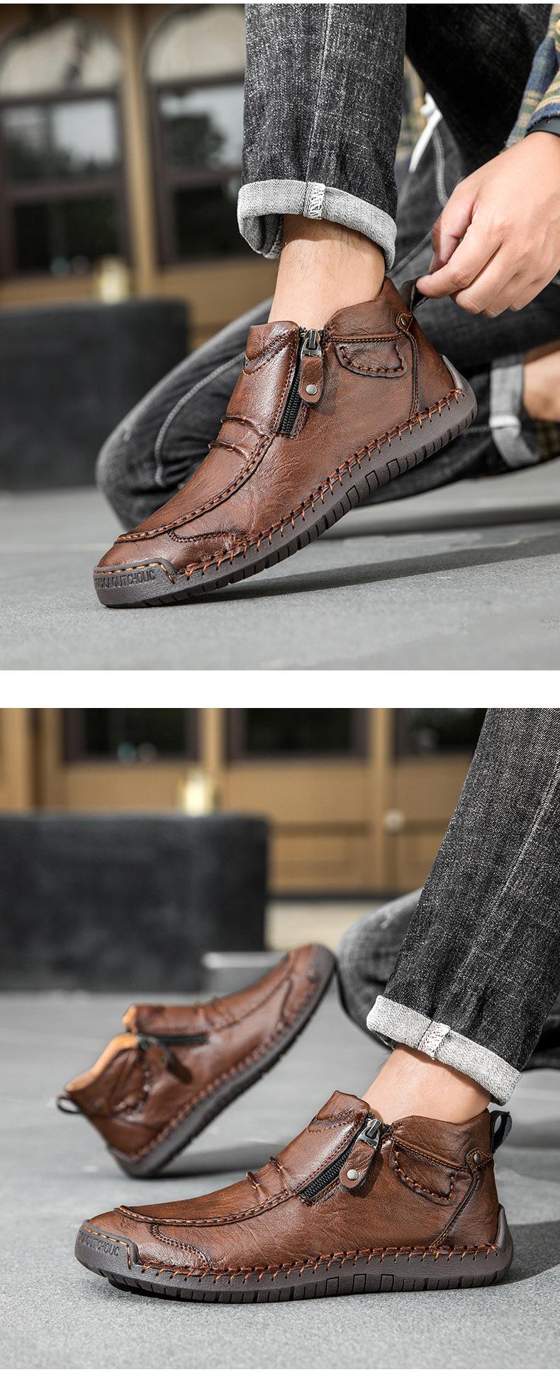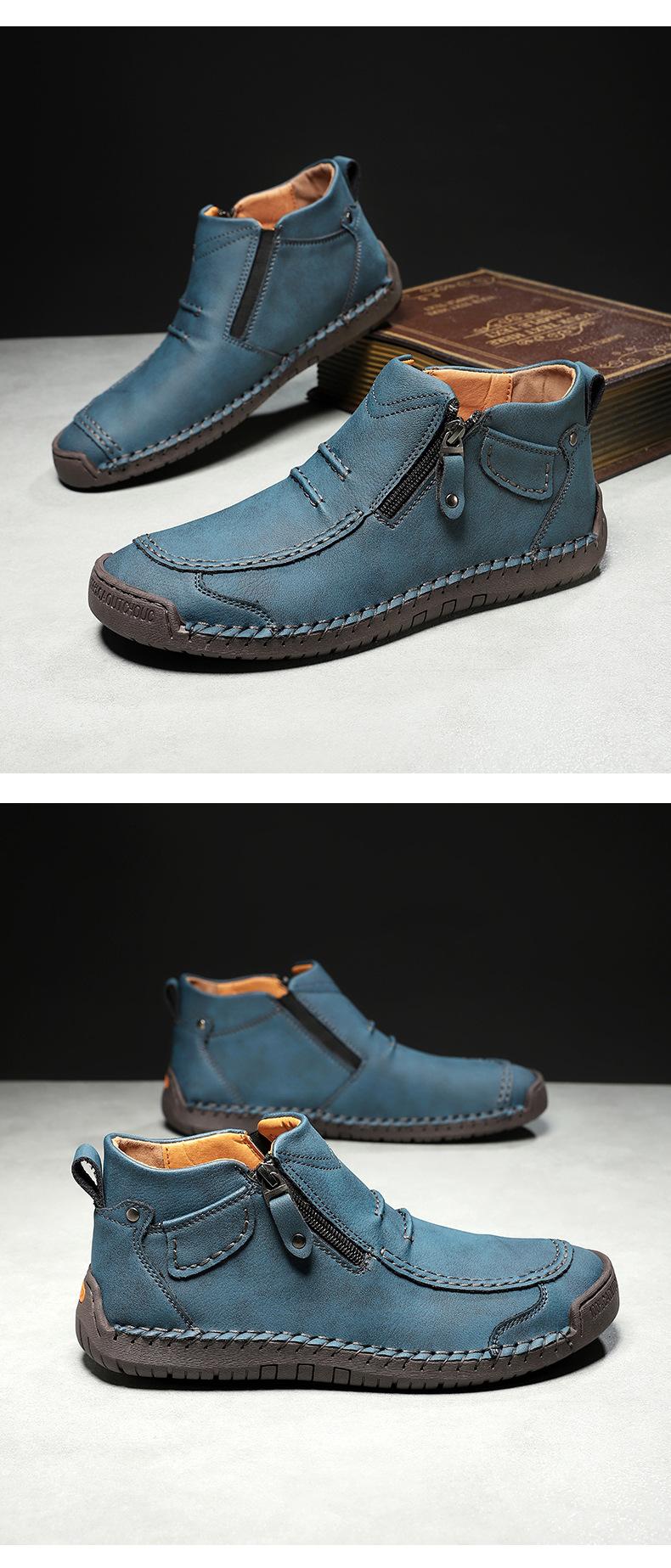 Zapatos de hombre de talla grande más vendidos transfronterizos zapatos casuales para exteriores zapatos slip-on de suela plana zapatos cosidos a mano botas Martin con cremallera botas cortas